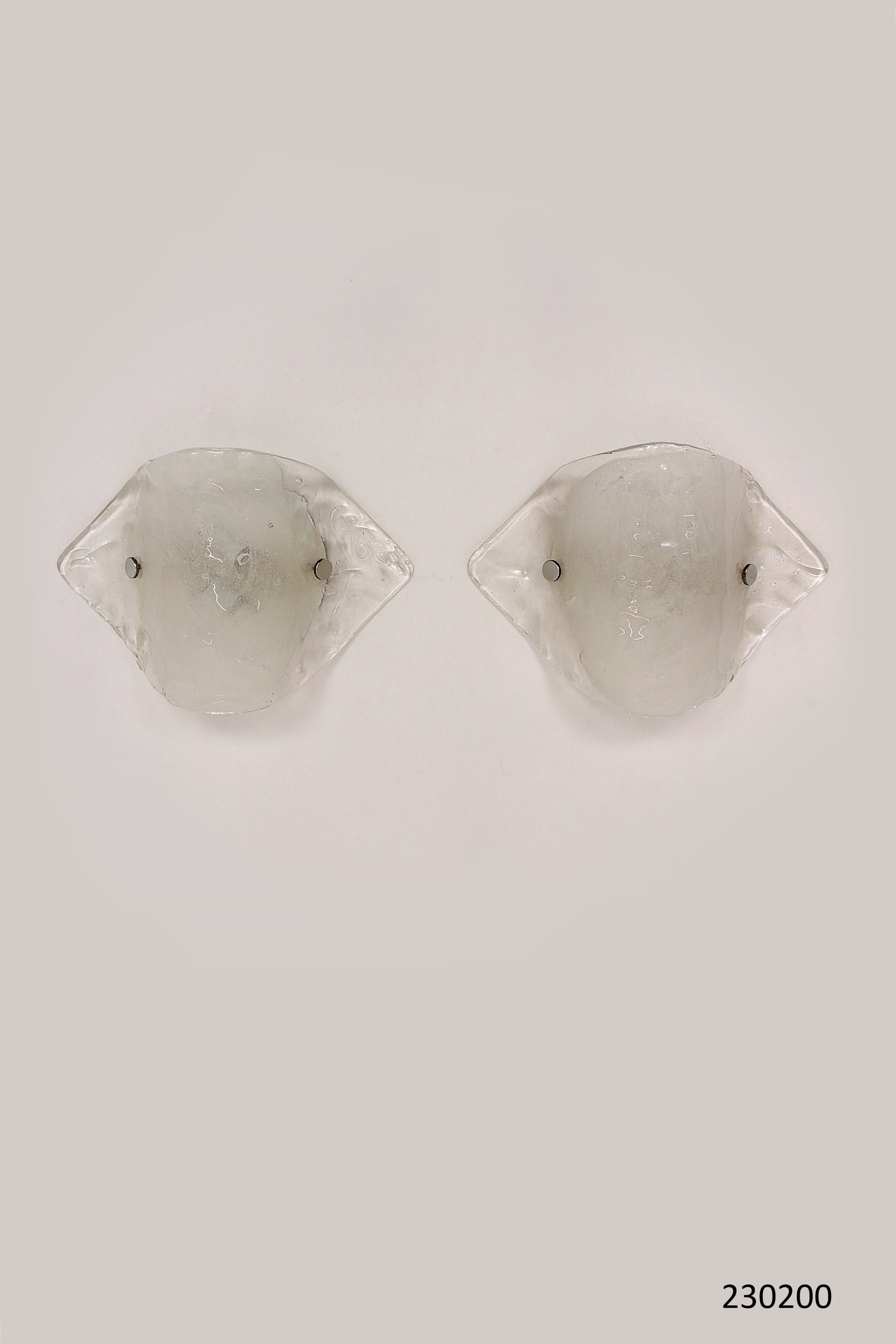 Discover the timeless elegance of the J.T. Kalmar Murano glass wall lamps from the 1970s. Designed for Franken KG in Austria, these stunning lamps feature a white-painted metal backplate paired with organically shaped hand-blown opal clear bubble glass. Fully functional, they require two small fitting bulbs to provide warm, ambient lighting.