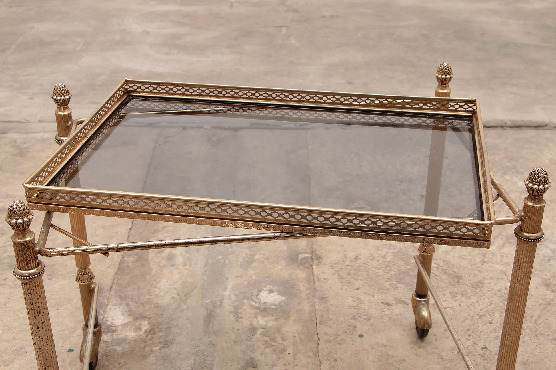 Maison Jansen Vintage Brass Trolley with Smoky Glass Tables