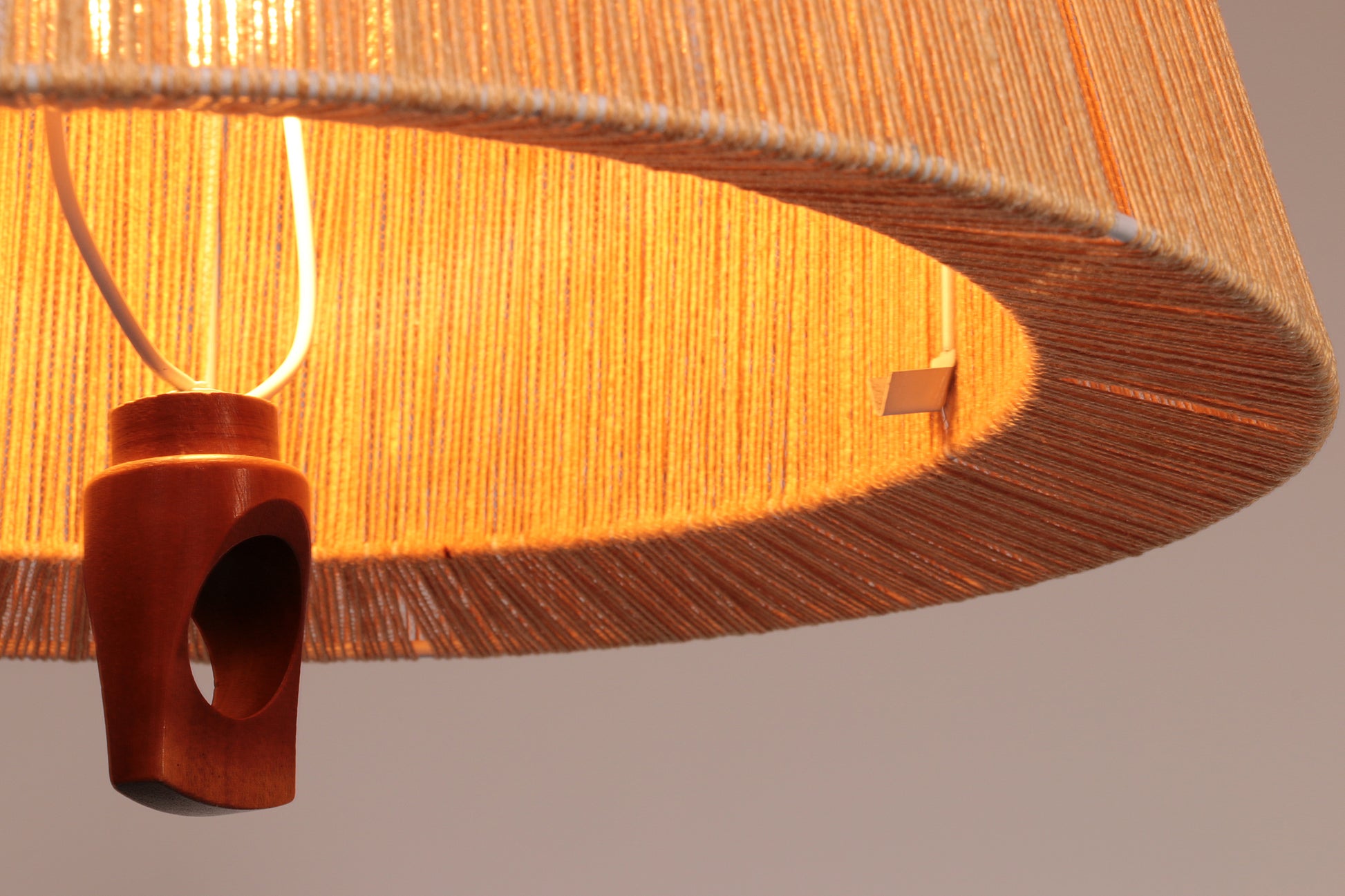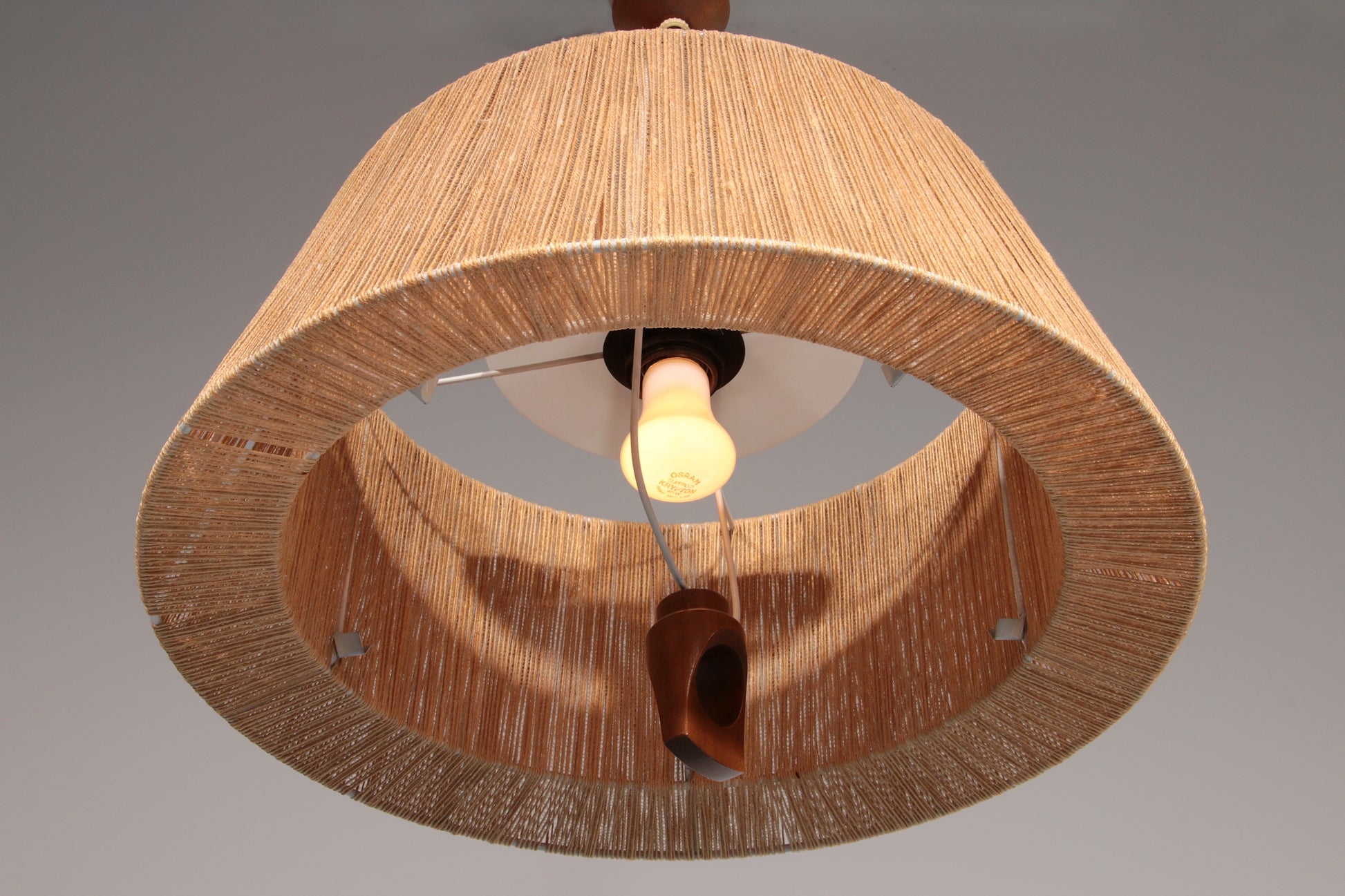 Vintage Temde Pendant Lamp With Walnut And Raffia 1960s