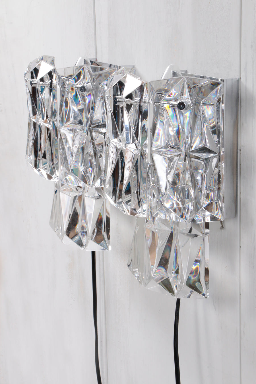 Each crystal shade is hand-cut, making every sconce unique with its own subtle variations. The design reflects the distinct style of 1960s Germany, blending functionality with artistry. These sconces are in great condition, a rare chance to acquire genuine mid-century lighting that continues to captivate decades later.