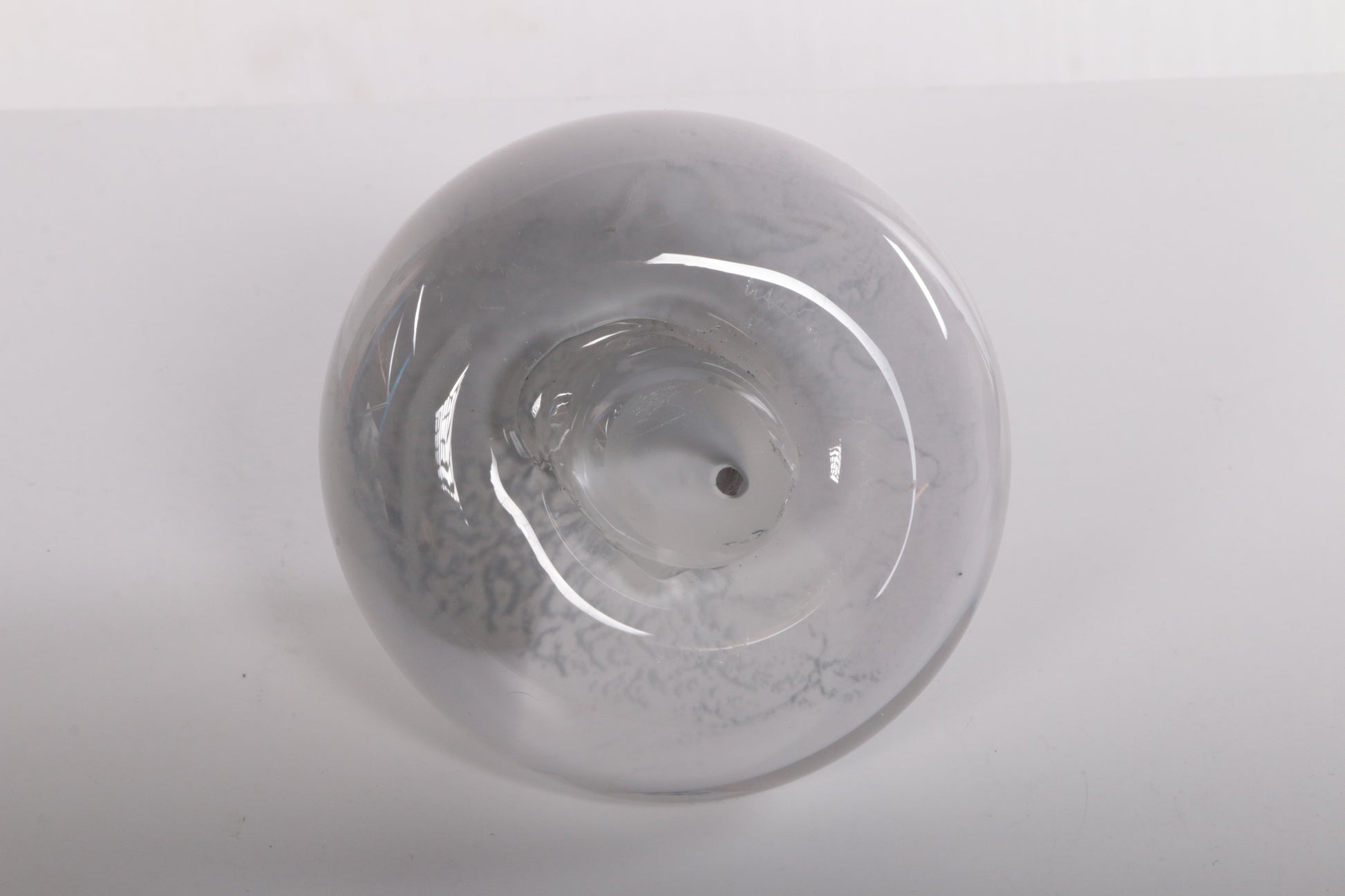 This stunning glass art object, created by Willem Heessen, showcases the craftsmanship of a master glassblower. The piece, made from hand-blown glass, features a beautifully textured hollow sphere with a soft white and marbled color scheme. Heessen's work, known for its innovative use of glass, stands as a testament to the beauty of craftsmanship and the uniqueness of each hand-made piece. This "Unica" glass object is one-of-a-kind, representing both artistic expression and refined technique.