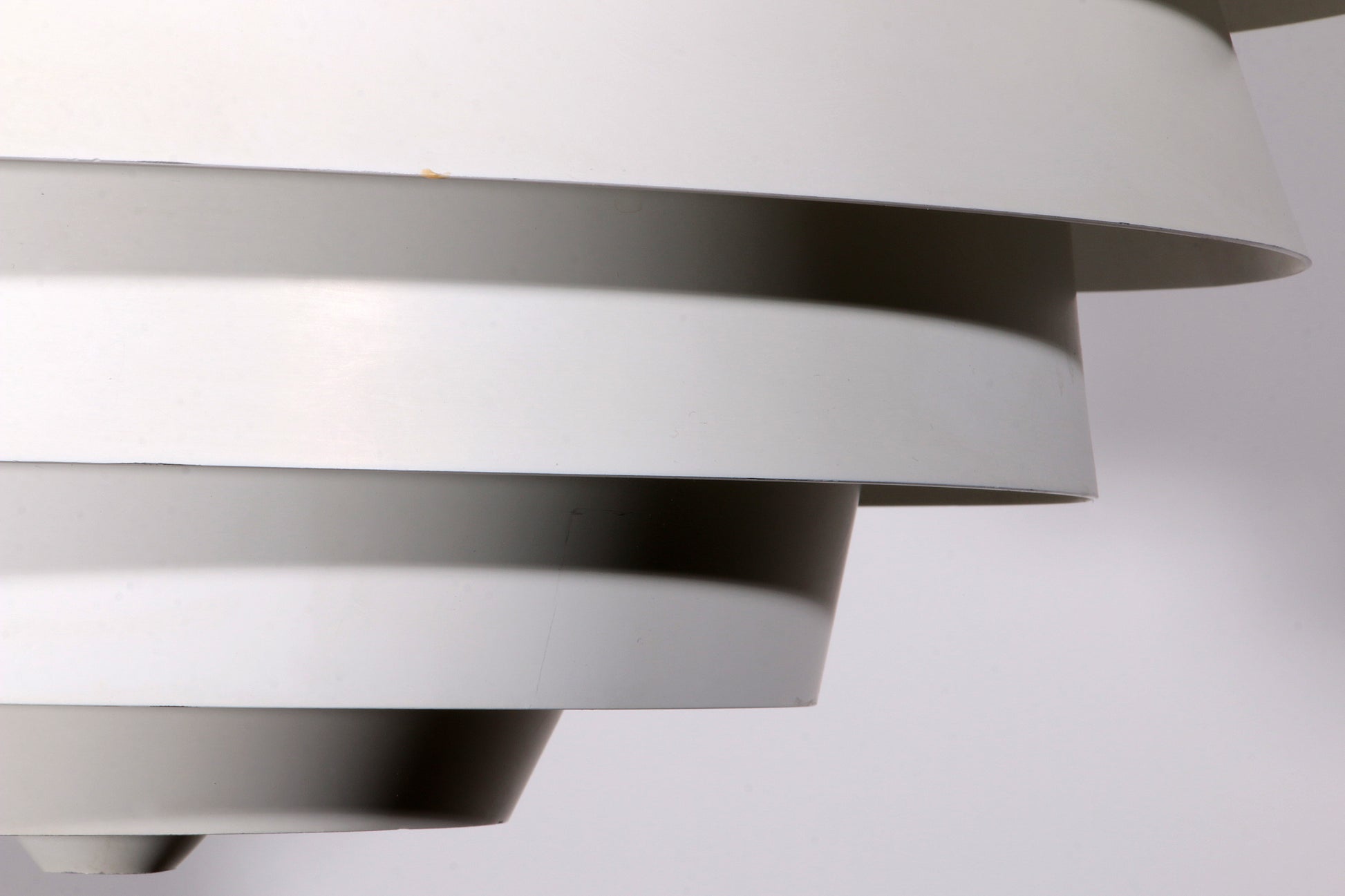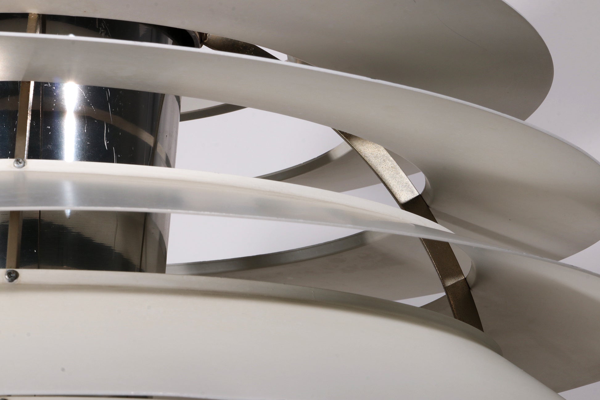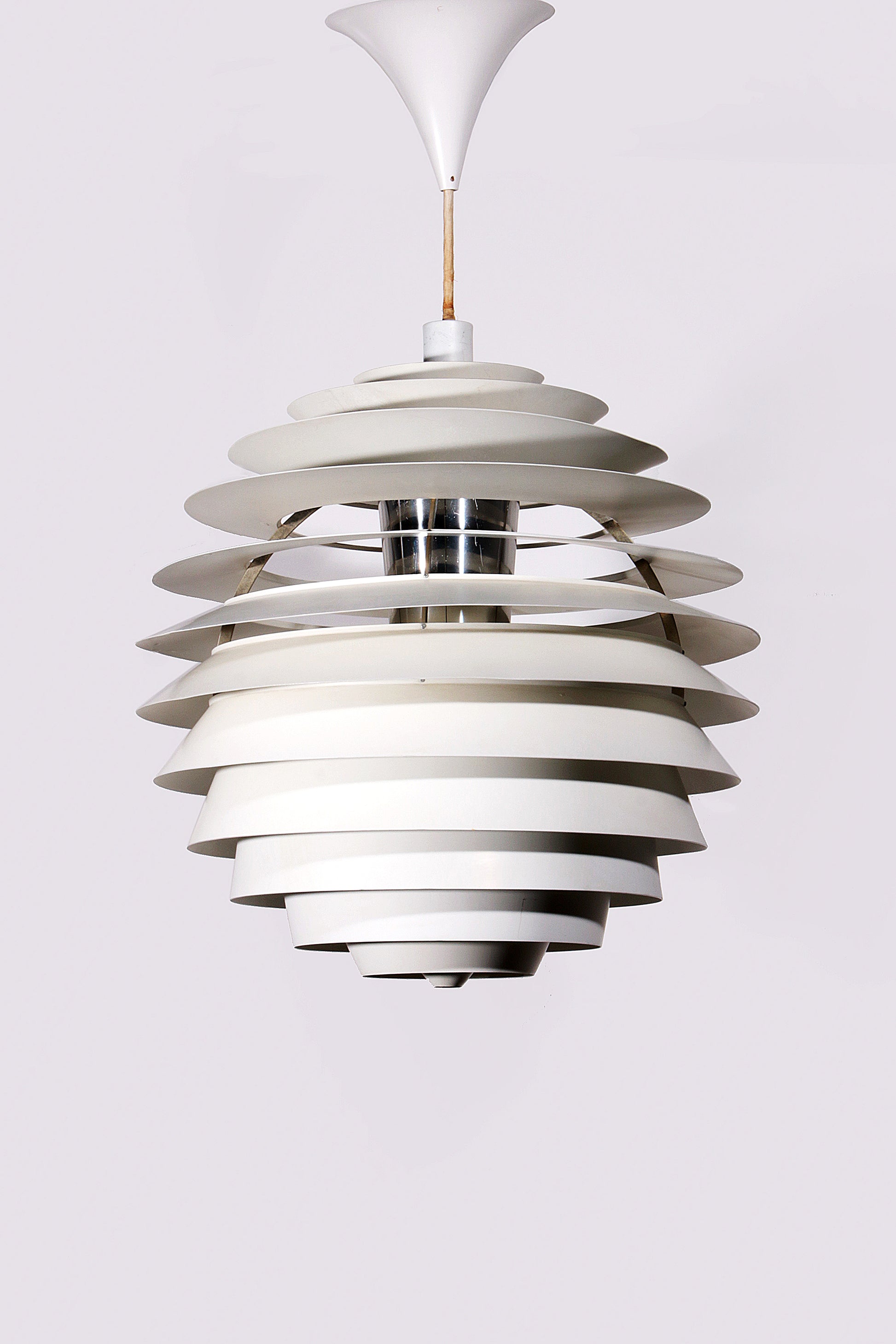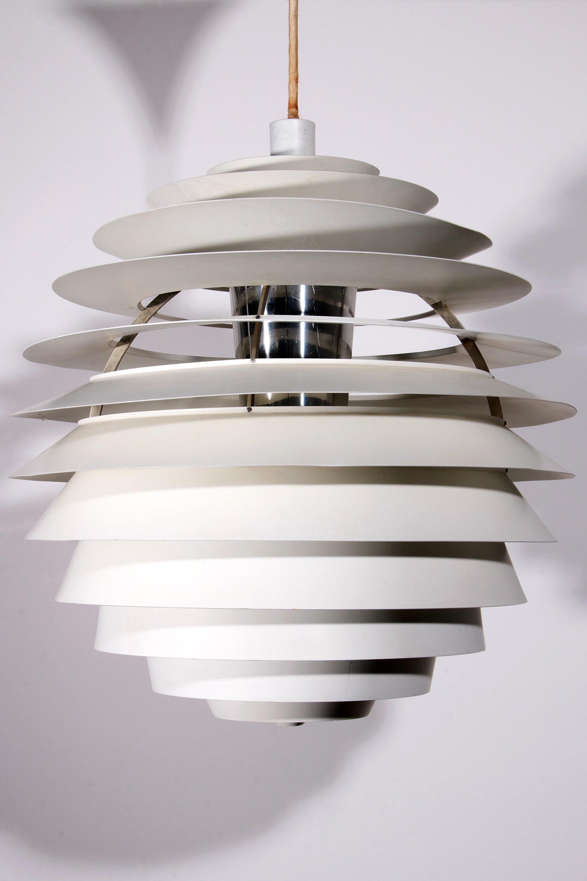 The Louis Poulsen PH Louvre pendant light, designed by the legendary Poul Henningsen in the 1960s, is a remarkable example of Danish craftsmanship and design. Originally created for the Advent Church in Skodsborg Hydro, Denmark, this iconic light fixture is a testament to Henningsen’s mastery of both form and function. The lamp features 13 matte white-coated aluminum rings that ensure 100% glare-free lighting, creating a soft, ambient glow perfect for any space. The design is not only visually striking but also highly functional, offering both aesthetic beauty and practical lighting. Ideal for modern and vintage interiors alike, the PH Louvre pendant remains a timeless piece that enhances any room with its elegance and quality.