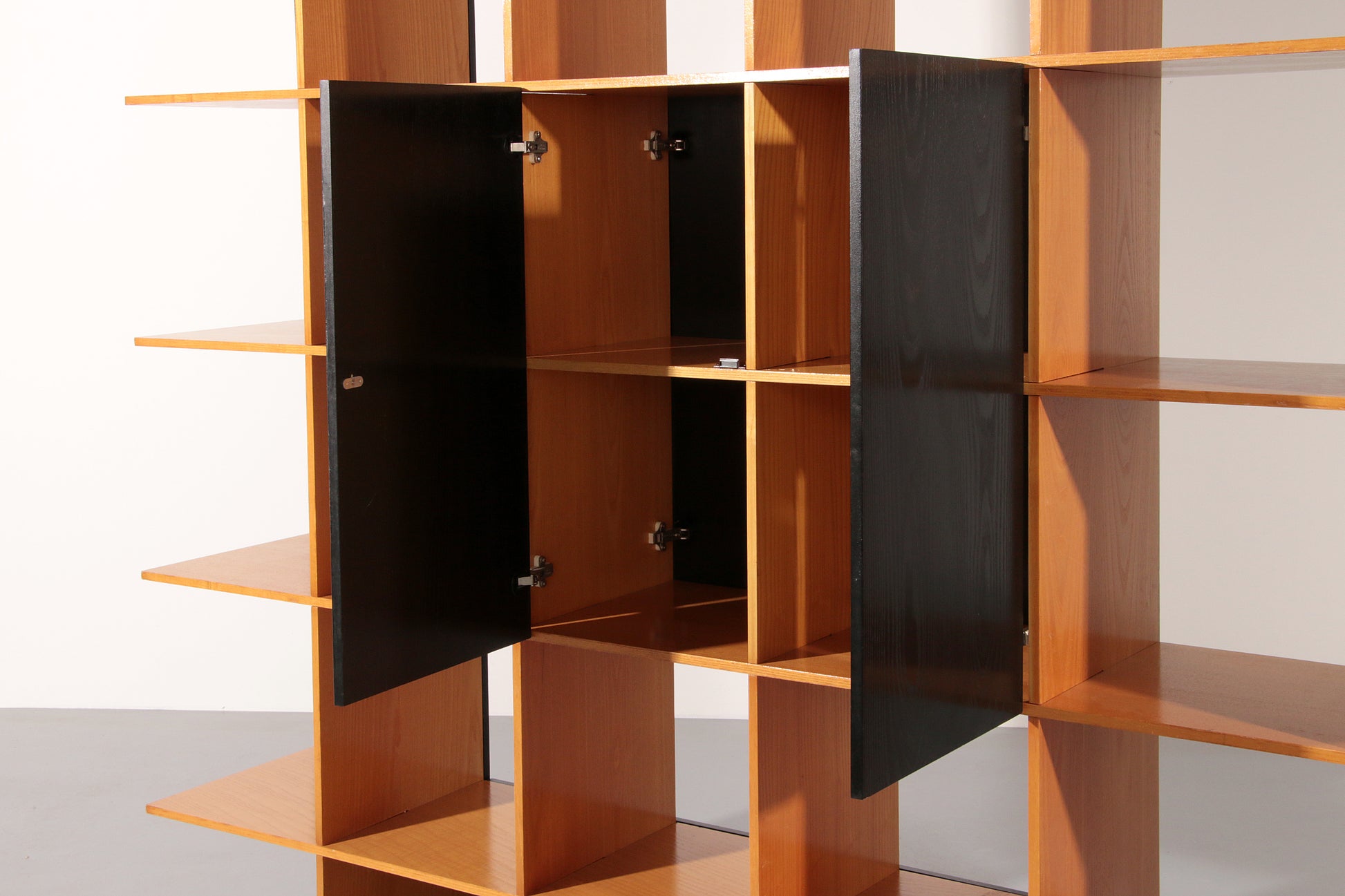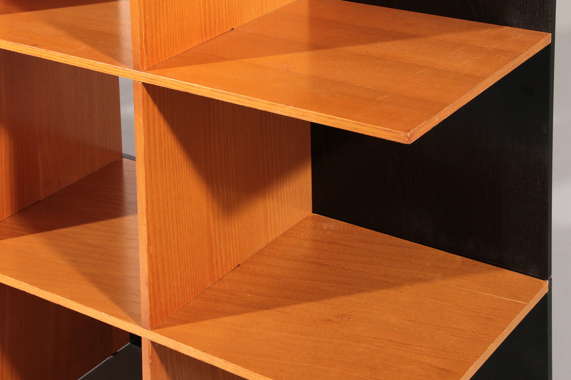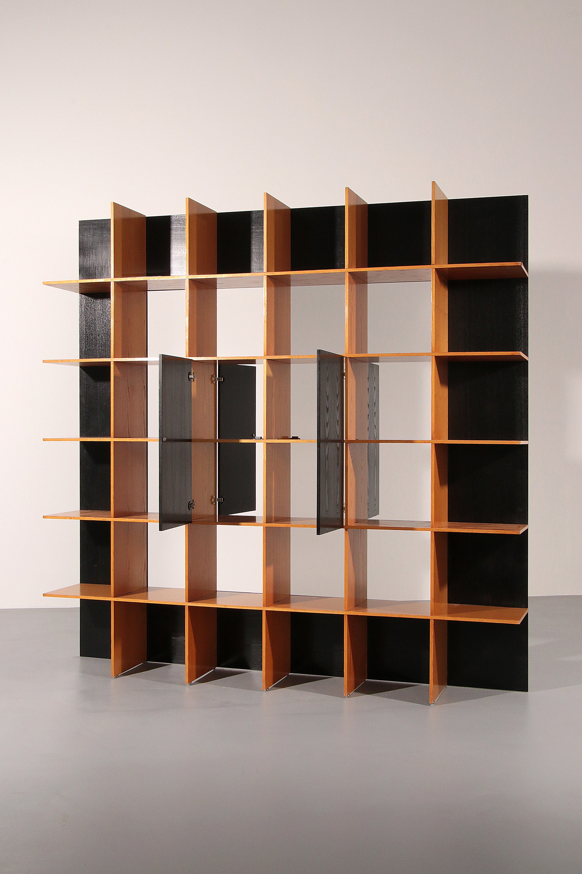 Owning this bookcase means bringing a piece of authentic Italian design history into your home. The contrast between pine wood and black fronts gives the room character, while the craftsmanship ensures durability and long-lasting beauty. Because it is finished on all sides, the piece offers flexibility in placement, working equally well against a wall or as a freestanding divider that enhances open spaces. It is both practical for everyday use and refined enough to elevate the atmosphere of any interior.