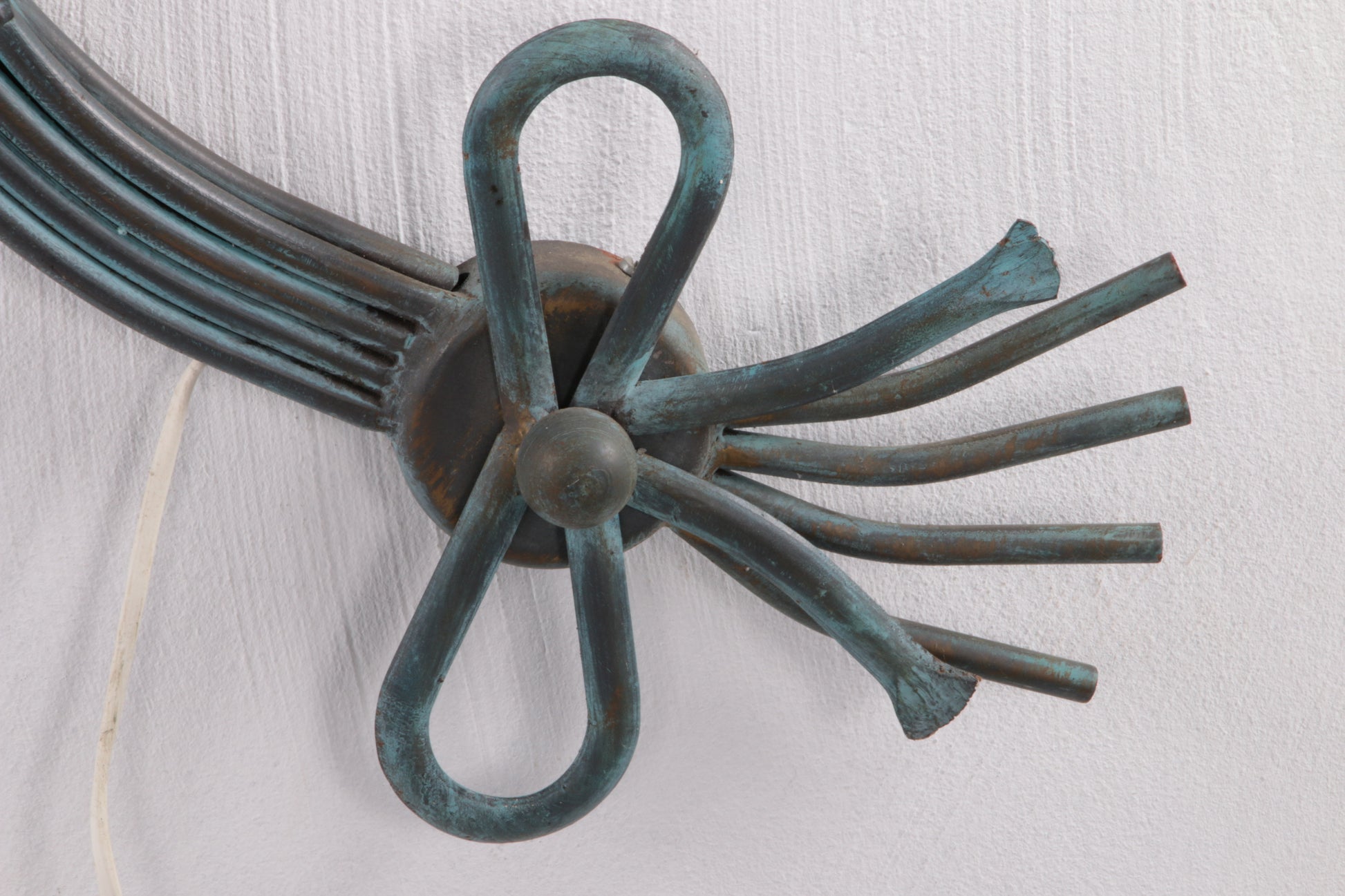 This beautiful wall-mounted lamp from the 1970s is a stunning addition to any space. Crafted from bronze, it features five light points, making it not only decorative but also highly functional. Its design is perfect for narrow spaces or hallways and could even be used as a striking ceiling light.