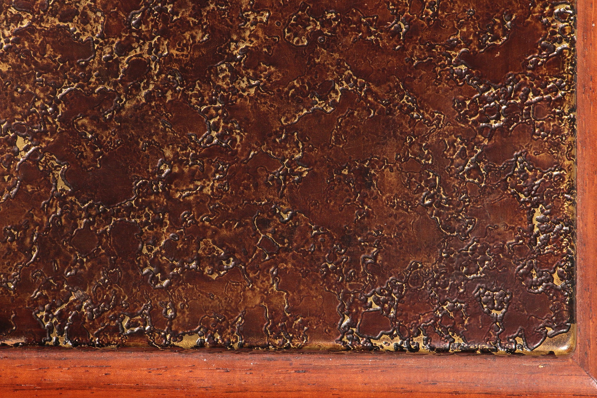 Richly textured copper top with natural patina