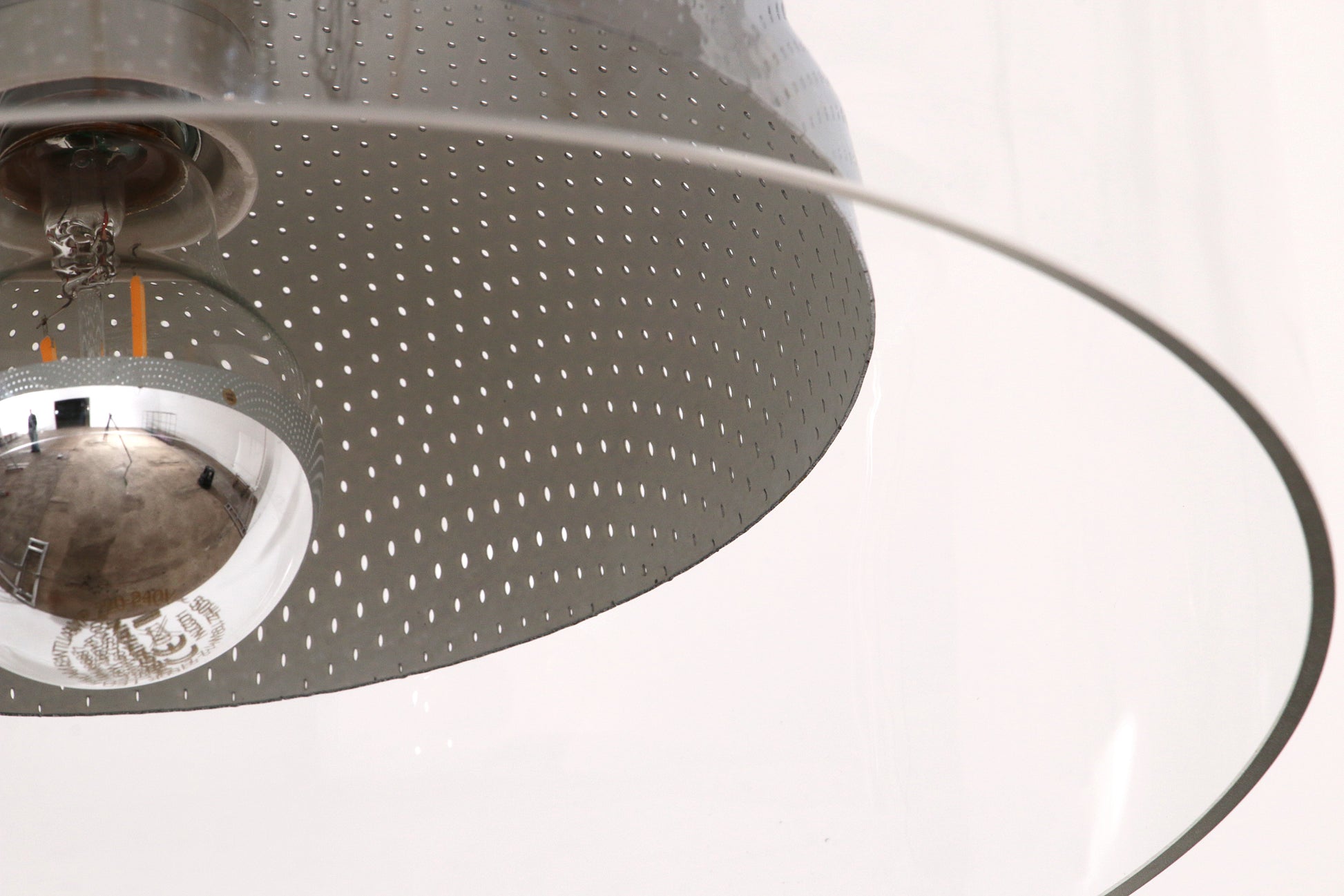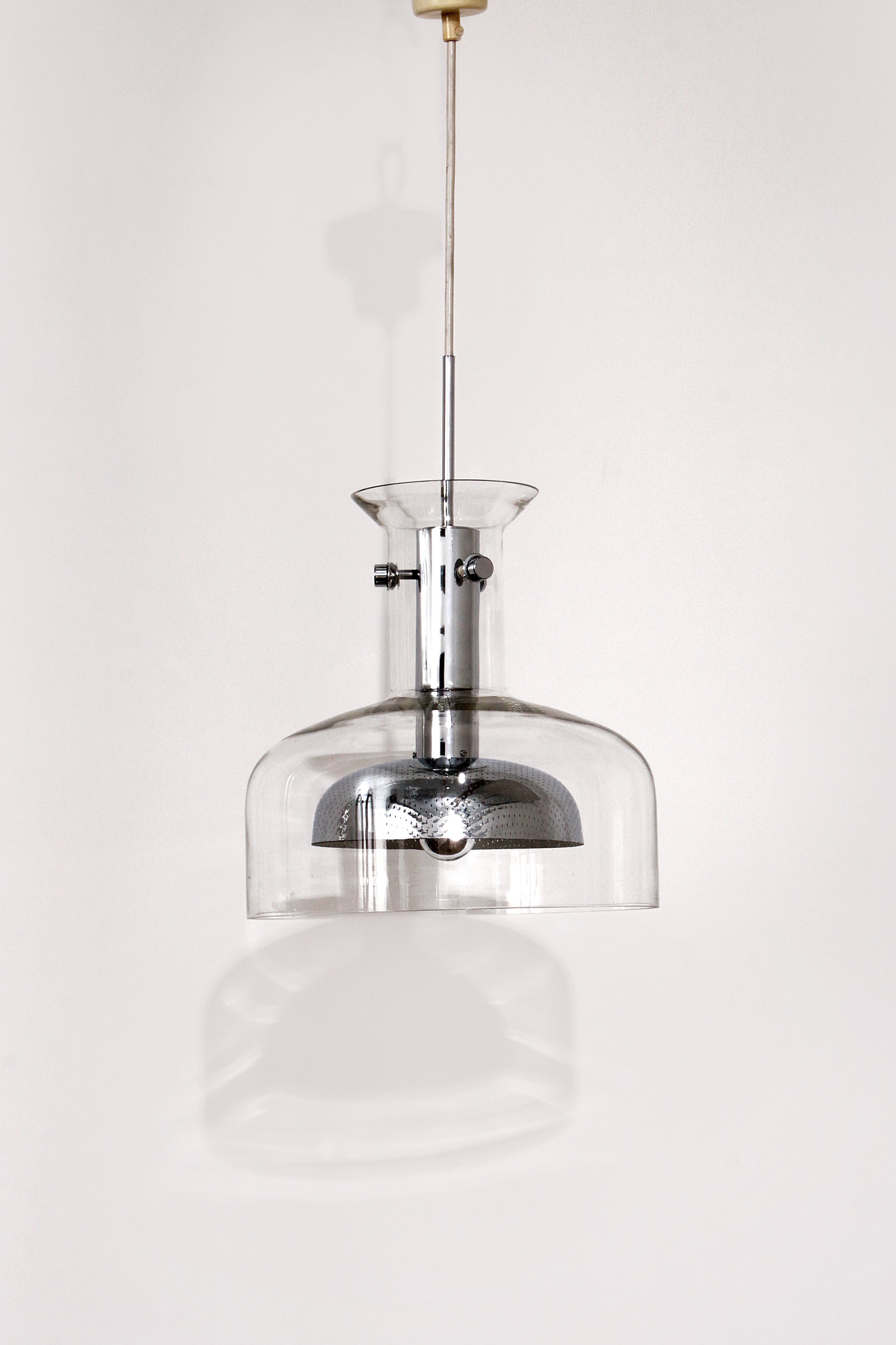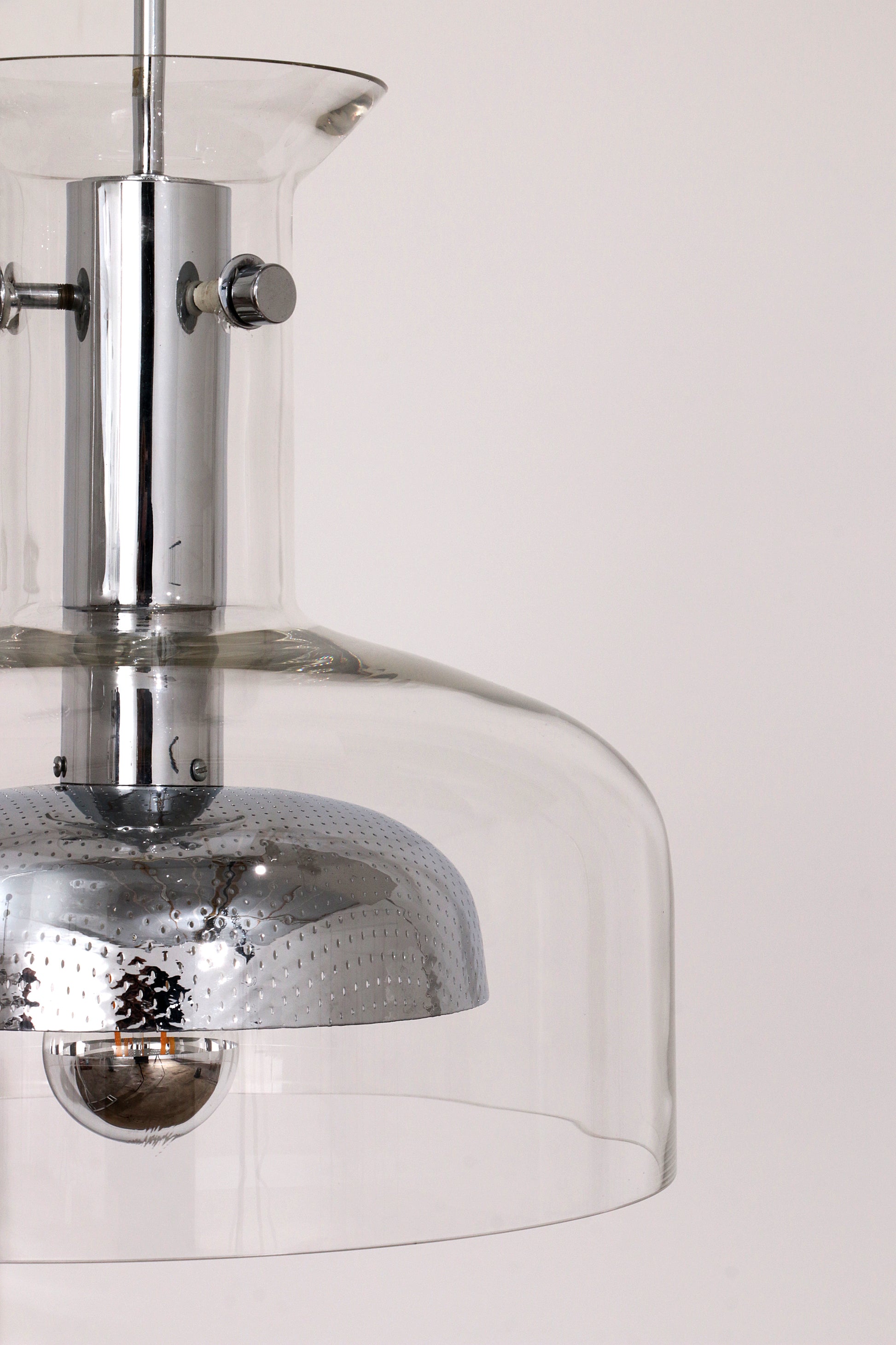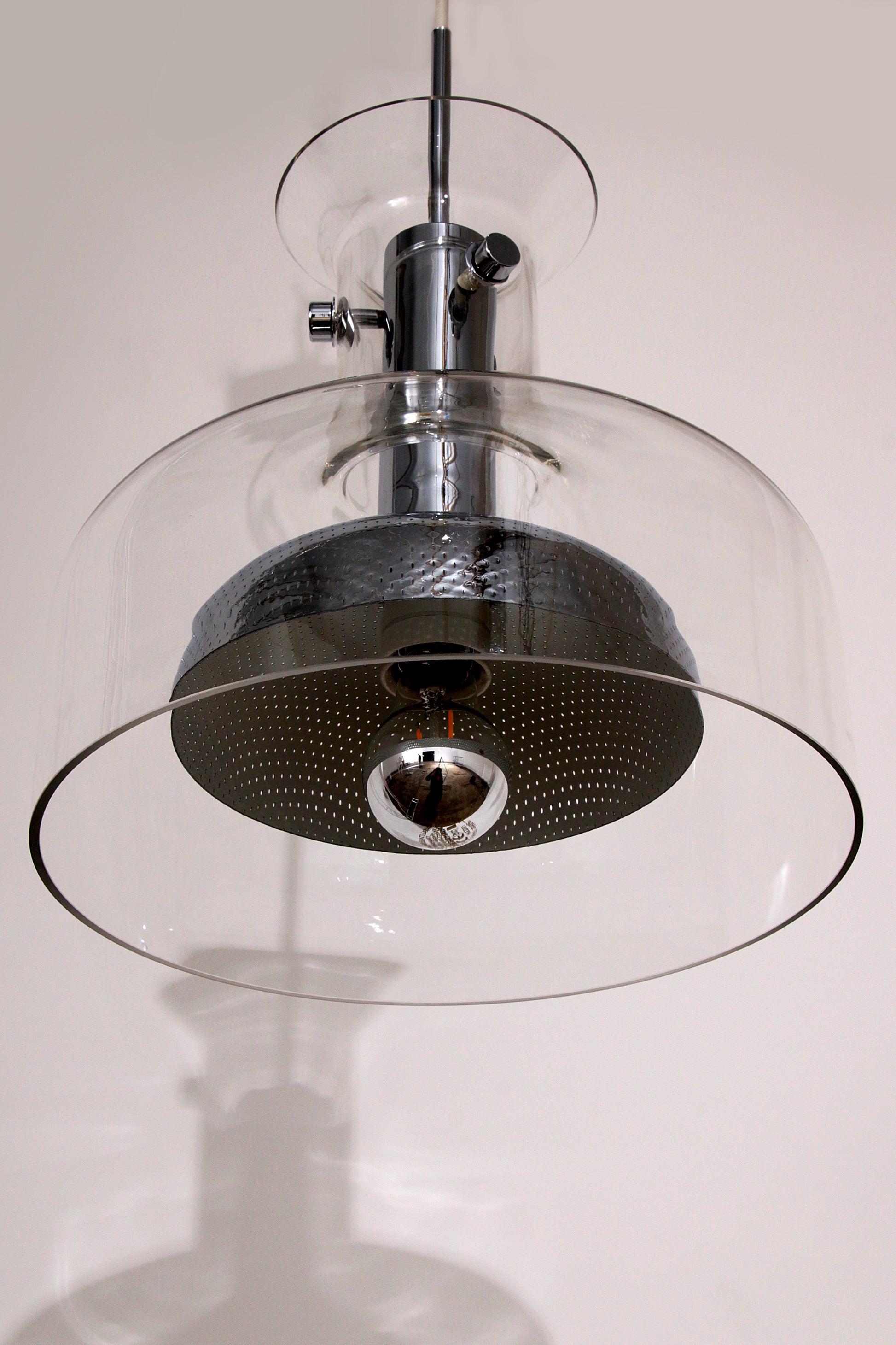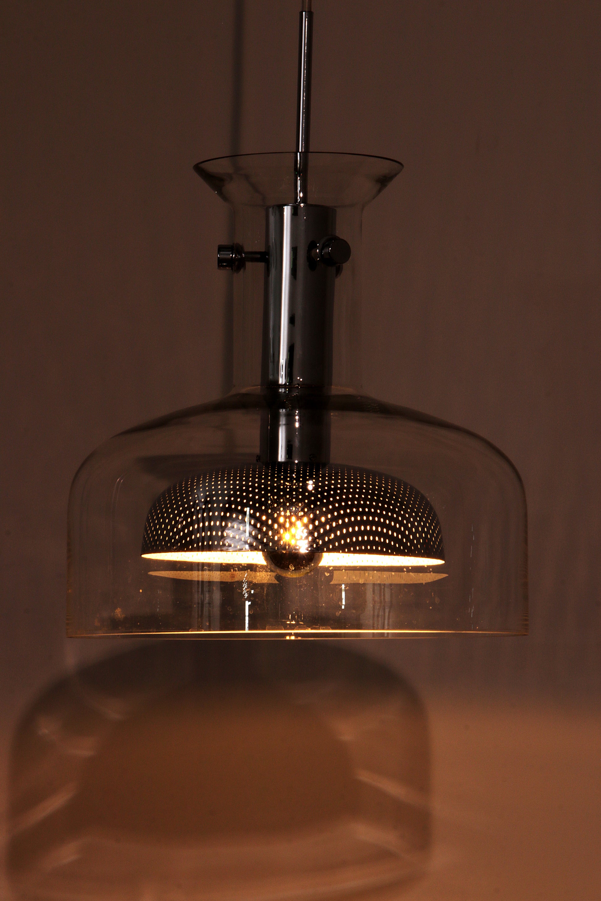 The total height of the hanging lamp, including cable, is 79 cm. This makes the lamp ideal for both high and low ceilings. The combination of chrome and glass provides a durable and stylish finish that will last for years.