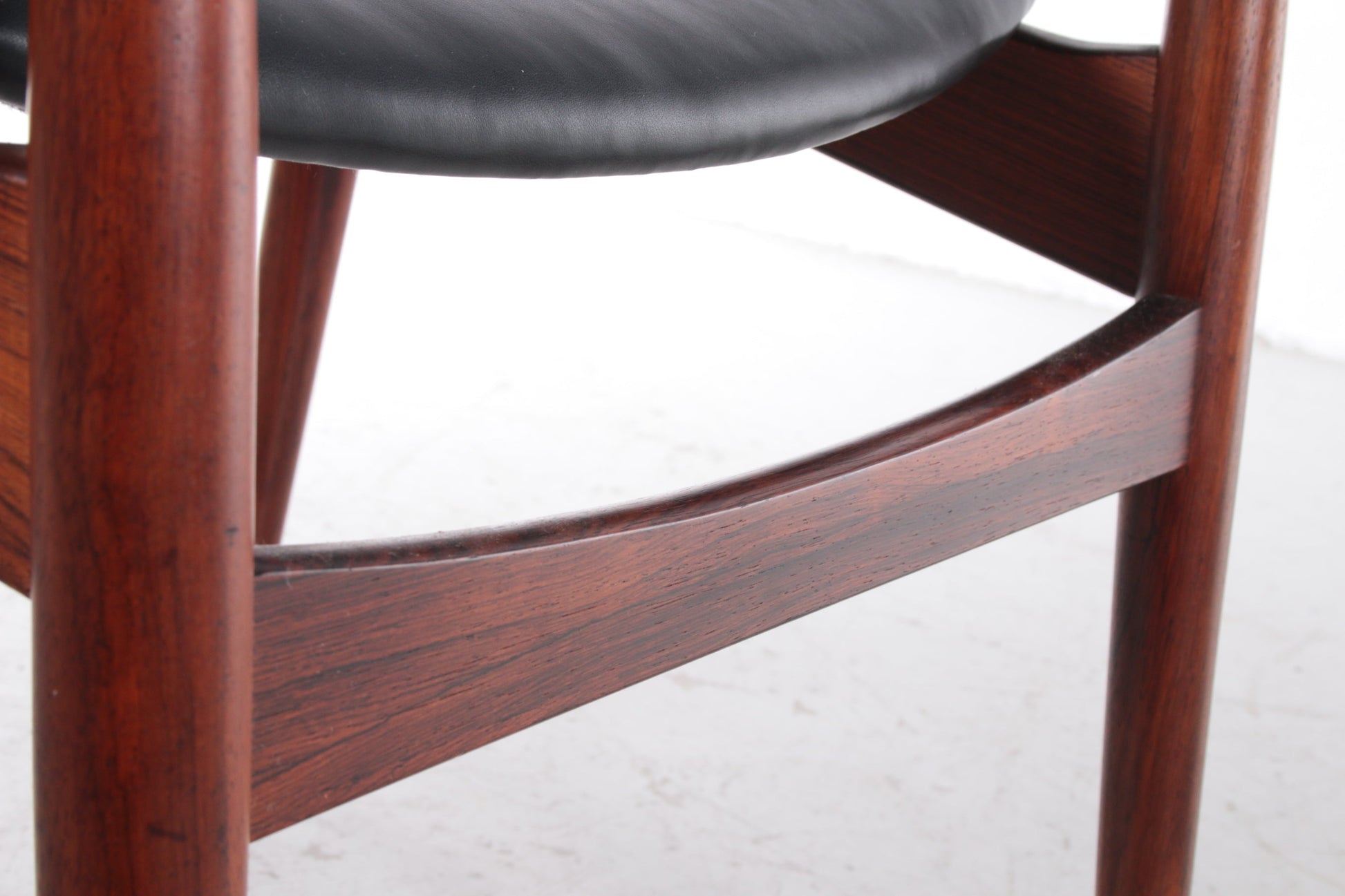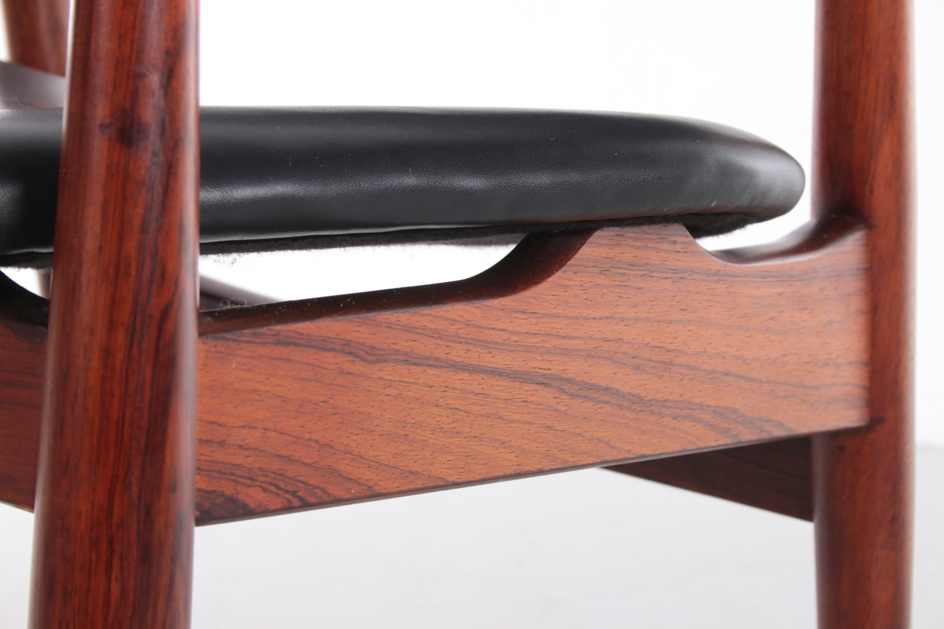Elegant 1960s Arne Vodder Model 62A chairs by Sibast, crafted in leather and teak, offering a refined mid-century aesthetic perfect for both dining and office use.