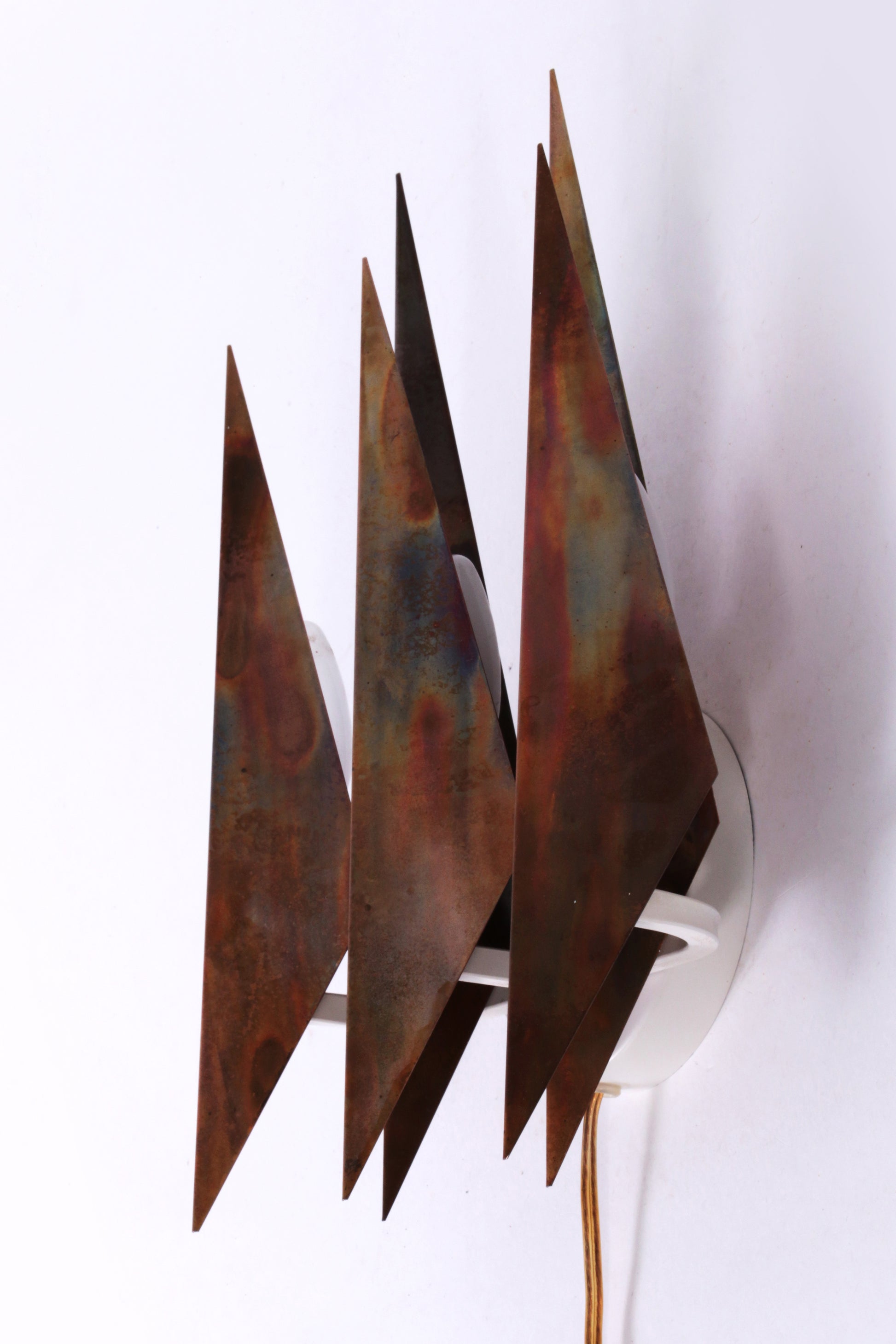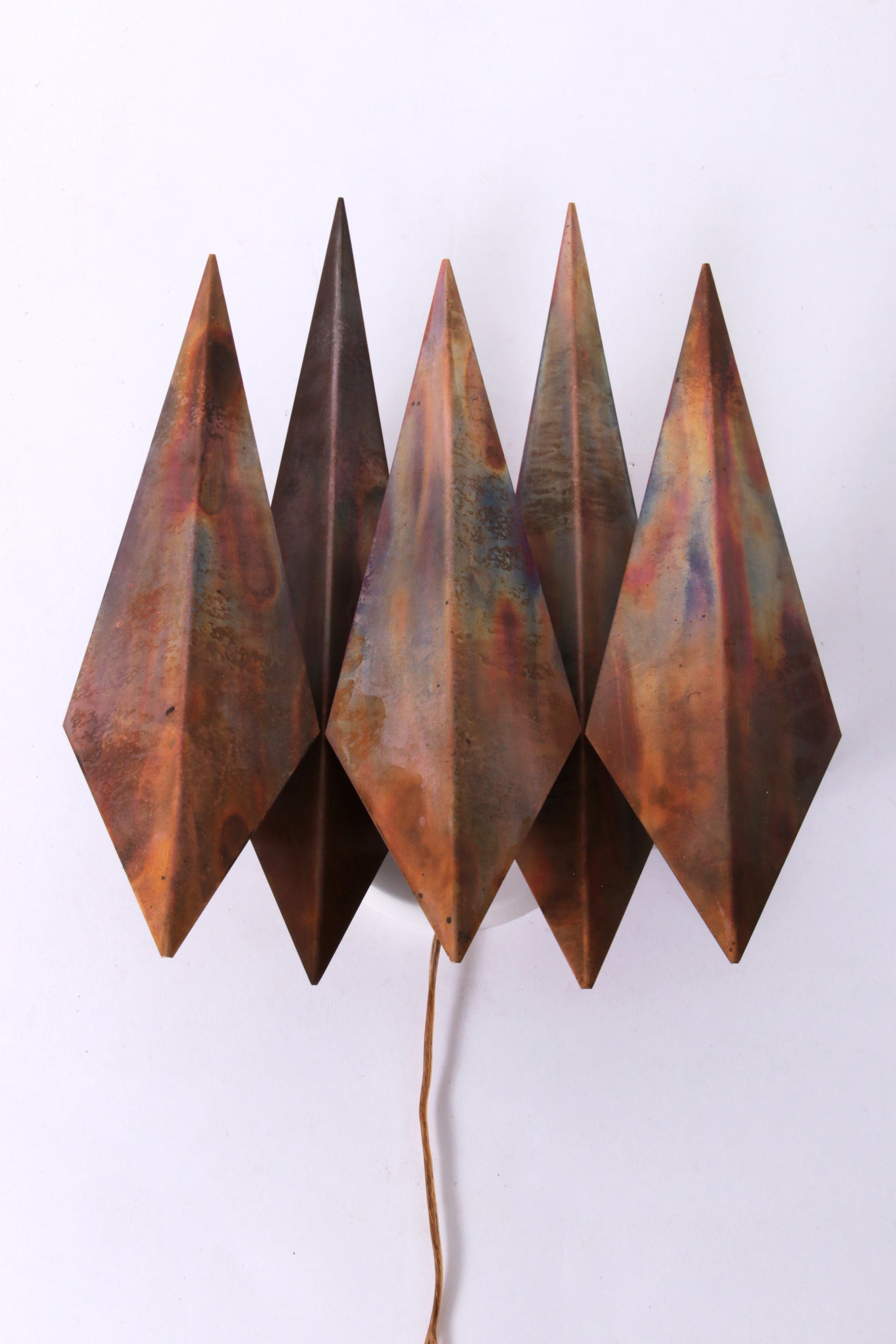 A diamond-shaped raw metal wall light from the 1970s, designed by Sven Aage Holm Sørensen for Holm Sørensen A/S. A rare piece of Danish mid-century lighting design.