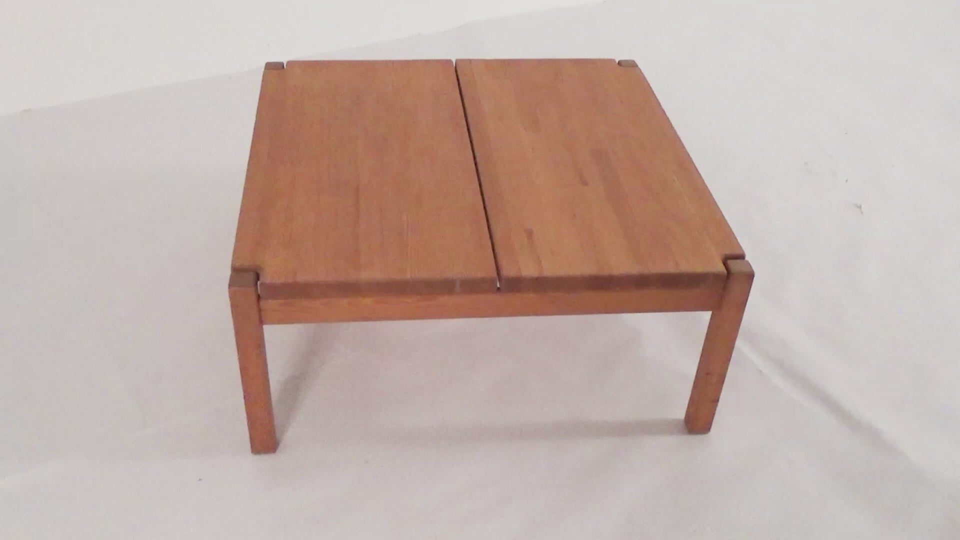 A stunning piece from Ilmari Tapiovaara's "Hongisto" series, crafted by Laukaan Puu in Finland around 1960. Made of premium pine wood, this square coffee table features a clean, straight design that highlights the natural wood grain and impeccable craftsmanship. Its rustic charm adds timeless character, making it versatile for various interior styles.It is signed.