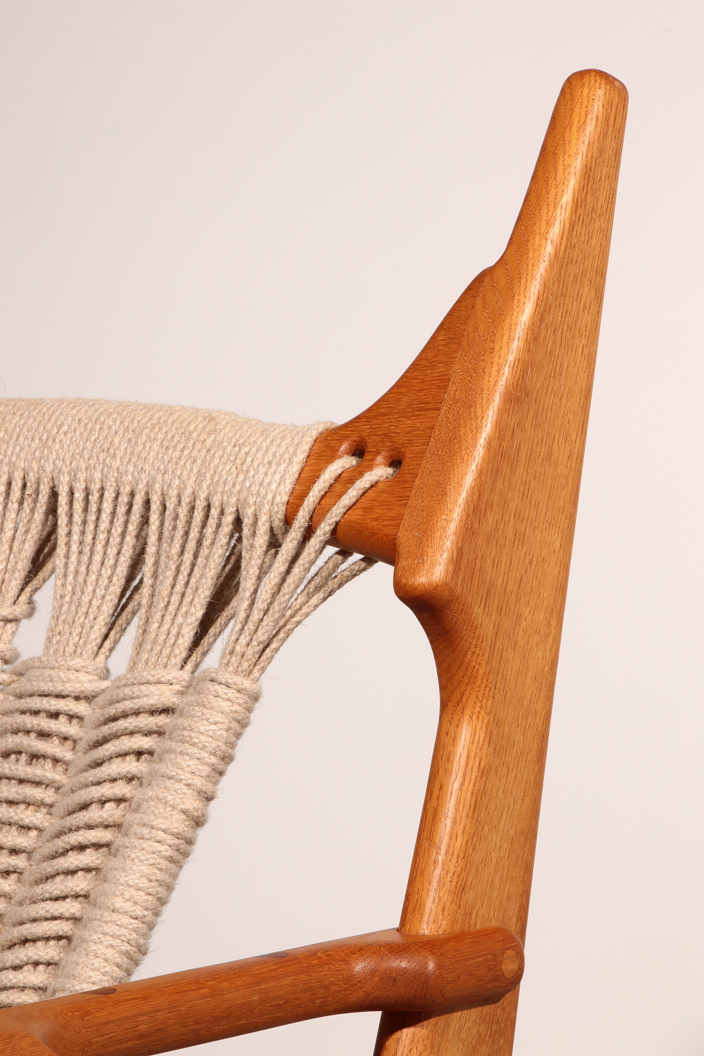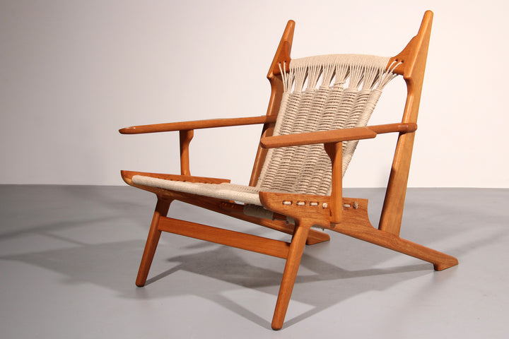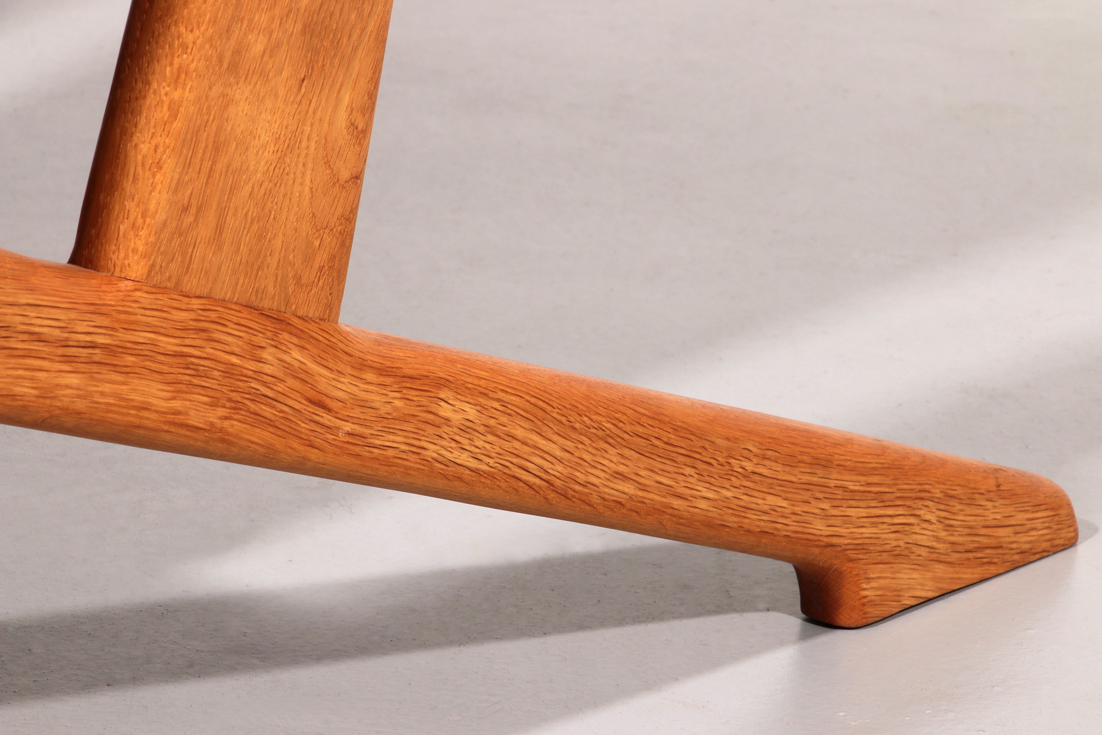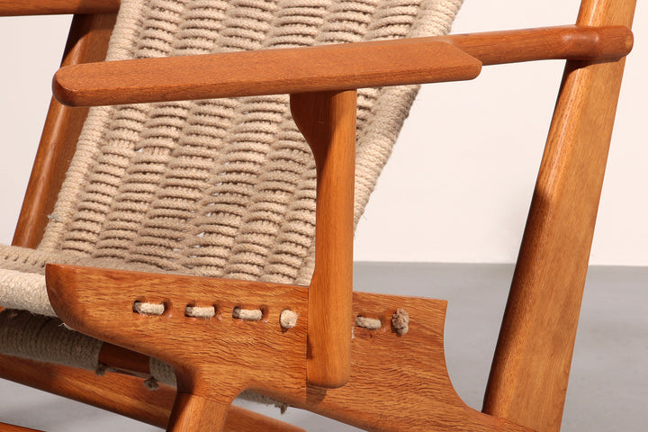 Experience the epitome of Danish craftsmanship with the Martin Godsk MG35 Lounge Chair Set. Designed and handcrafted in 1990 by the renowned woodworker Martin Godsk, this set of lounge chairs exemplifies modern elegance and timeless design. Constructed from exquisite oak and featuring a thick, handwoven wool rope backrest and seat, these chairs are not only visually stunning but also offer unparalleled comfort. With only about 10 ever made, each chair is a testament to Martin's dedication to quality and artistry, taking over a week to craft from start to finish. This limited edition set is a rare find, perfect for those who appreciate unique, sustainable furniture that tells a story.