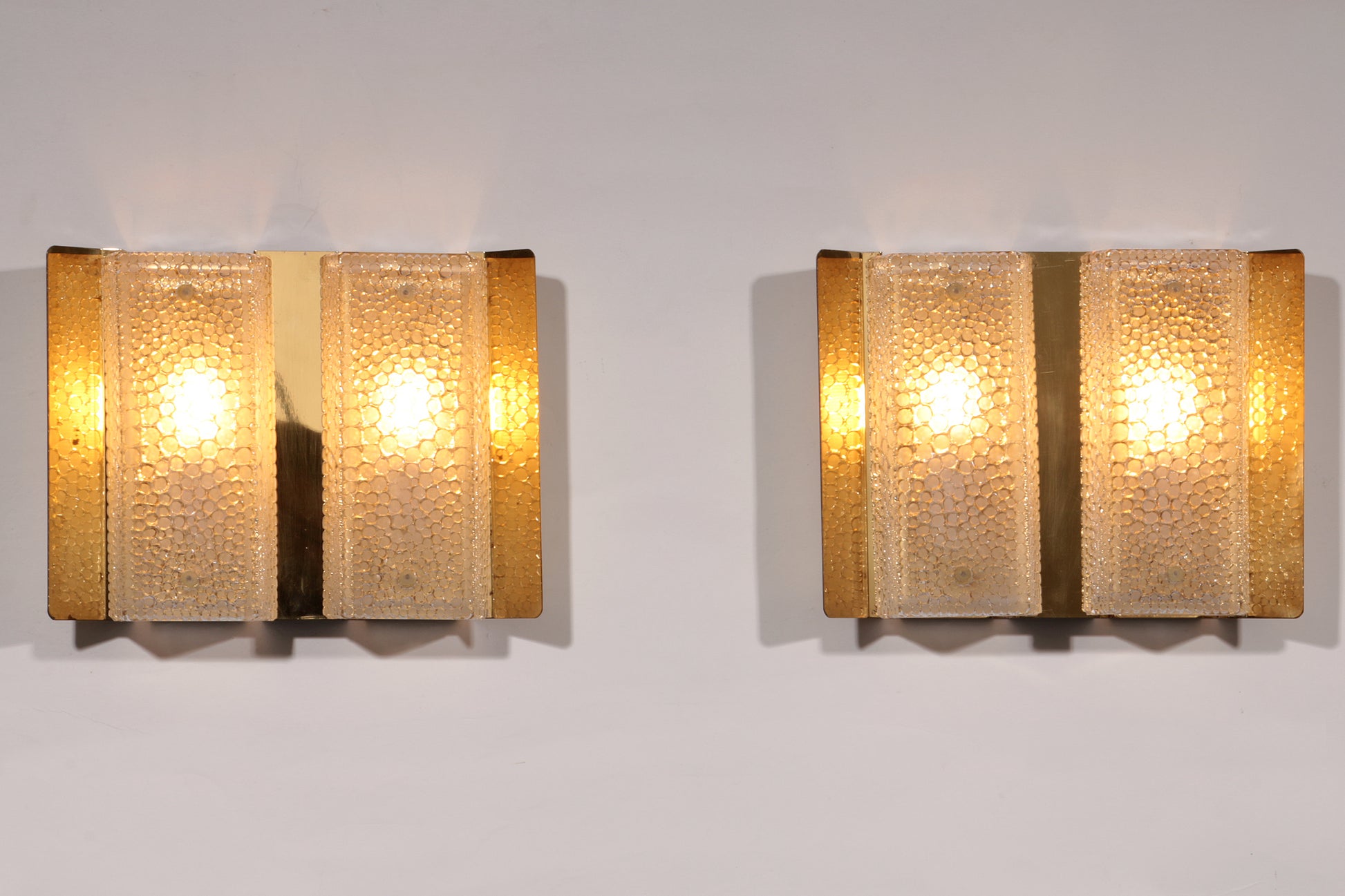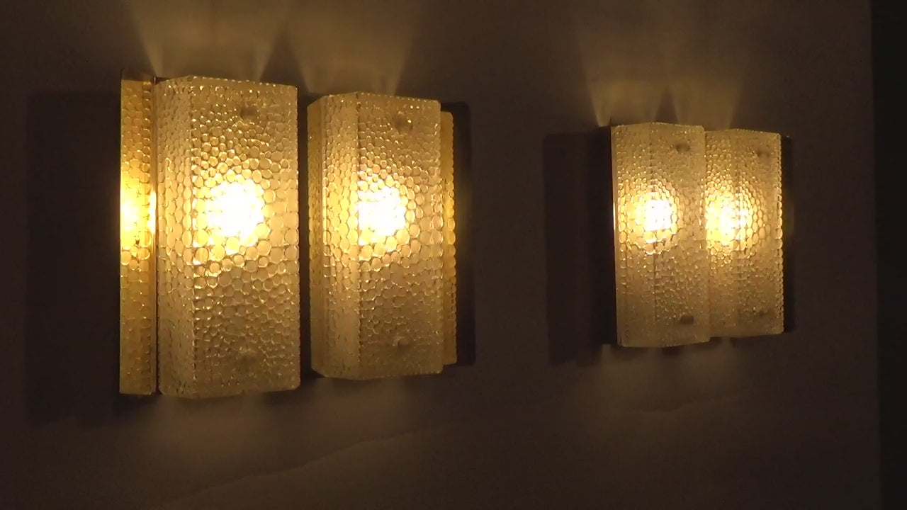 Authentic 1960s Swedish wall lamps by Falkenbergs Belysning. Elegant glass patterns provide atmospheric lighting, ideal for stylish interiors.