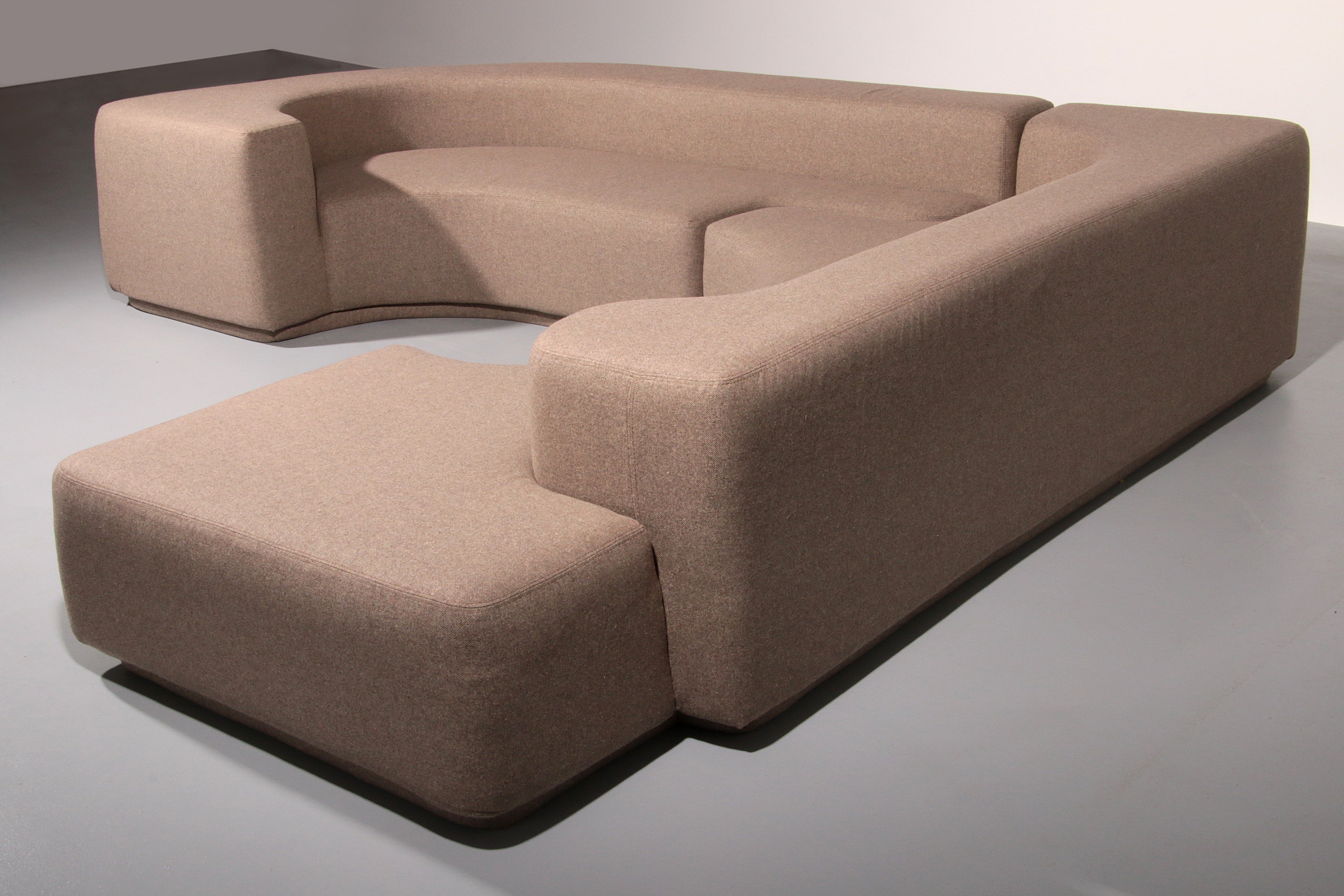 This beautiful puzzle-shaped sofa has a striking geometric form and consists of two pieces that fit together like a puzzle. The sofa can be freely placed in a room, as it looks attractive and unique from every angle.