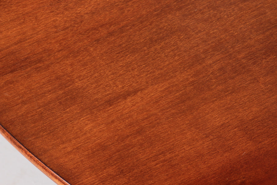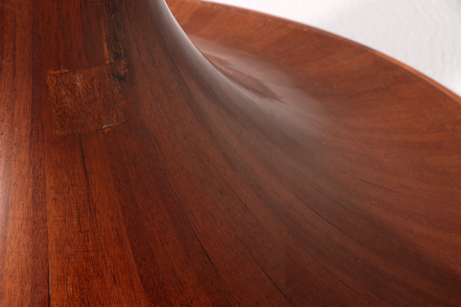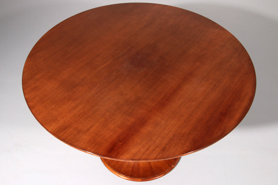 This dining table offers both beauty and functionality. Its distinctive tulip-style pedestal allows for comfortable seating without the obstruction of legs, while the detailed layered craftsmanship on the base adds a sculptural and artistic element to your interior. The walnut top’s dynamic grain pattern creates a warm and inviting atmosphere, making it not only a functional table but also a conversation piece and a statement of taste. Its durable refinished surface ensures long-lasting quality, allowing you to enjoy this iconic piece for years to come.
