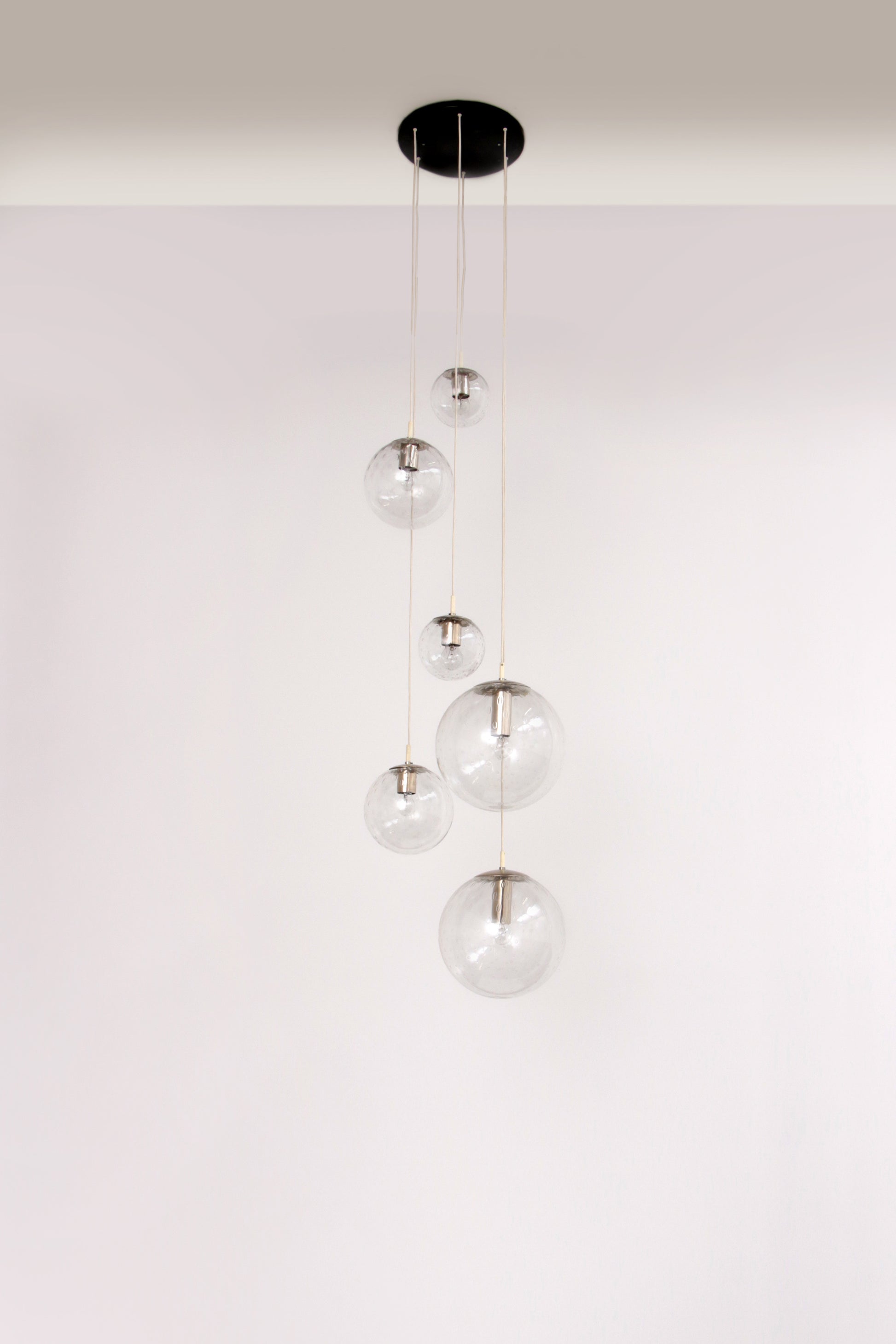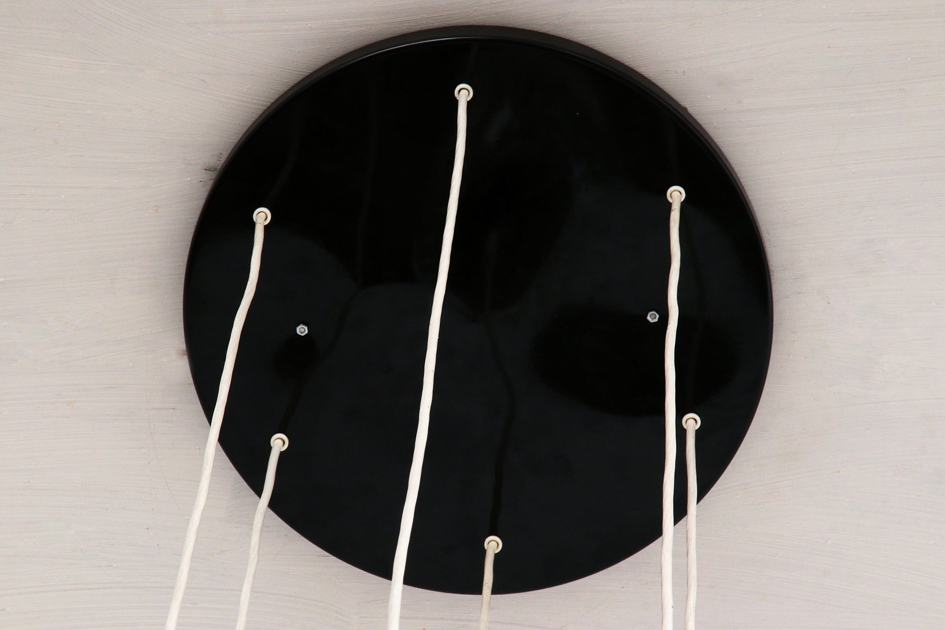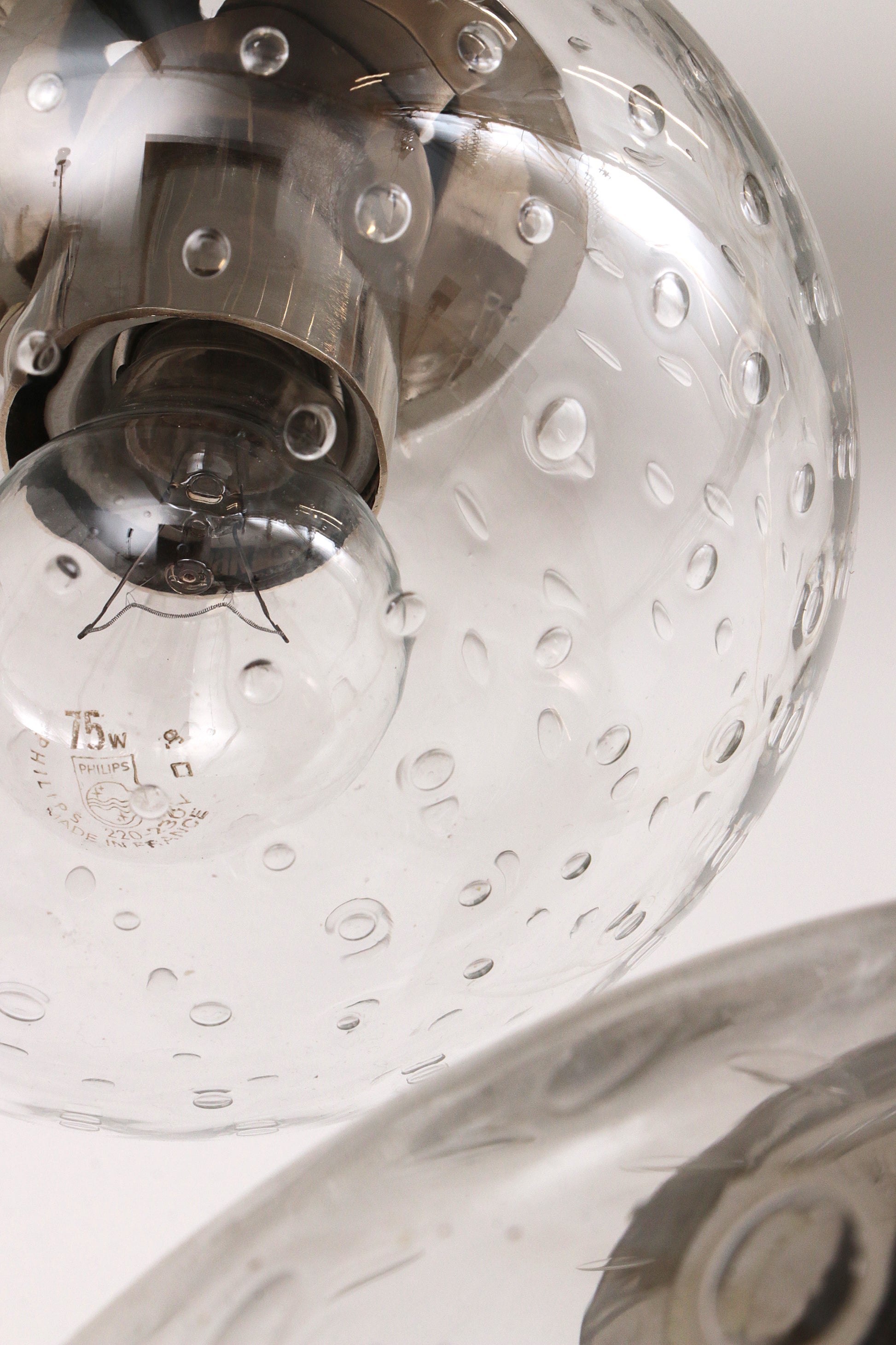 This Vintage Raak Hanging Lamp features a large ceiling plate for stable and secure installation. The glass globes are strategically placed to ensure optimal light distribution. Its timeless design makes it suitable for both modern and classic interiors.