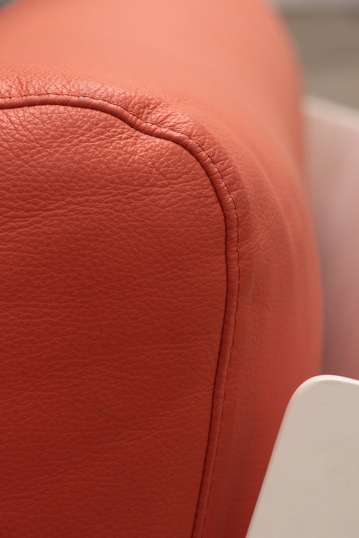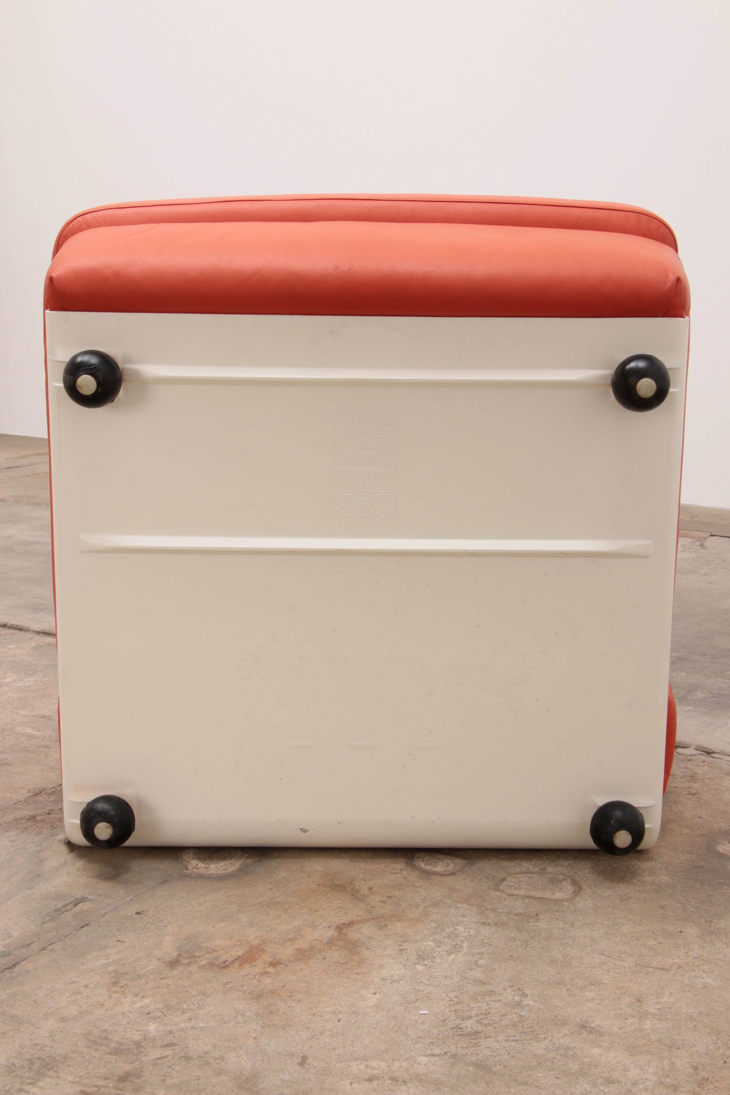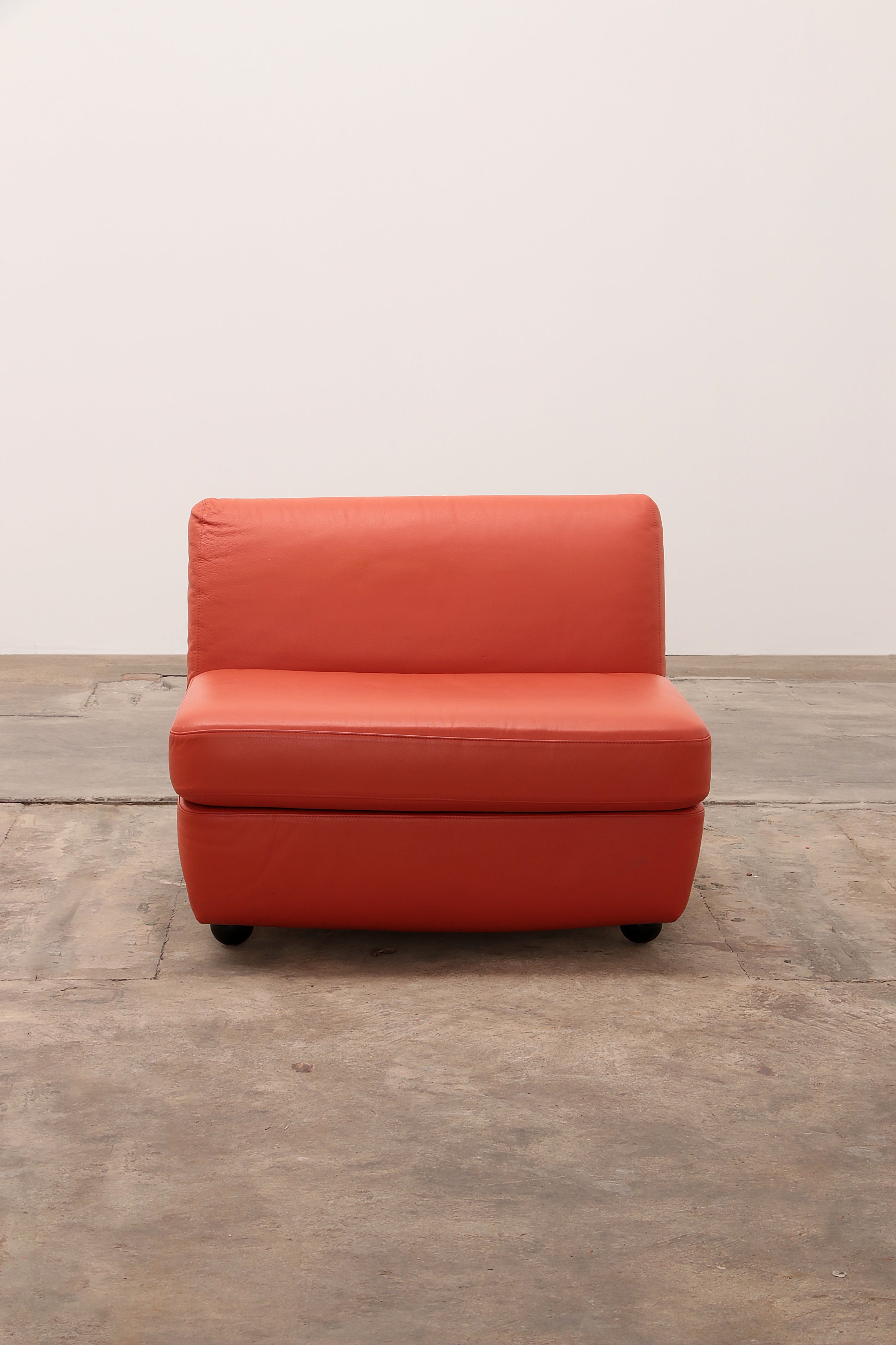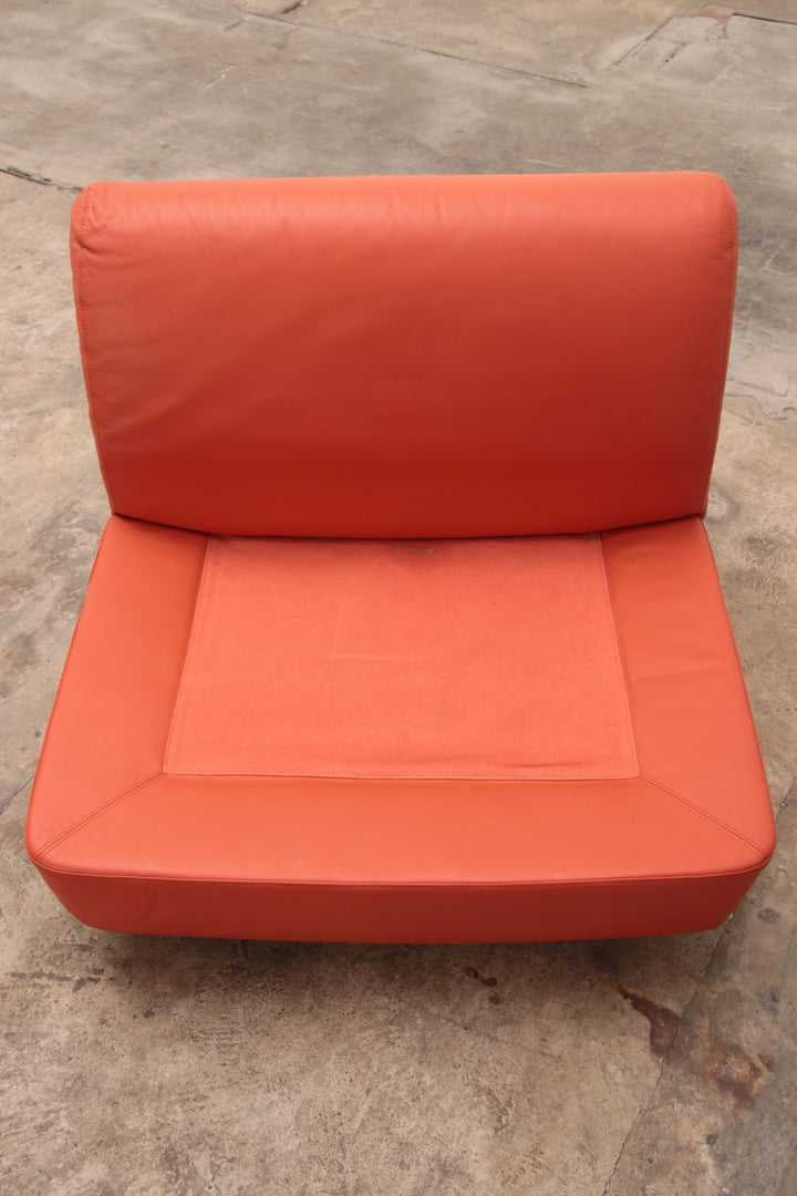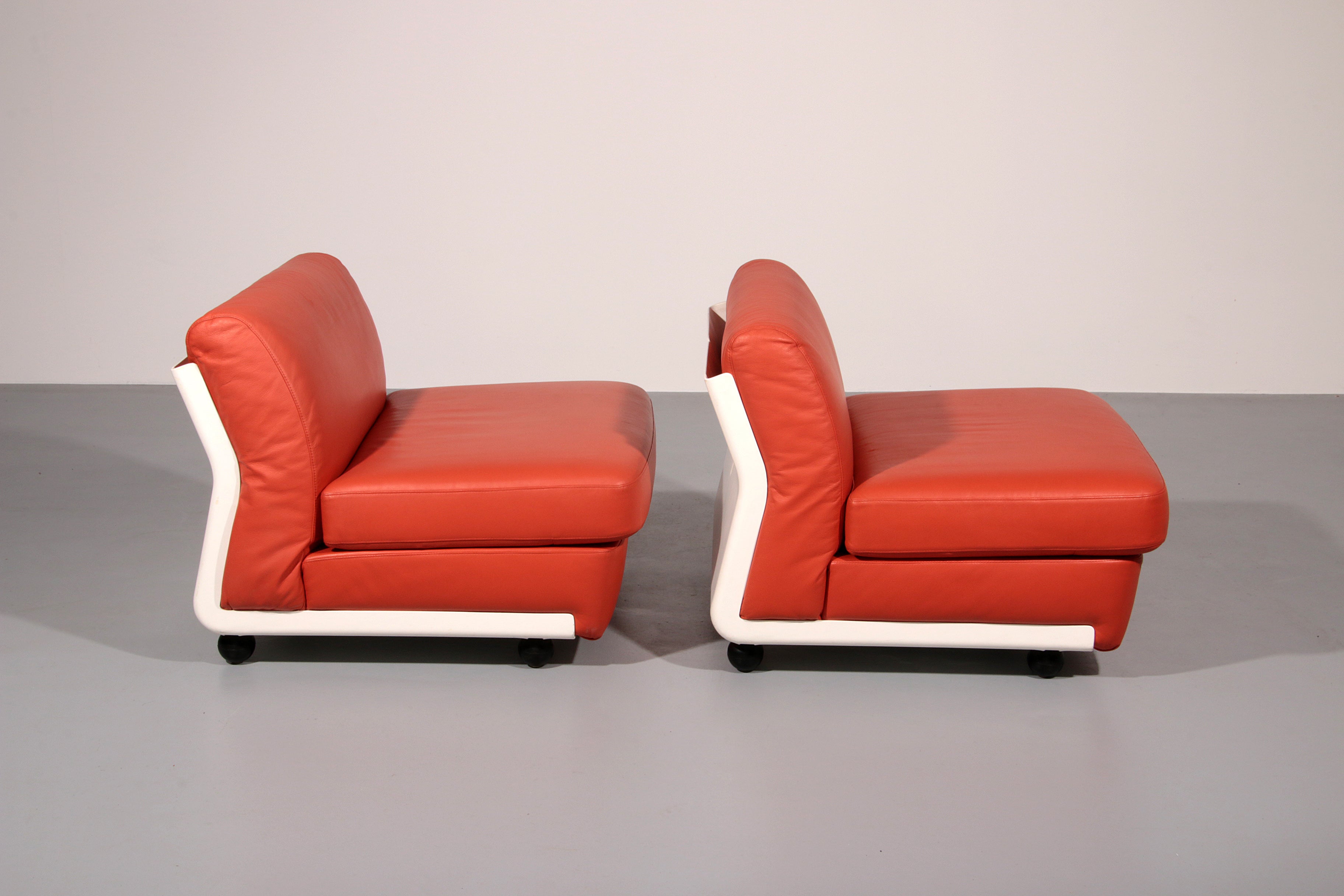 Discover the timeless elegance of the Mario Bellini Amanta modular sofa, a masterpiece from the 1960s crafted for C&B Italia. This exquisite set features four individual elements that can be effortlessly transformed into loungers or a cohesive sofa, offering versatility and style for any living space. The durable white fiberglass shells house seats upholstered in the original vibrant orange leather, showcasing a classic yet bold color combination that enhances any room's aesthetic. Ideal for spaces where traditional sofas are challenging to fit, this set is perfect for TV rooms, studies, or living areas. With minimal signs of wear, the fiberglass shells and seating remain in excellent condition, promising both comfort and durability.