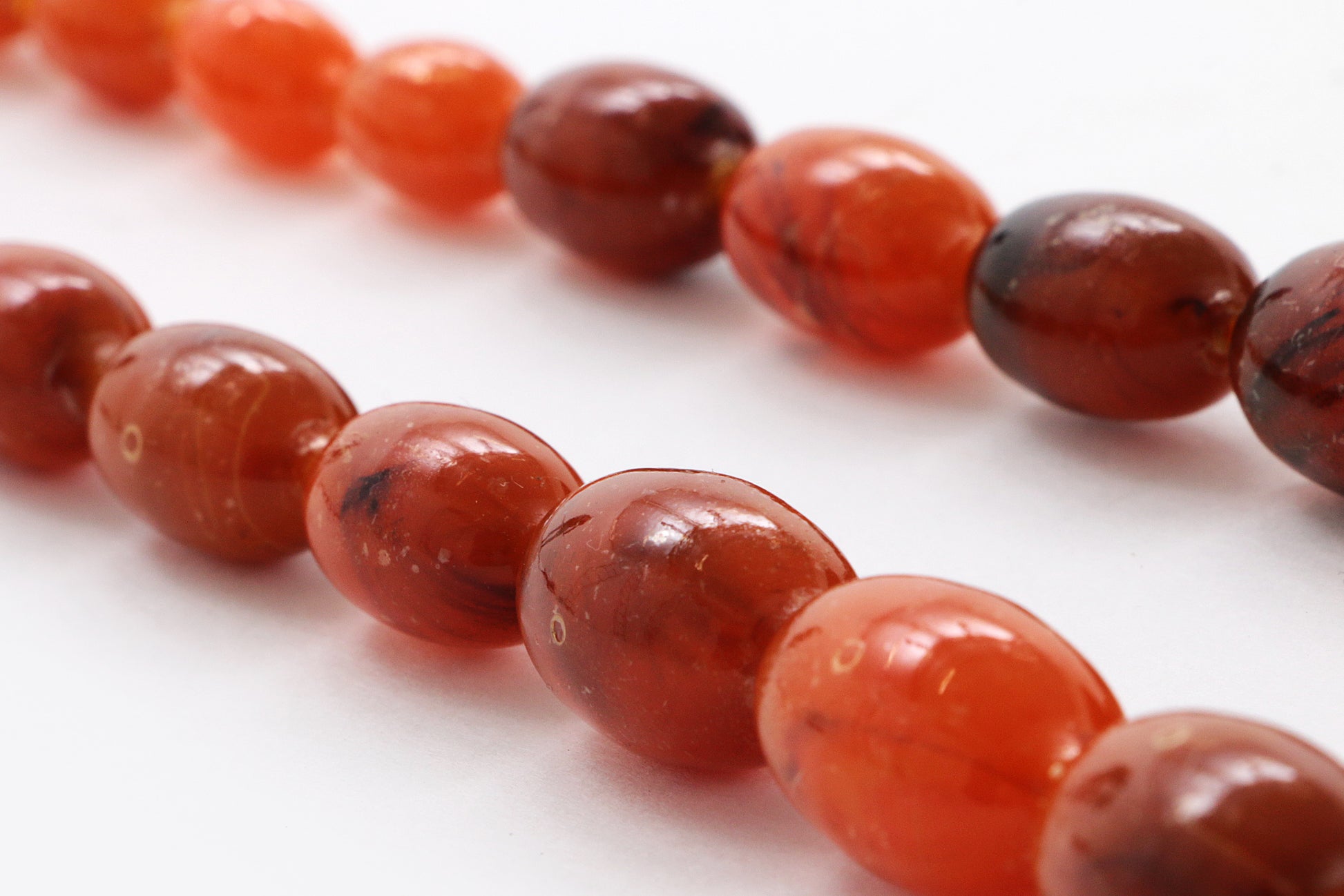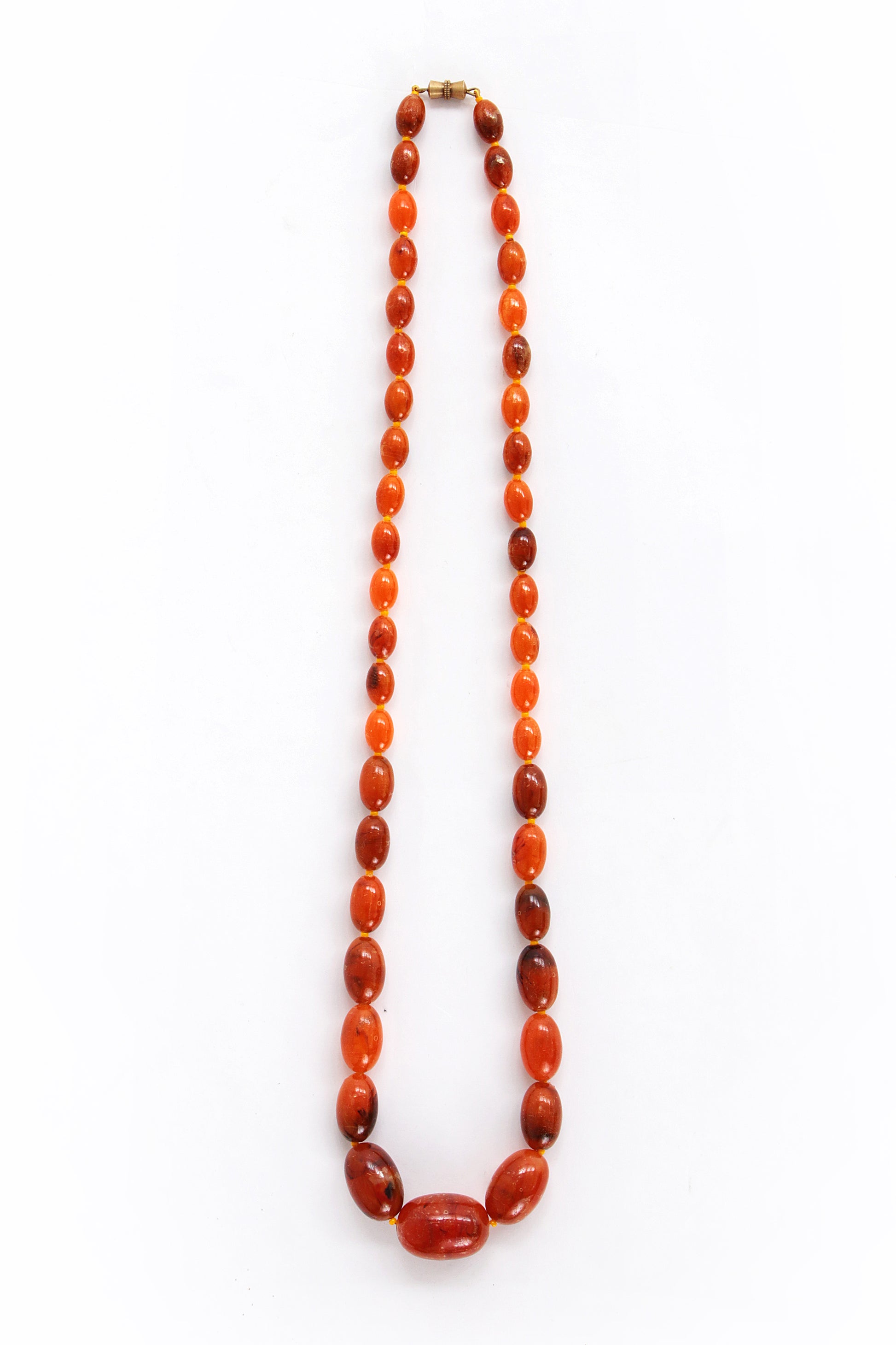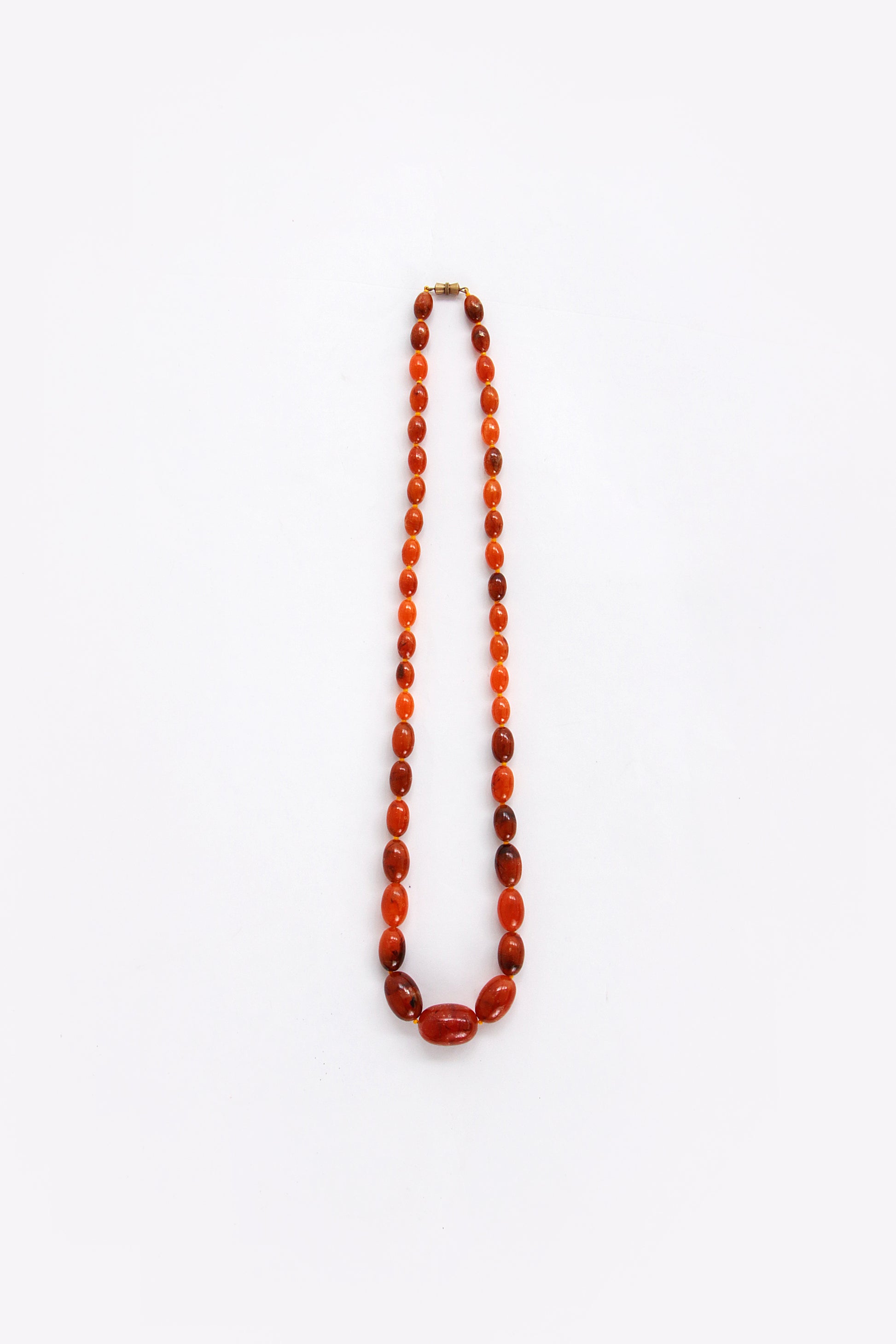 This vintage amber necklace features a rich amber color with a mix of irregular and round beads, offering a unique and distinctive look. Over time, it has developed a natural patina, making each piece one of a kind. Perfect for those who appreciate unique, historical jewelry.