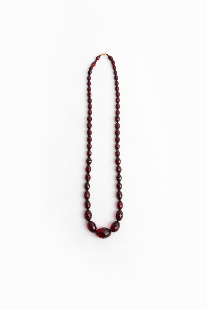 Vintage Red Long Amber Necklace, 1960