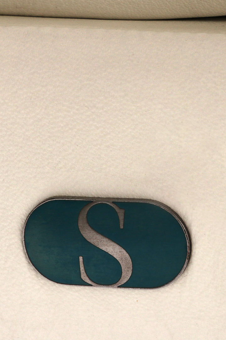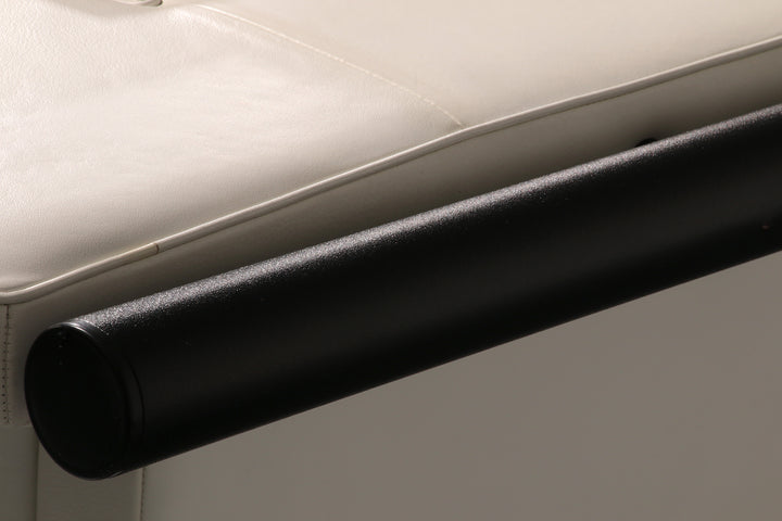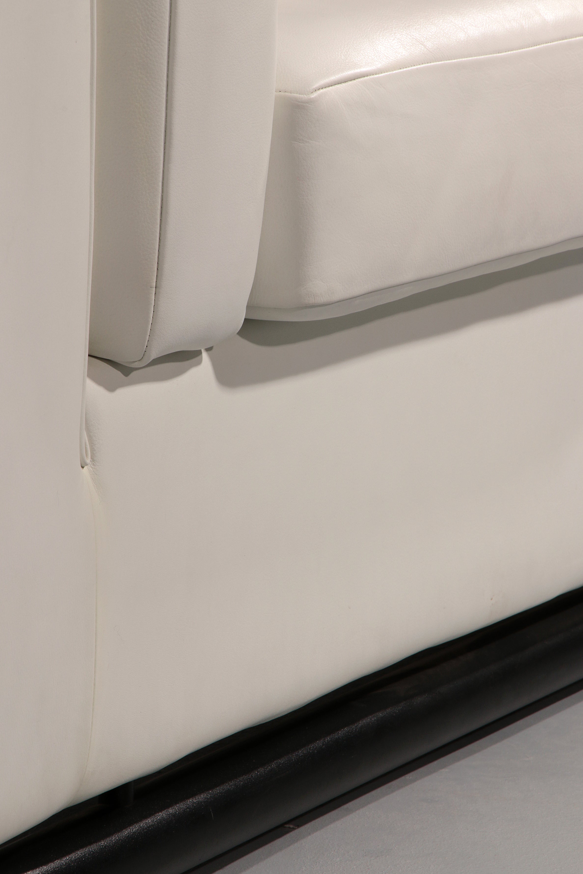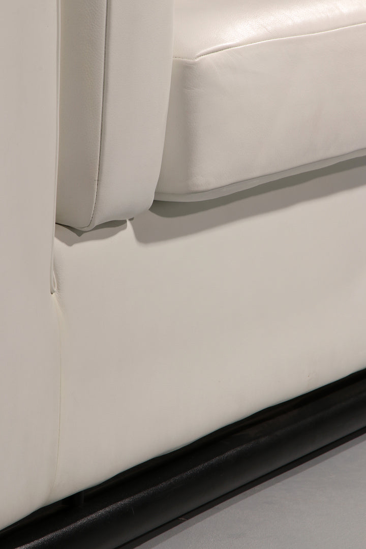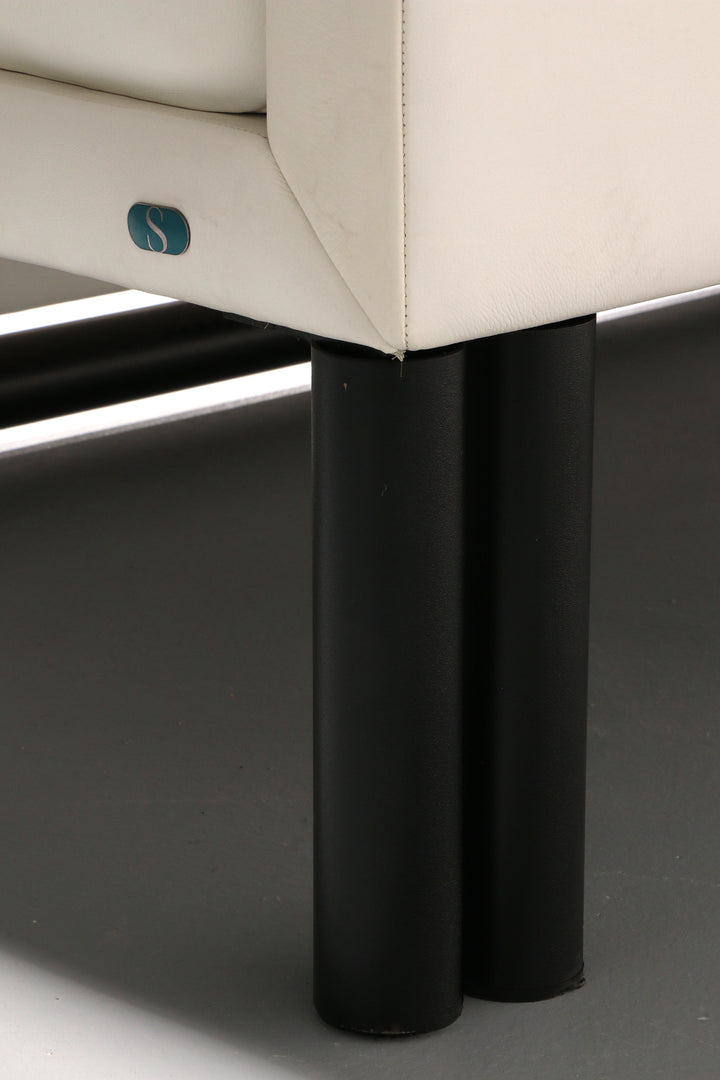 The original white leather upholstery combined with a striking black tubular frame creates a refined and modern aesthetic