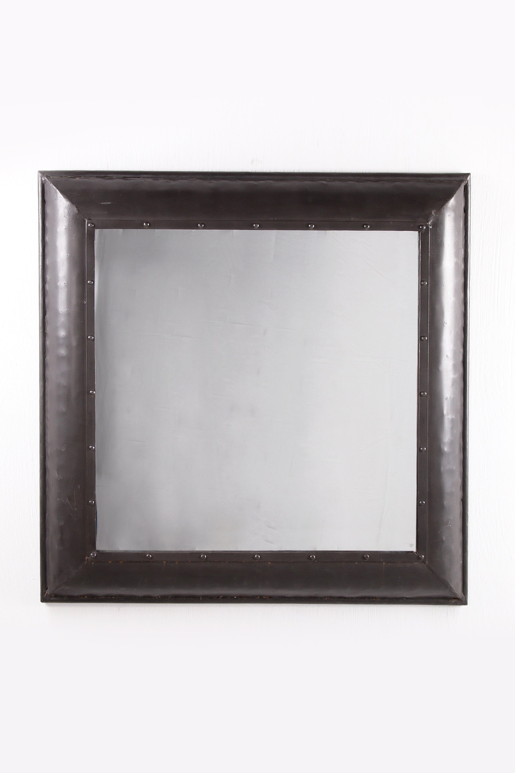 A unique and sustainable 1980s square wall mirror crafted from recycled metal, ideal for bathrooms or hallways.