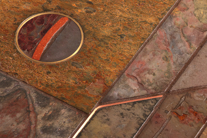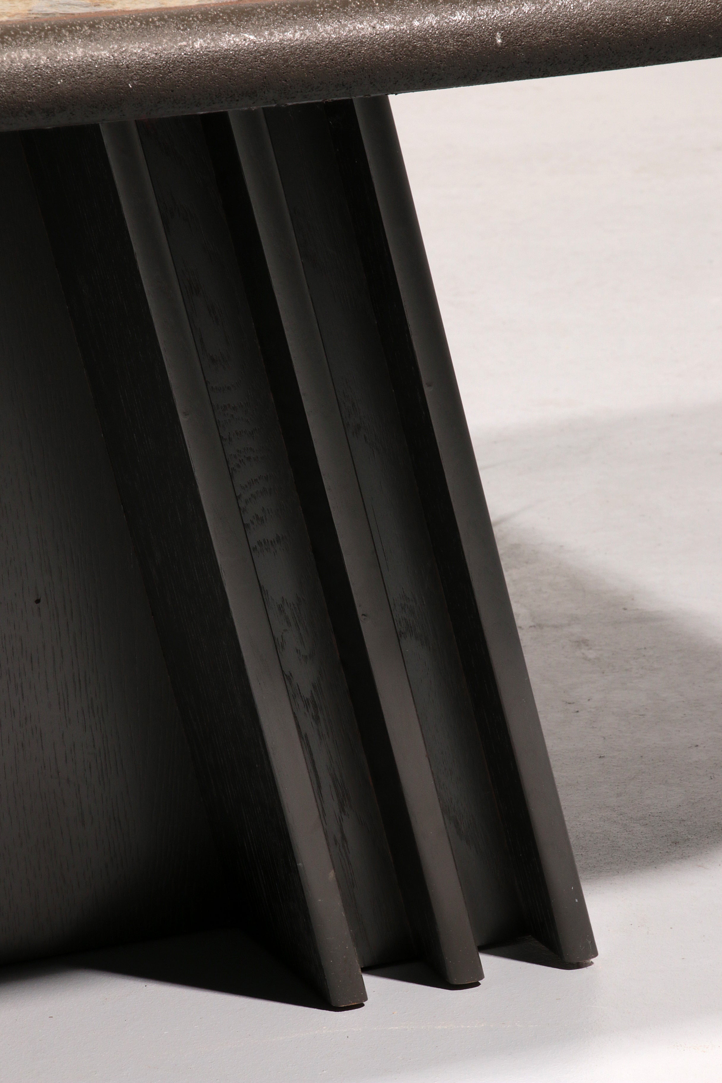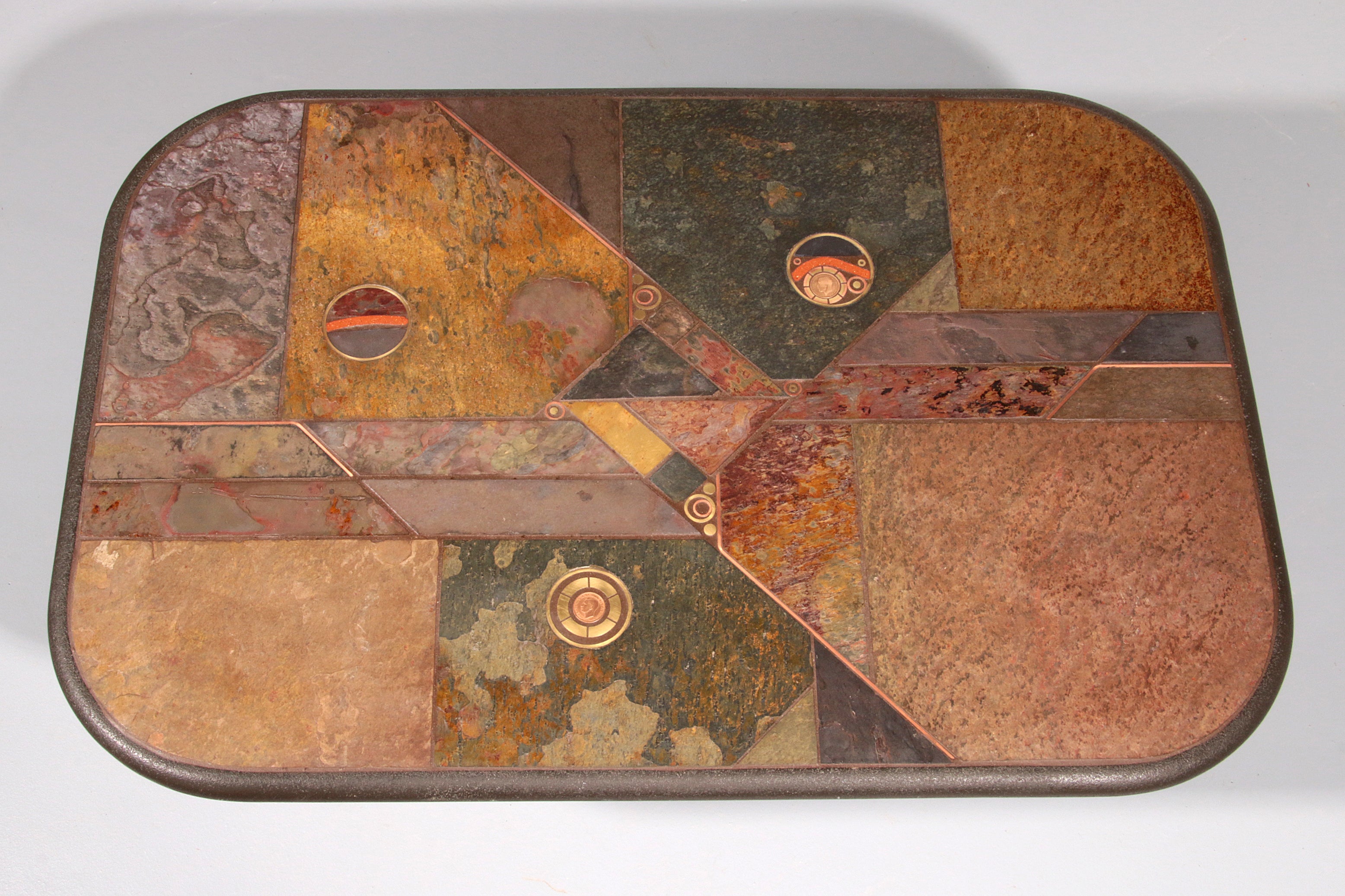 Brutalist Stone Coffee Table in the Style of Paul Kingma – Brass & Natural Stone Details