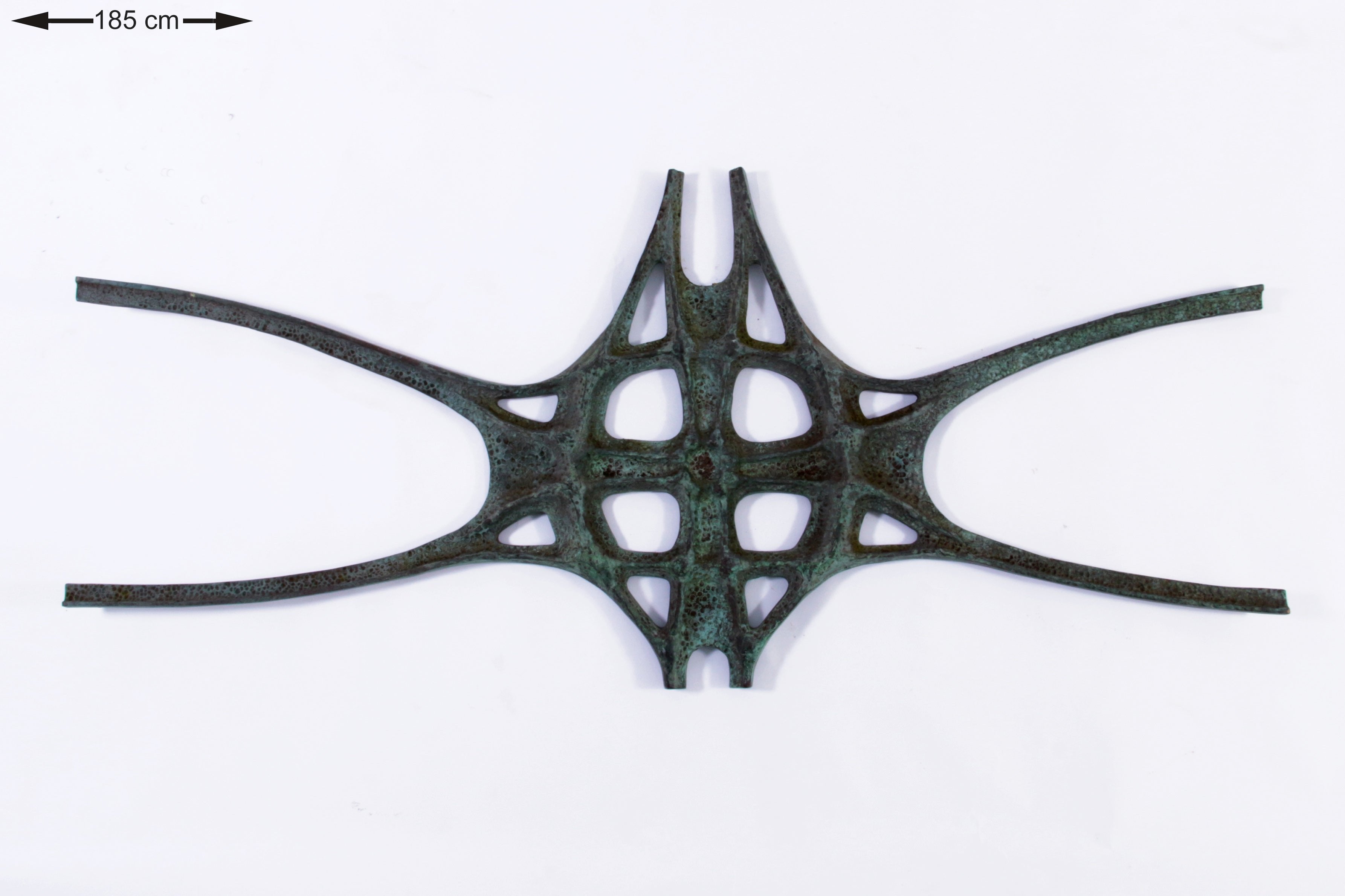 This Brutalist "Timeless Elegance" Bronze Wall Sculpture is an extraordinary work of art that combines the raw power of the Brutalist style with the timeless beauty of bronze. Cast at the renowned Bronsgieterij Boerenkamps in the Netherlands, the sculpture showcases the bold, geometric forms and textural depth typical of Brutalism. Its substantial weight (45 kg) and robust material make it a true statement piece, ideal for adding drama and sophistication to any interior. The rough texture and intricate design invite close examination, capturing the viewer's attention from every angle. Perfect for contemporary or industrial spaces, this sculpture embodies a powerful artistic presence, offering both visual impact and historical significance as a piece of high-quality craftsmanship.