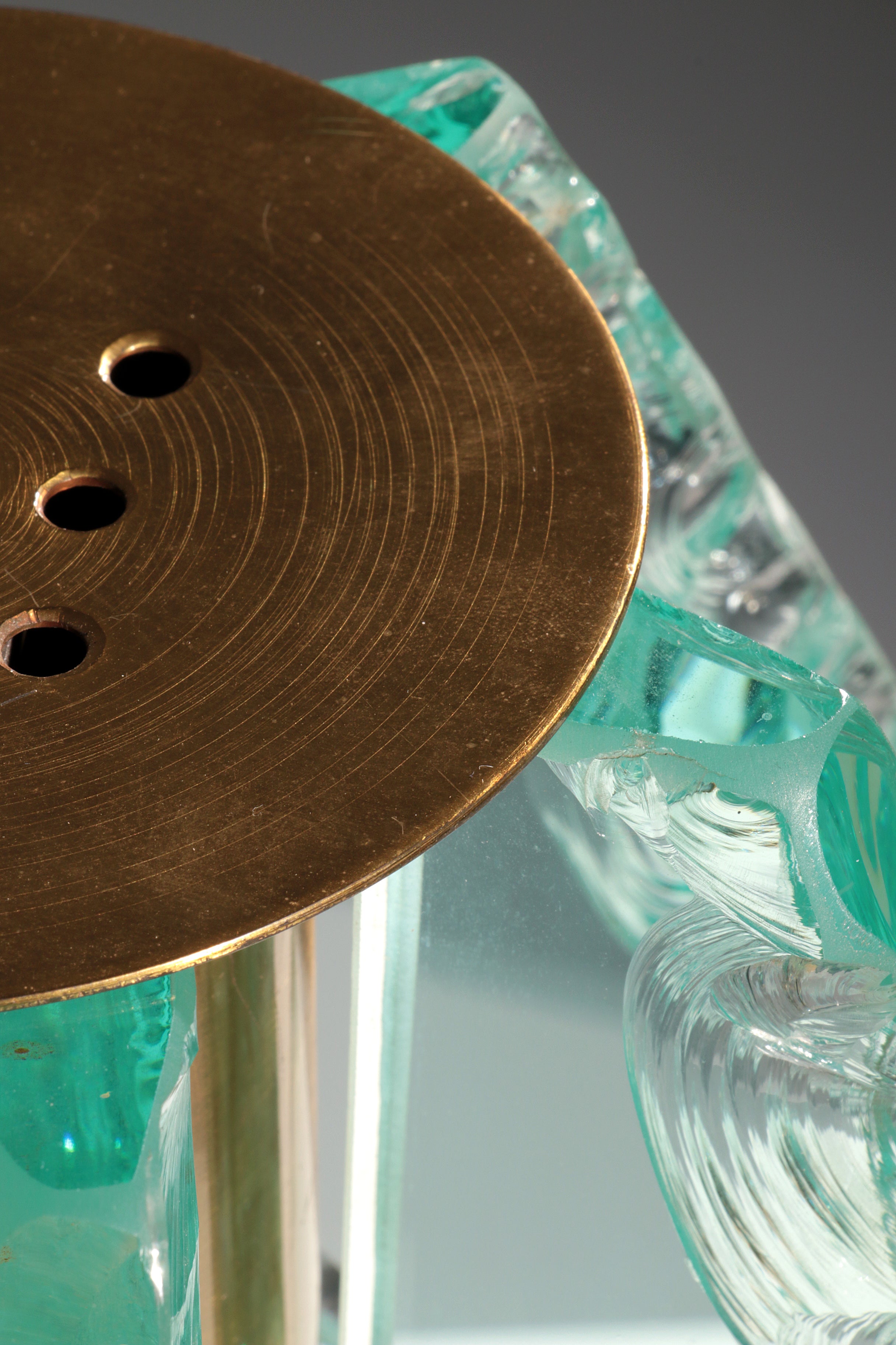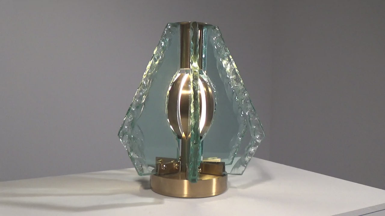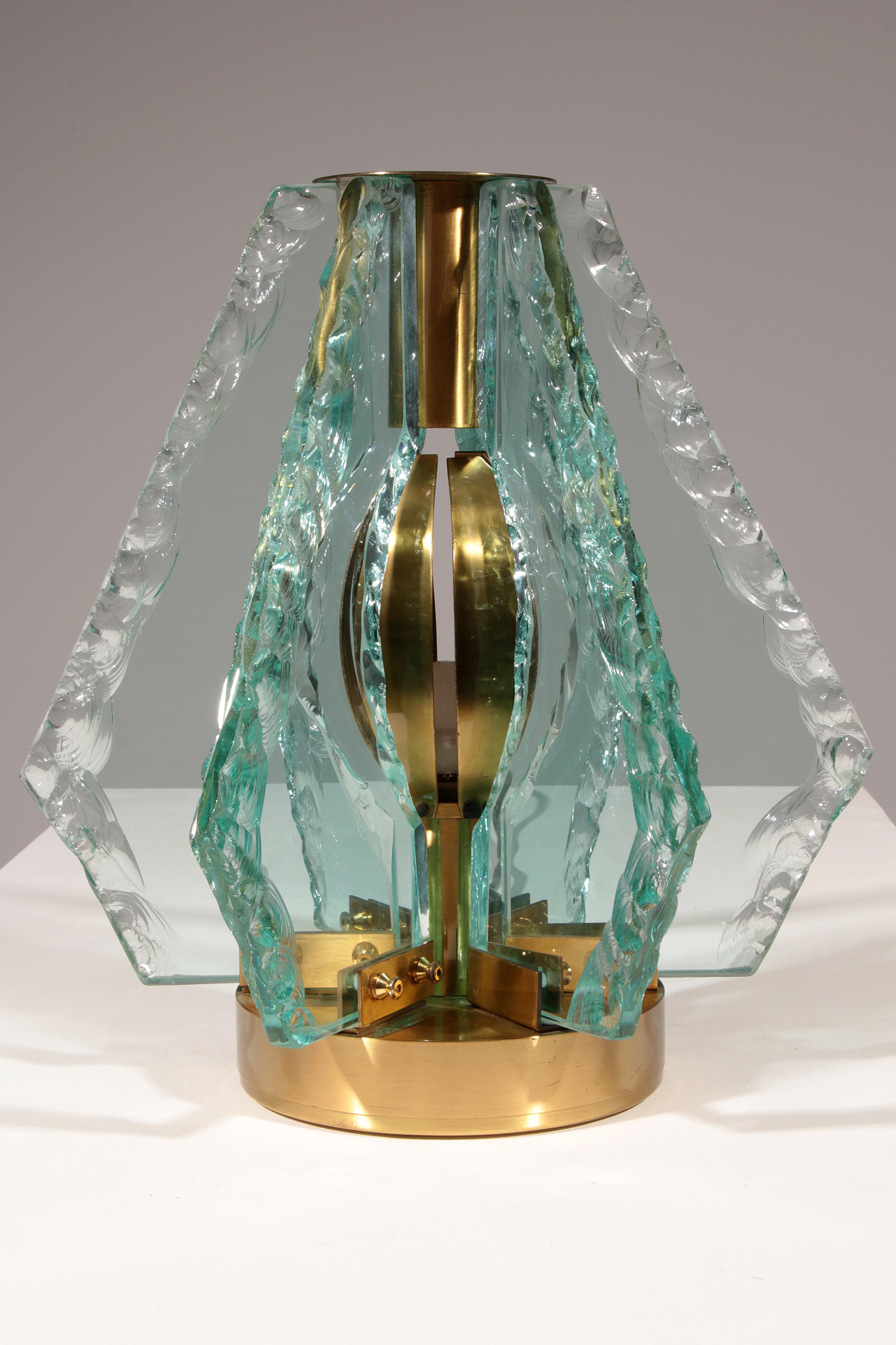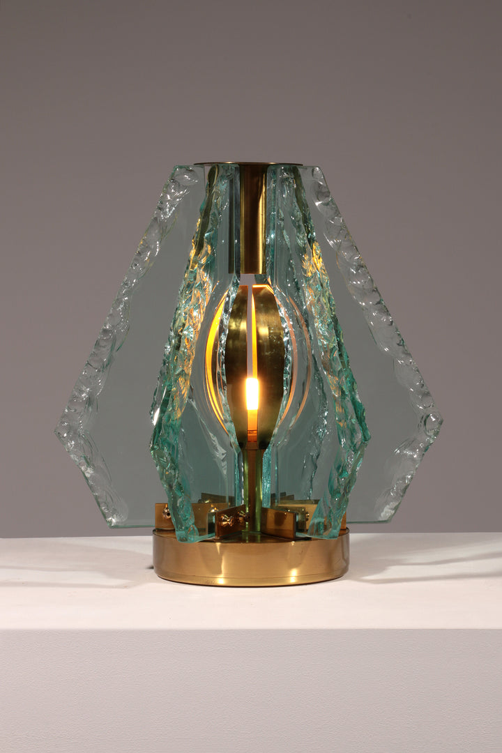 Chiselled Glass Table Lamp in Brass by Gino Paroldo for Dinodei, 1960s