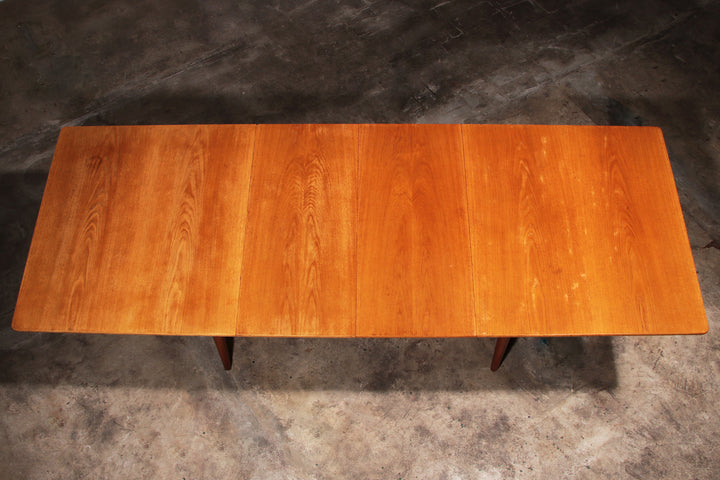 The chairs have been meticulously refurbished and upholstered in new black leather, ensuring they are as comfortable as they are stylish. The table, made from premium teak, extends from 160cm to 240cm, making it perfect for both intimate dinners and larger gatherings.