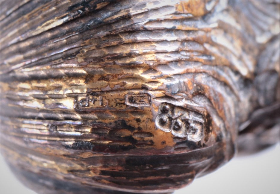This charming walnut wood bowl, shaped like a half walnut shell, is beautifully adorned with a solid silver 835 squirrel perched on a branch. A perfect blend of nature and craftsmanship, this bowl makes a delightful addition to any table or dresser.