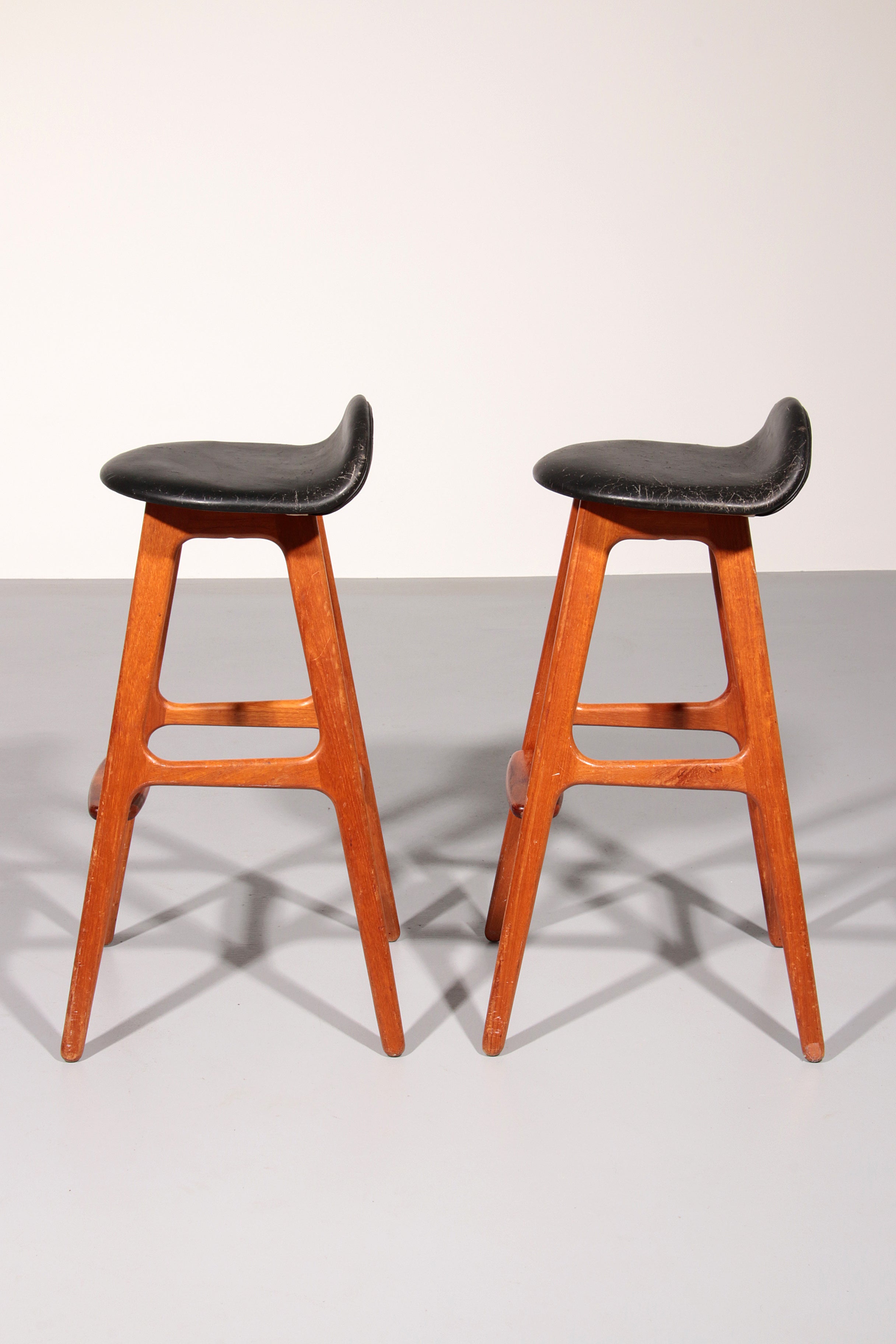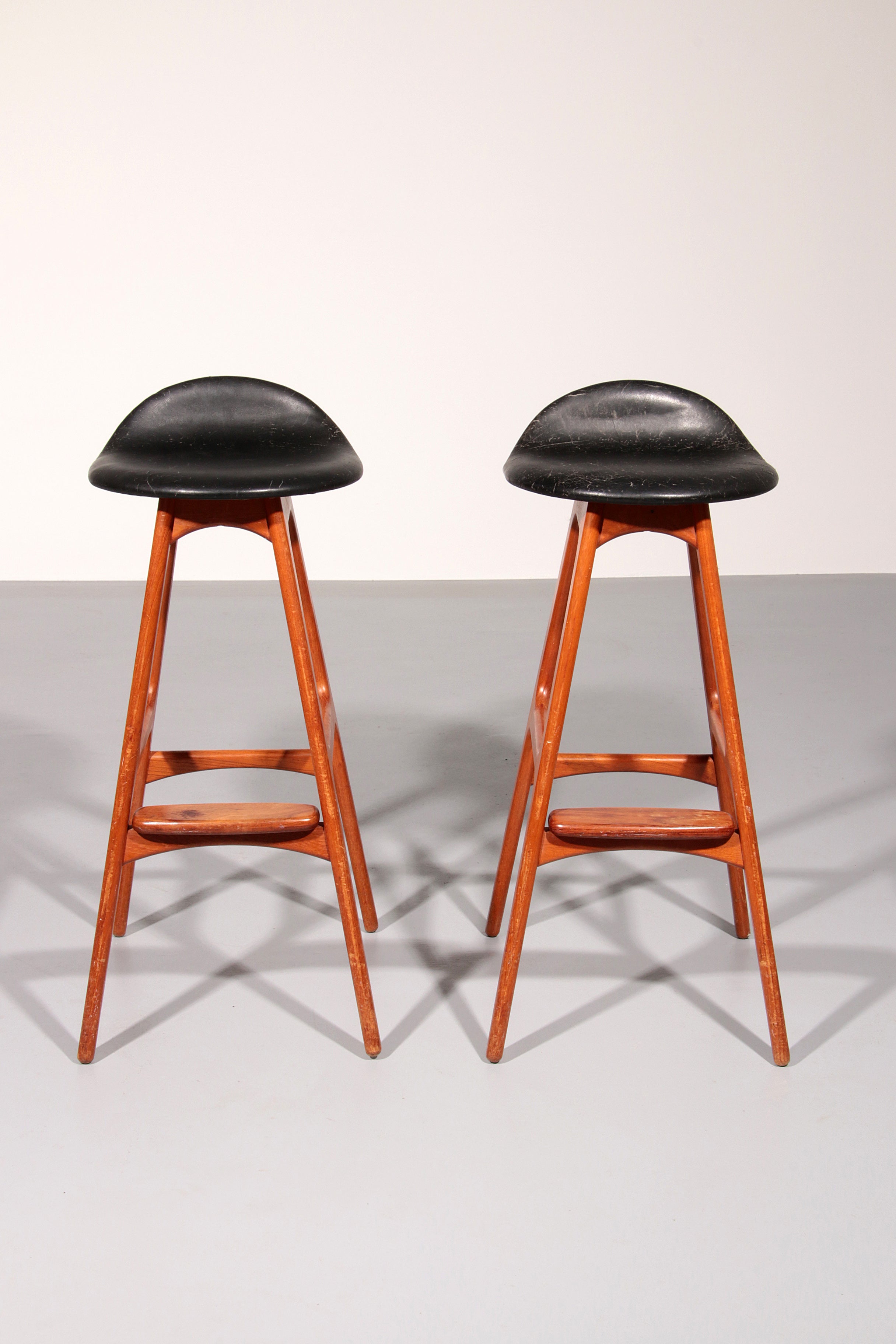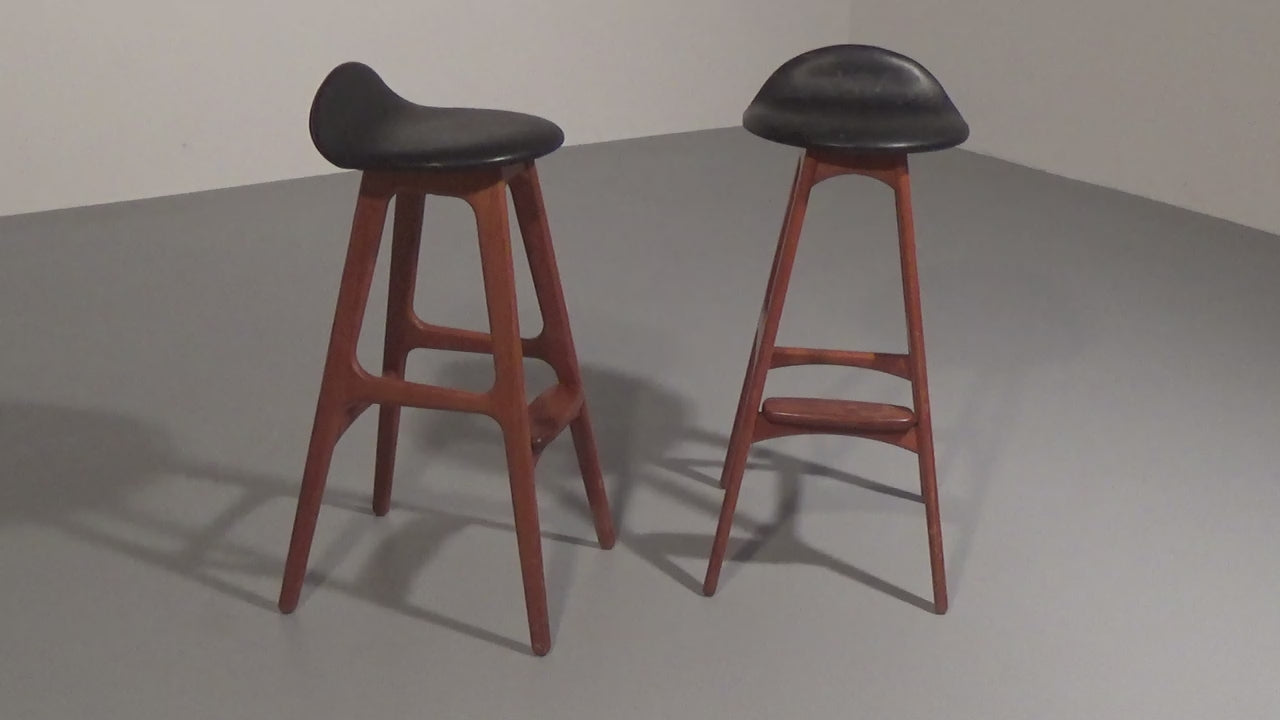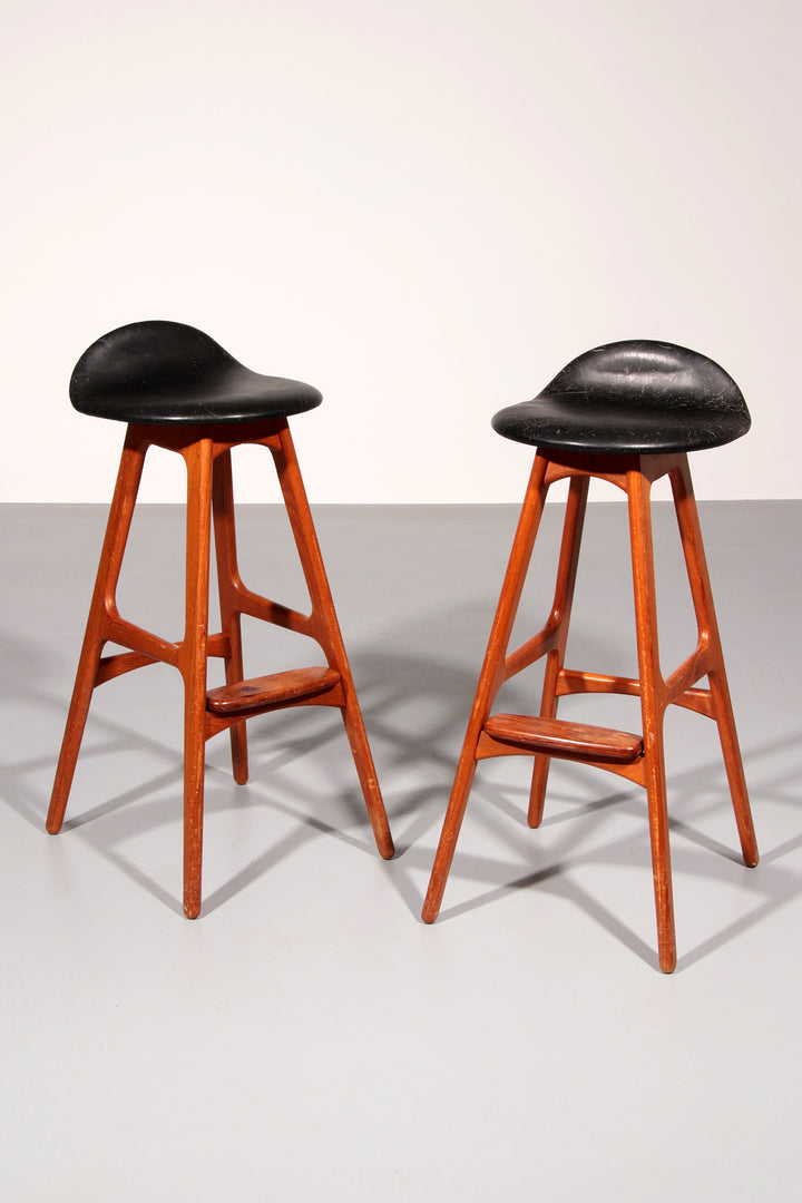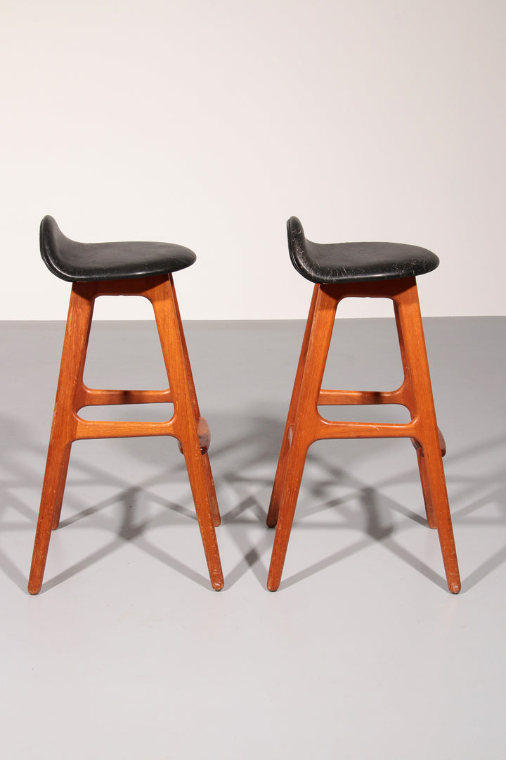 Design Bar Stool in wood and Black Leather by Erik Buch 1960