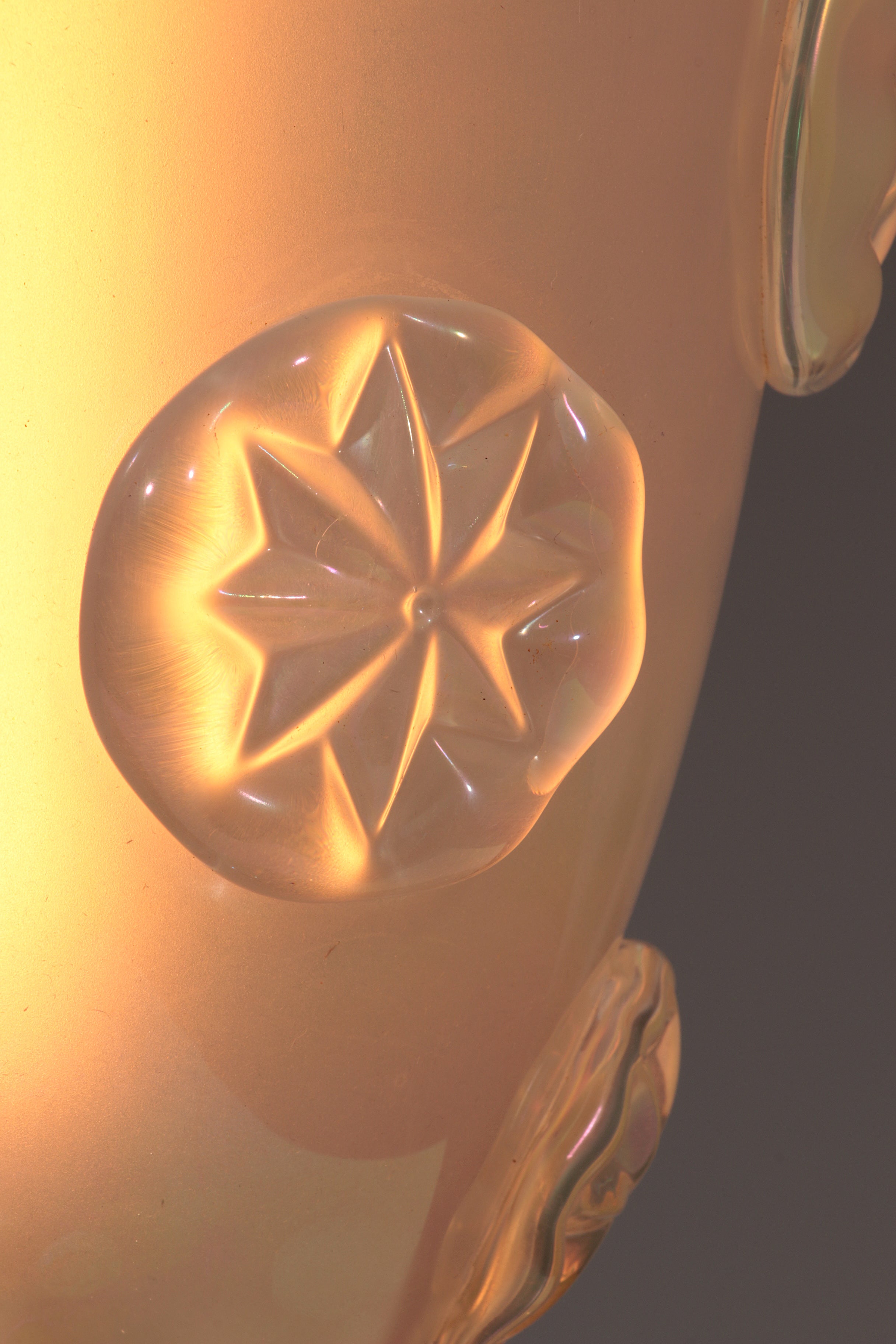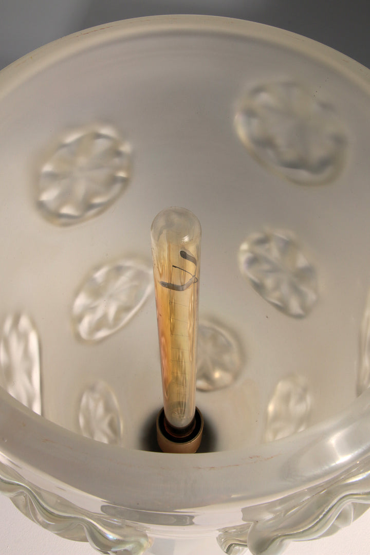 One of the most remarkable features of these lamps is the delicate microbubbles that are trapped inside the glass flowers and bulbs, a distinctive process typical of the era. These lamps not only provide beautiful ambient lighting but also serve as a stunning decorative element, combining form and function seamlessly.