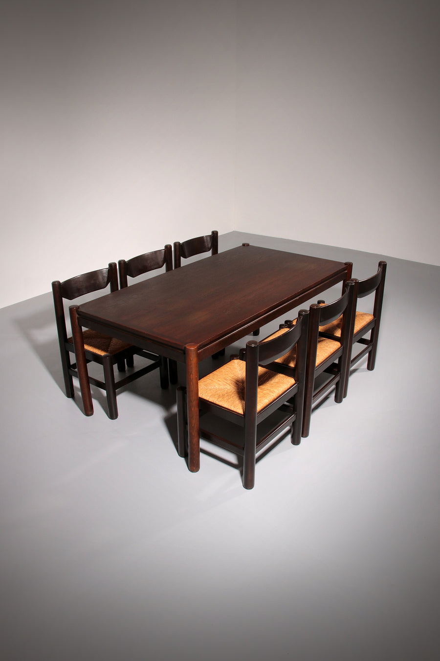 Dining Set inspired by Vico Magistretti, featuring six elegantly re-caned chairs and table.