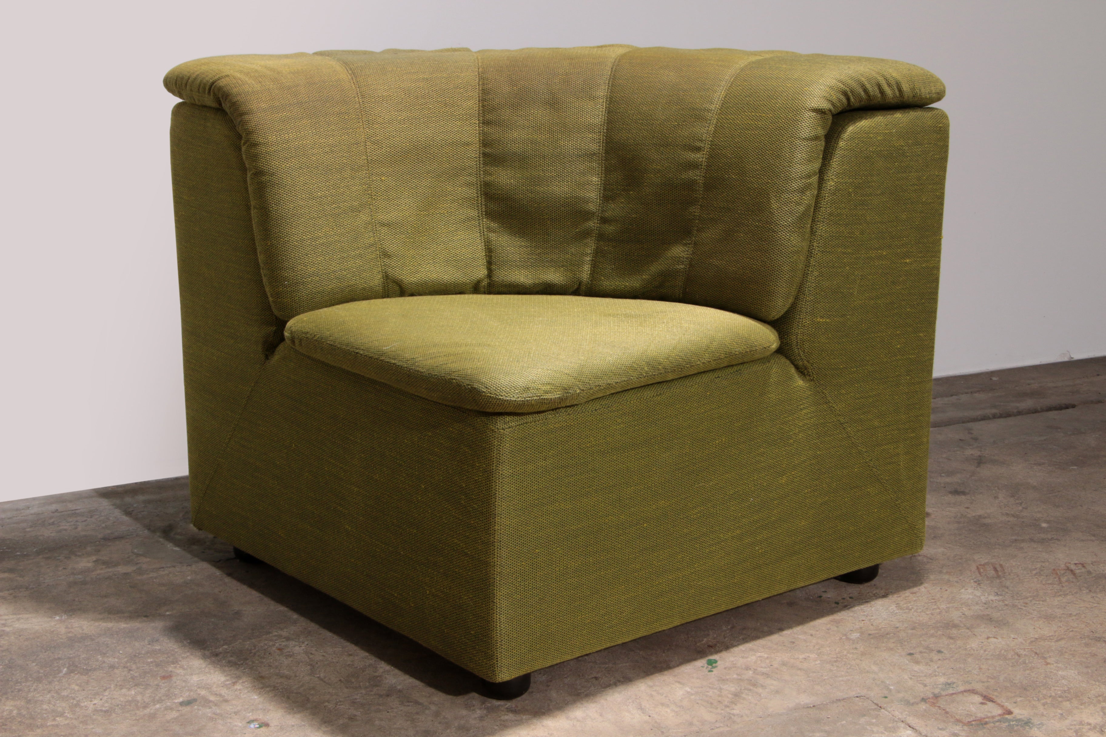 Elevate your living space with this exceptional 9-piece modular sofa by Durlet, upholstered in high-quality fabric from De Ploeg in a striking green color. Known for its timeless design and superior craftsmanship, this sofa is not only a statement piece but also highly functional. Each of the 9 individual elements can be arranged to fit your room’s layout, offering endless customization options. Whether you're hosting guests or enjoying a quiet evening at home, this sofa adapts effortlessly to your lifestyle while adding a pop of color to your space.