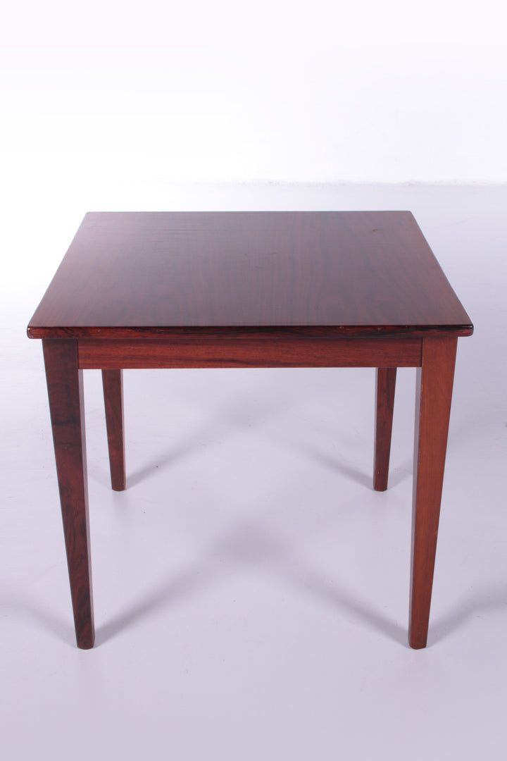 Discover the timeless elegance of the Danish wood Side Table, a versatile piece that effortlessly complements any living space. Crafted in Denmark, this exquisite side table showcases the rich, deep hues and distinctive grain patterns of rosewood, offering a luxurious touch to your home decor. Its refined craftsmanship ensures durability, while its vintage charm adds character to any room. Despite minor signs of use, a touch of oil can easily restore its original luster, making it a perfect blend of beauty and practicality.