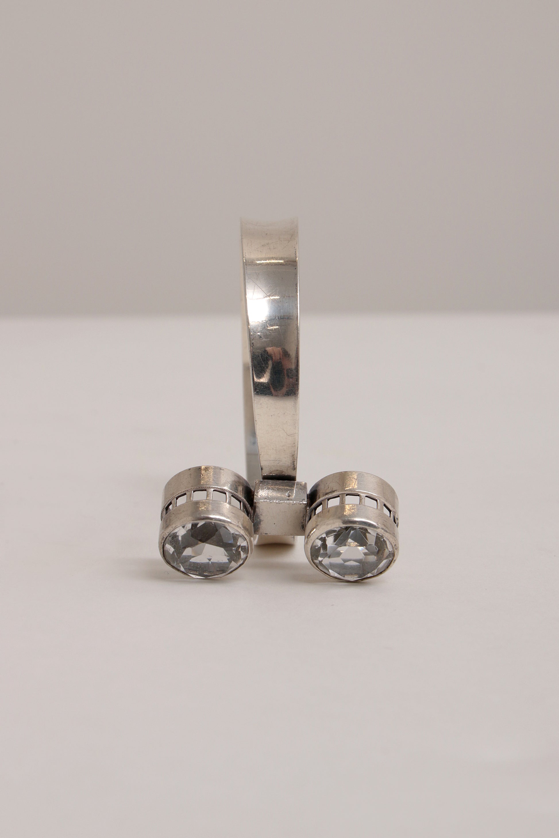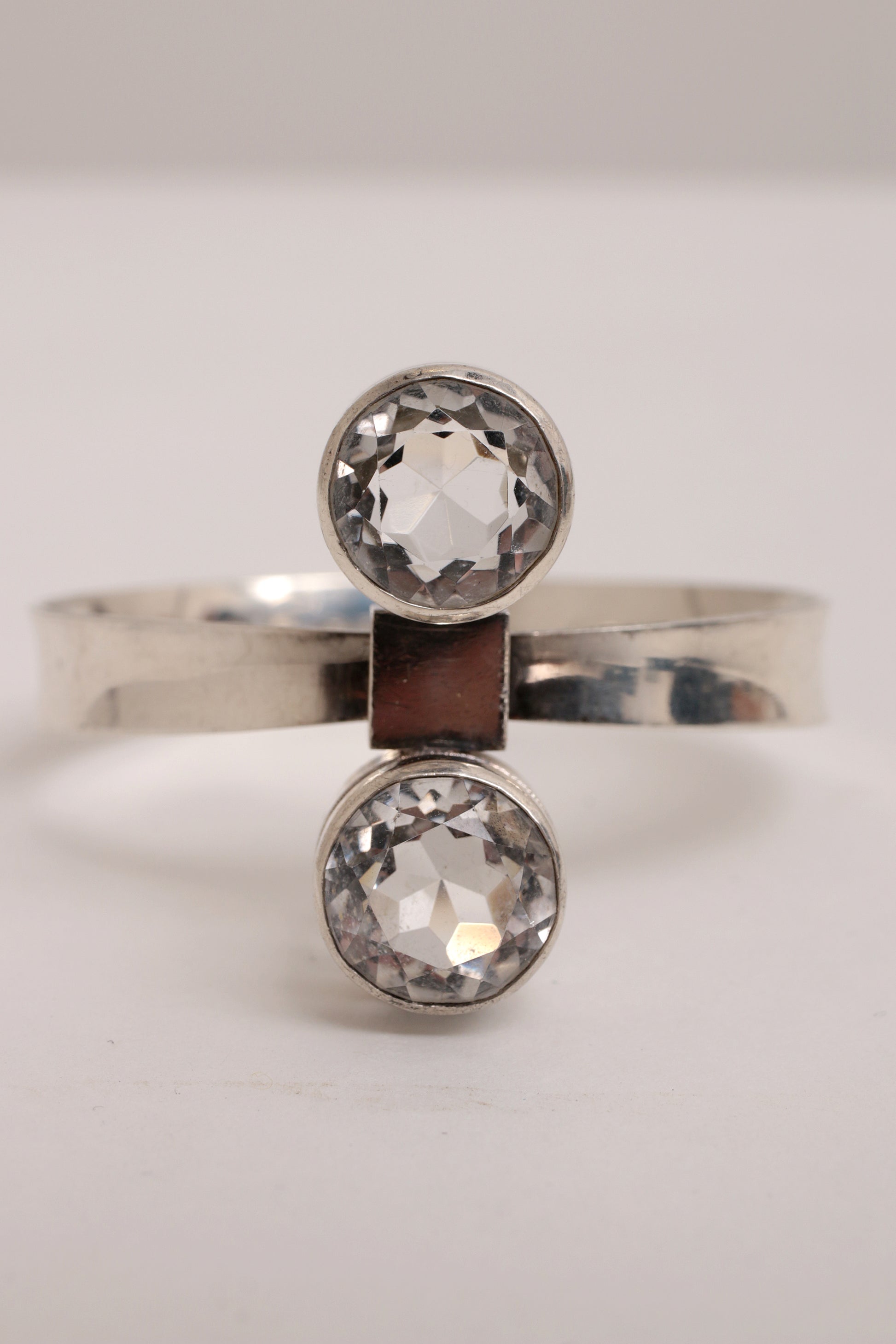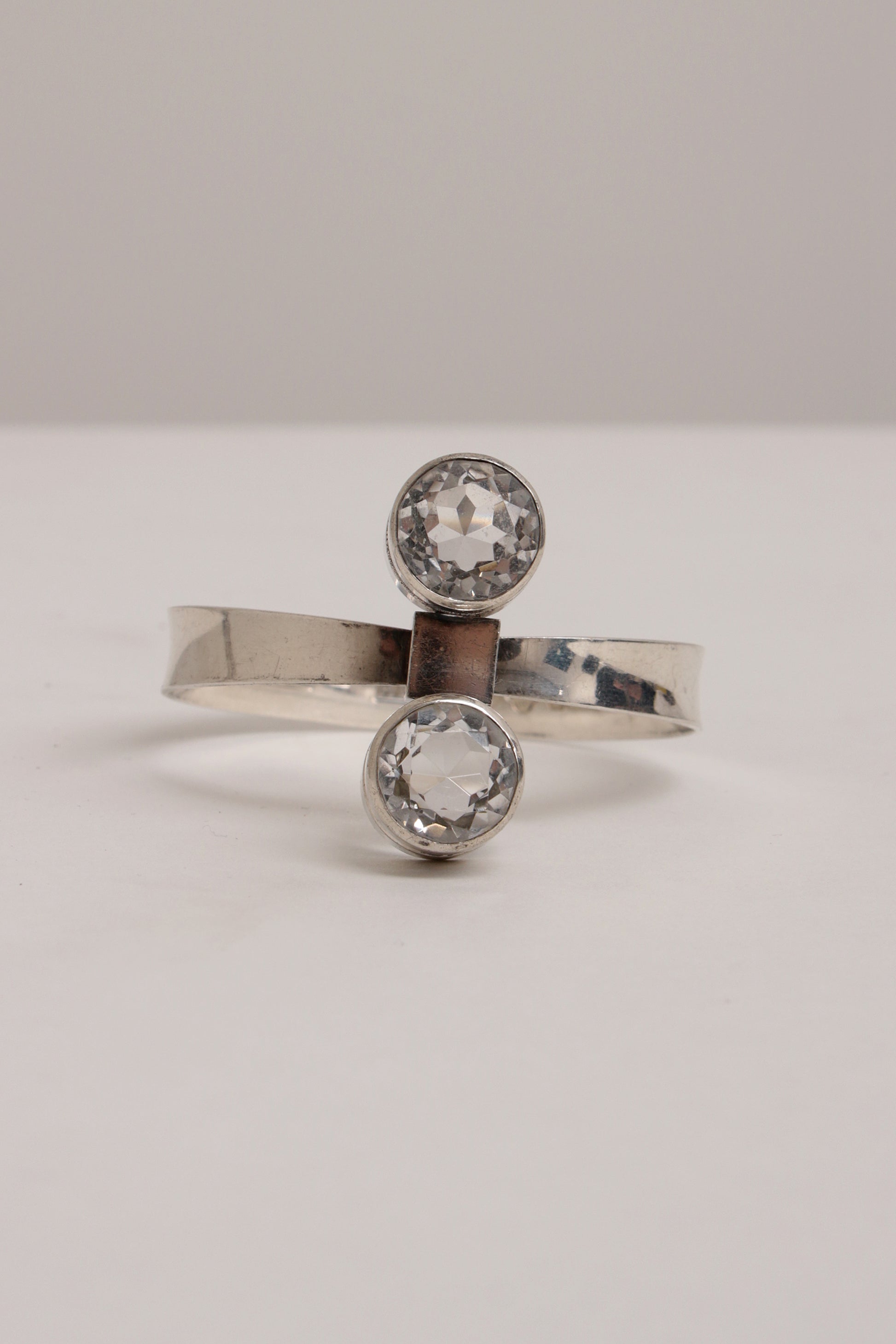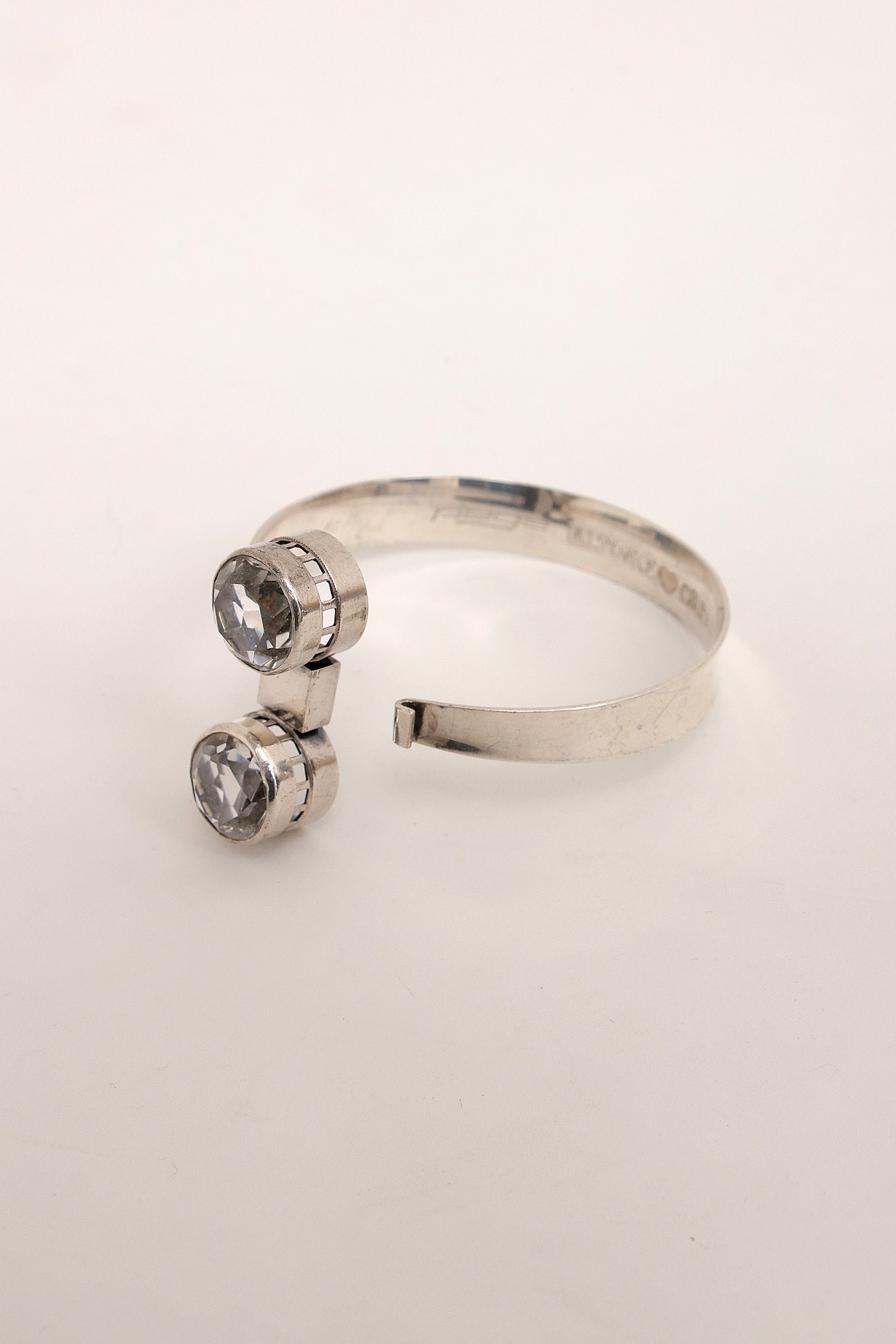 Exquisite Swedish Sterling Silver Bracelet with Dual Faceted Rock Crystal by Alton, 1967