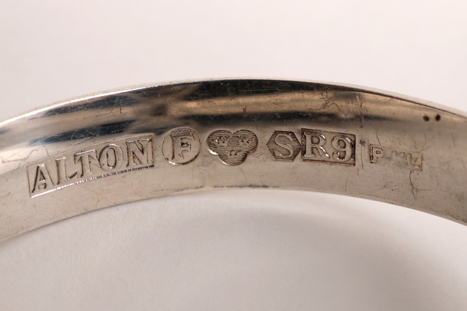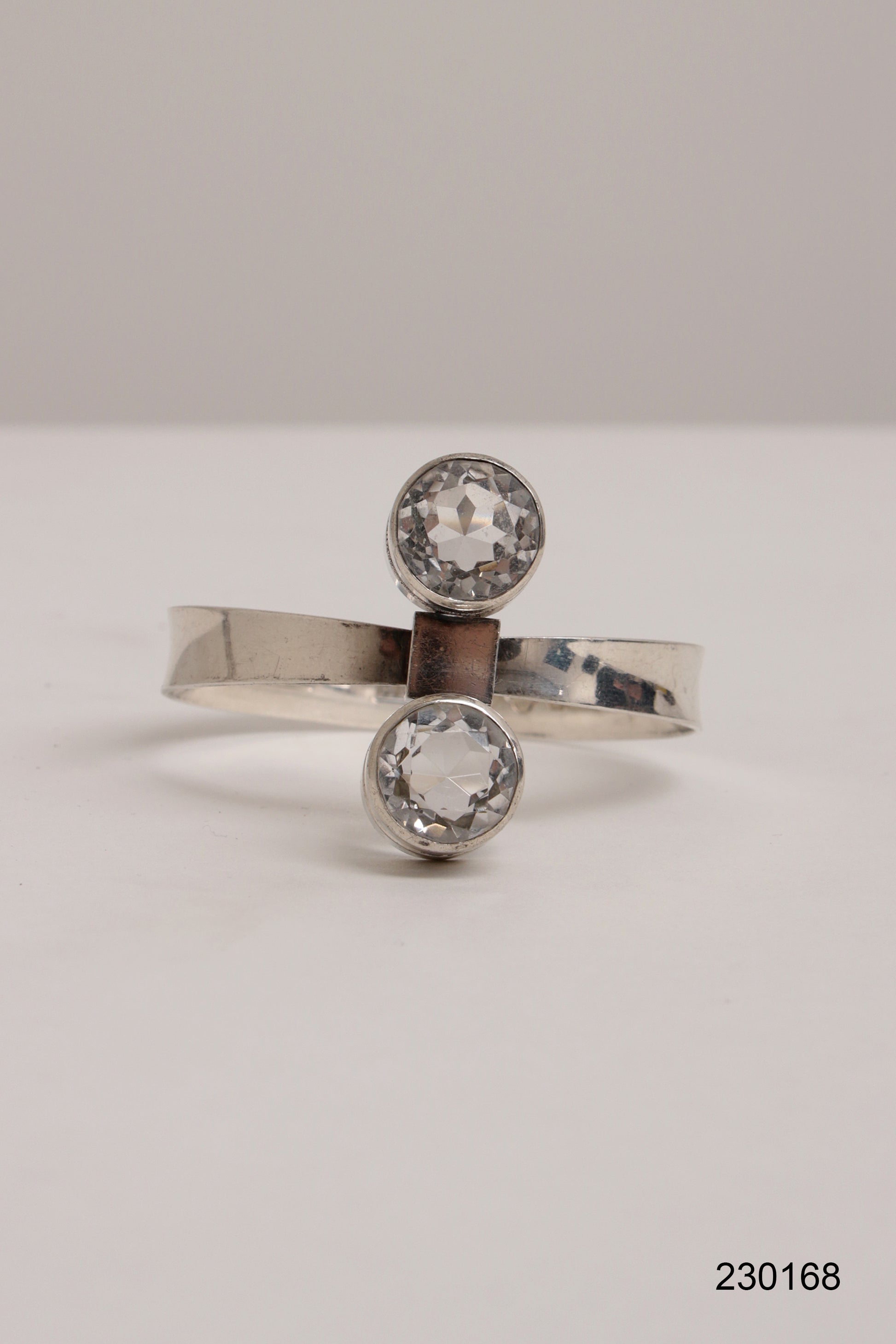 The bracelet measures 5.7 cm by 5.5 cm internally, making it suitable for smaller wrists or layering with other jewelry. Its year letter “R9” marks it as a 1967 creation, confirming its historical and collectible value. The rock crystals are securely held within the silver frame, designed to allow light to pass through from all angles, enhancing their natural brilliance. This versatile piece can be worn for both everyday elegance and special occasions, making it a timeless addition to any jewelry collection.