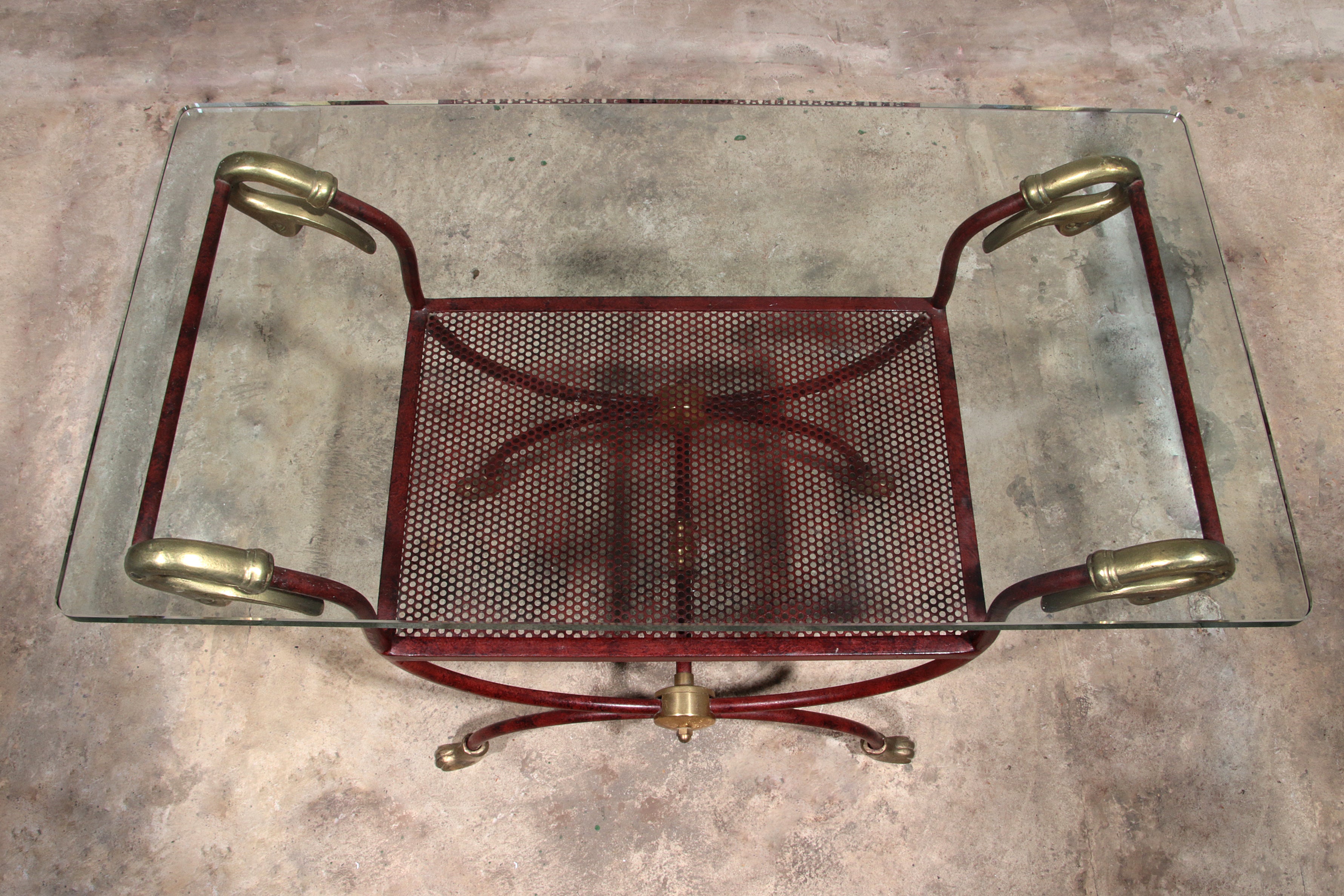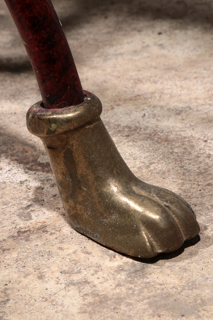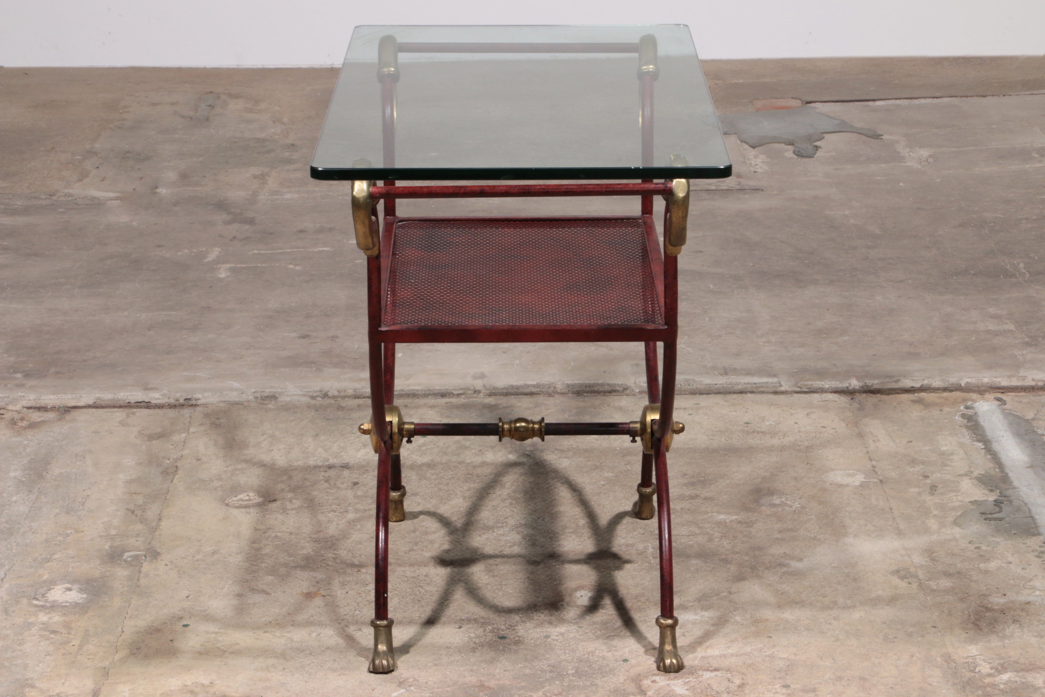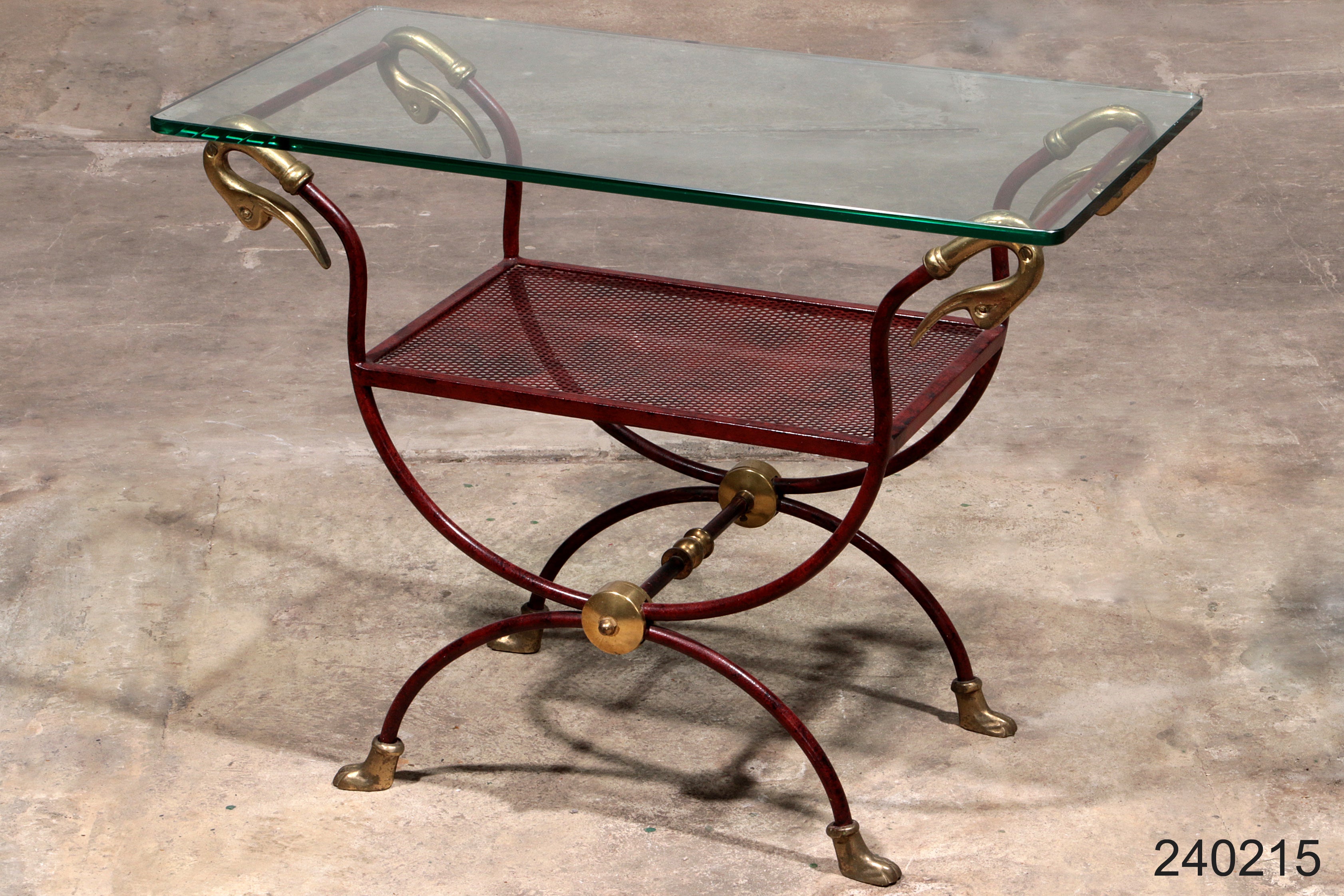 This exquisite Neo-Classical Swan Neck Curule Chair, attributed to the renowned Maison Jansen, is a stunning addition to any outdoor setting or poolside area. Crafted from Bordeaux lacquered metal, it features elegant brass details that exude sophistication and timeless charm. The chair stands gracefully on four brass legs, with swan necks connected by metal rods serving as armrests, offering both style and comfort. The perforated metal seat adds a touch of decorative flair, making this chair not just a piece of furniture, but a work of art.