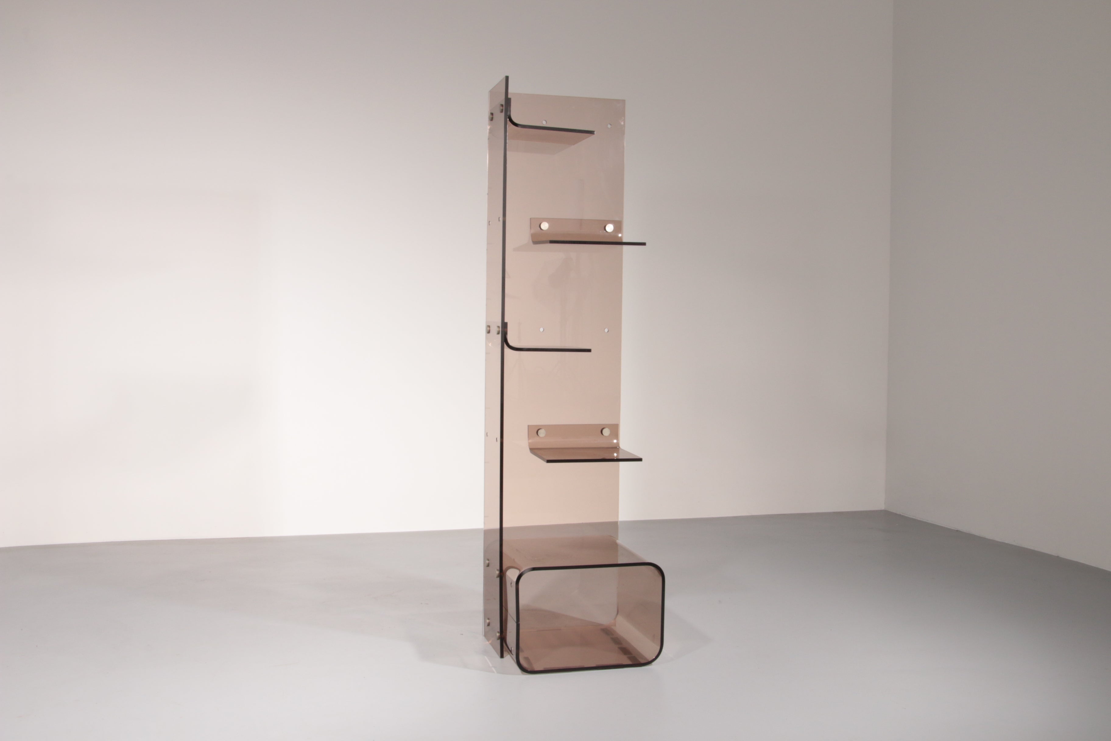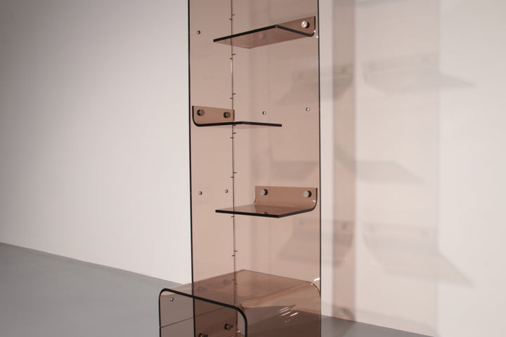 Designed during an era when acrylic furniture symbolized progress and innovation, this bookcase feels both futuristic and timeless.