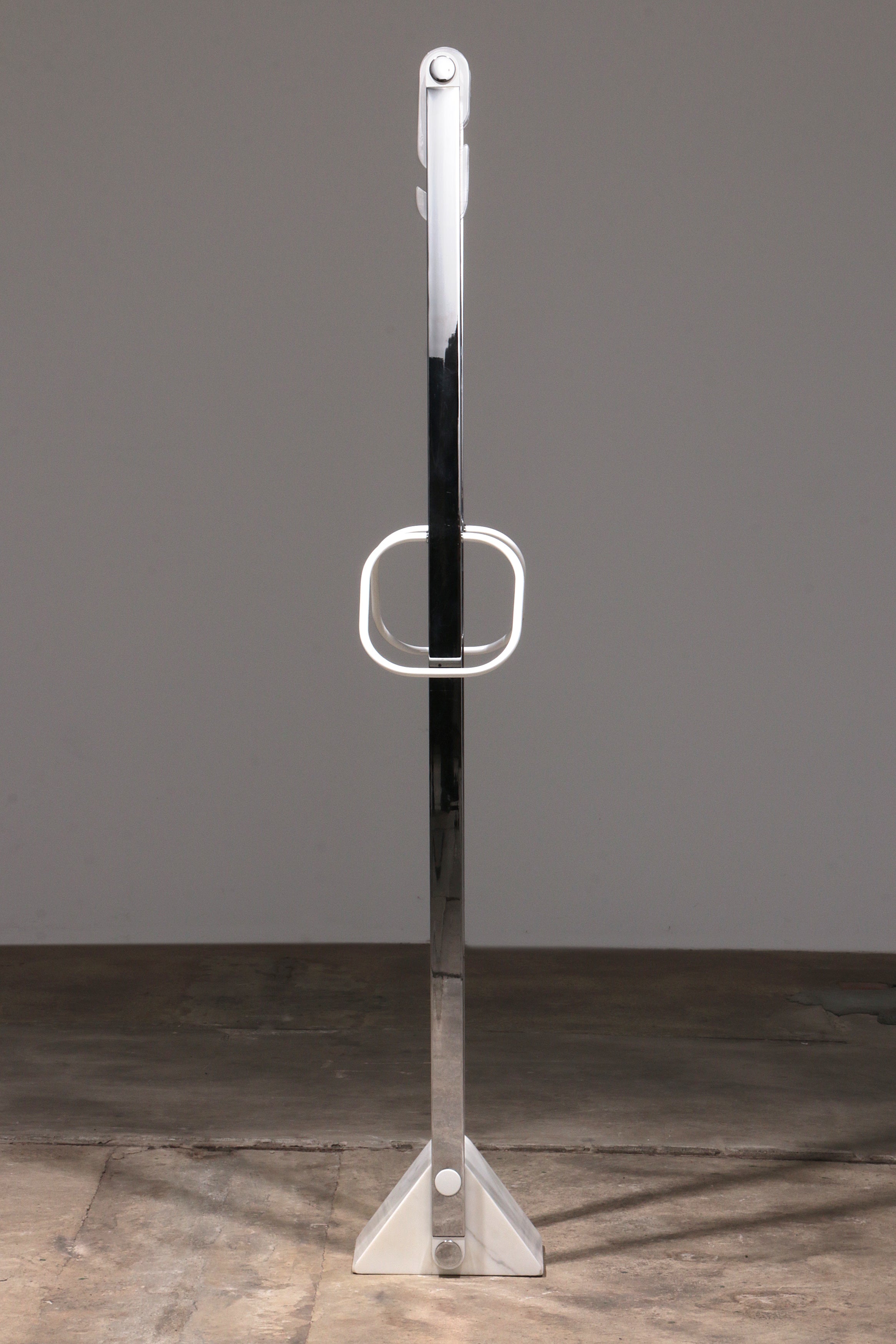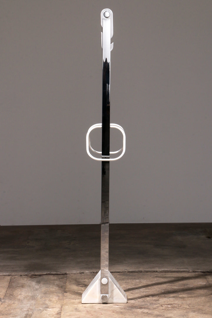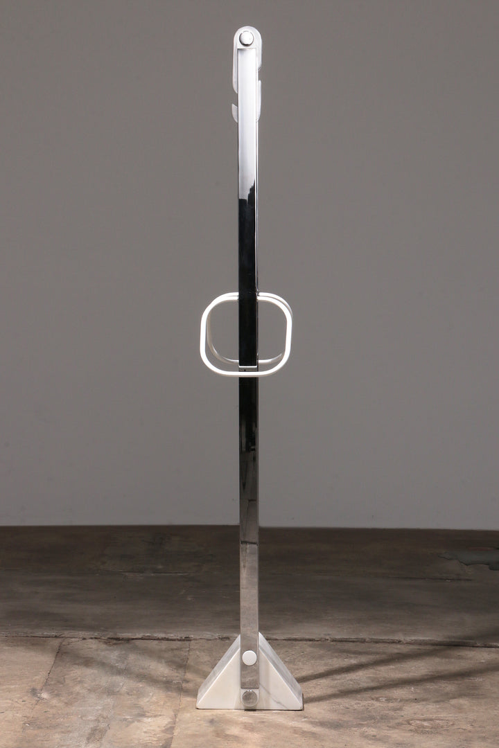 Italian Design Coat Rack with White Marble Base and Chrome Stands, 1970s