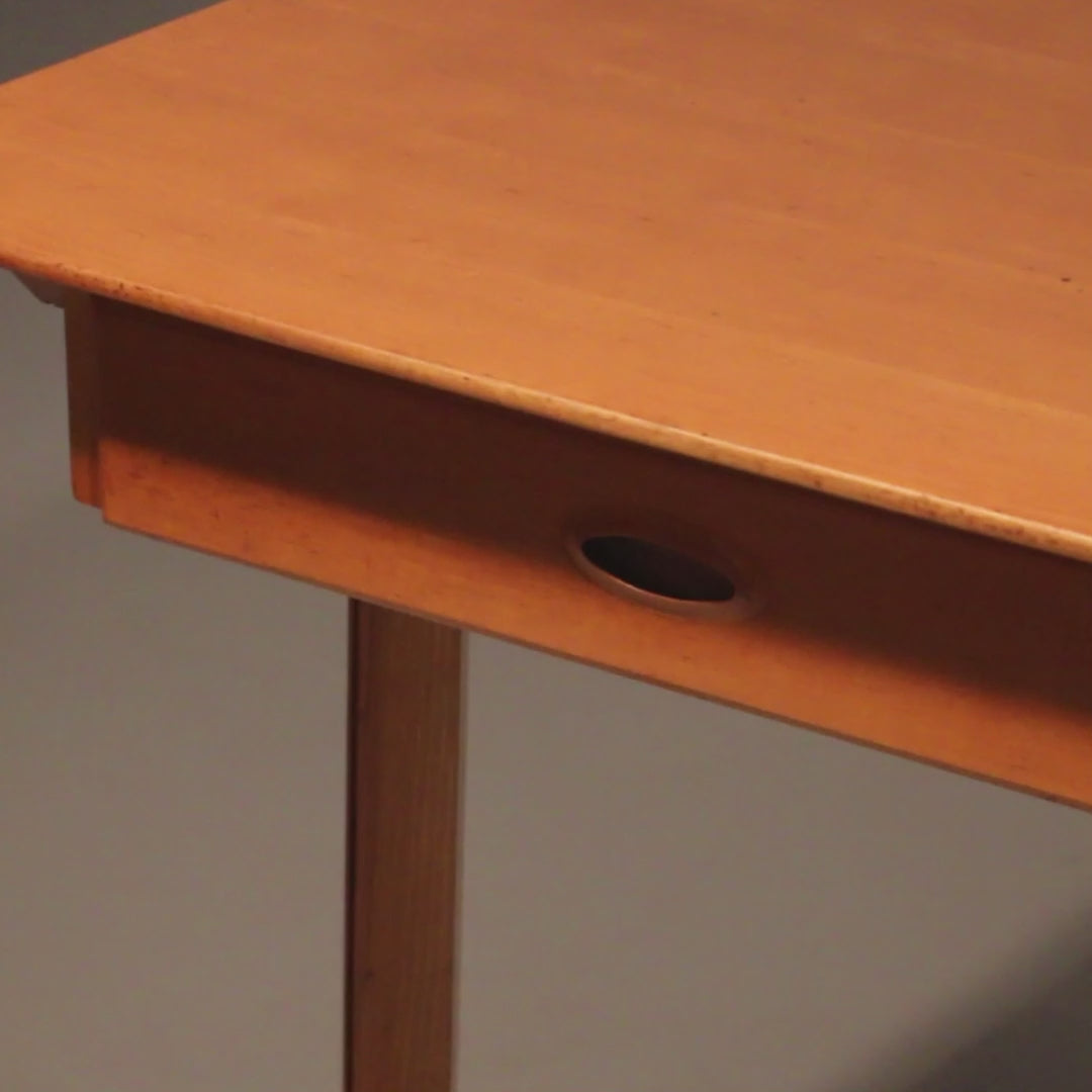 Crafted from rich walnut, the desk radiates warmth and sophistication. The beautifully integrated drawers provide practical storage while maintaining the clean, minimalist aesthetic. Elegant brass adjustable feet add a refined finishing touch and ensure stability, subtly elevating the design both literally and visually.