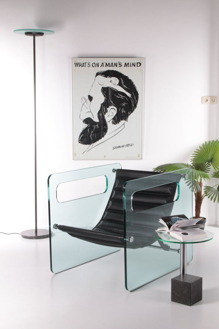 Experience the essence of Italian design with the "Naked" armchair, a masterpiece by Giovanni Tommaso Garattoni. This modern, minimalist chair is the epitome of style and comfort, seamlessly fitting into any interior. The black leather seat effortlessly complements the unique glass frame and chrome steel supports, resulting in a piece that is both visually appealing and durable. Crafted in Italy, this armchair embodies the sophistication and quality for which Italian design is renowned worldwide.