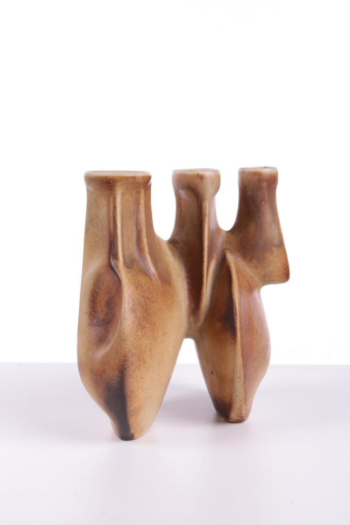This sculptural ceramic vase marked B75 was designed by Matt Camps for Loré, Beesel, the Netherlands, during the 1970s. Loré operated from 1954 to 1981 and was founded by Louis Thijssen and René Peeters—former employees of the well-known St. Joris pottery. Pieces marked with a "B" are attributed to Camps and represent unique forms or glaze codes developed between 1967 and 1981. This piece is a fine example of mid-century Dutch studio ceramics and is listed in Miller’s Collectables 2012–2013, page 94.