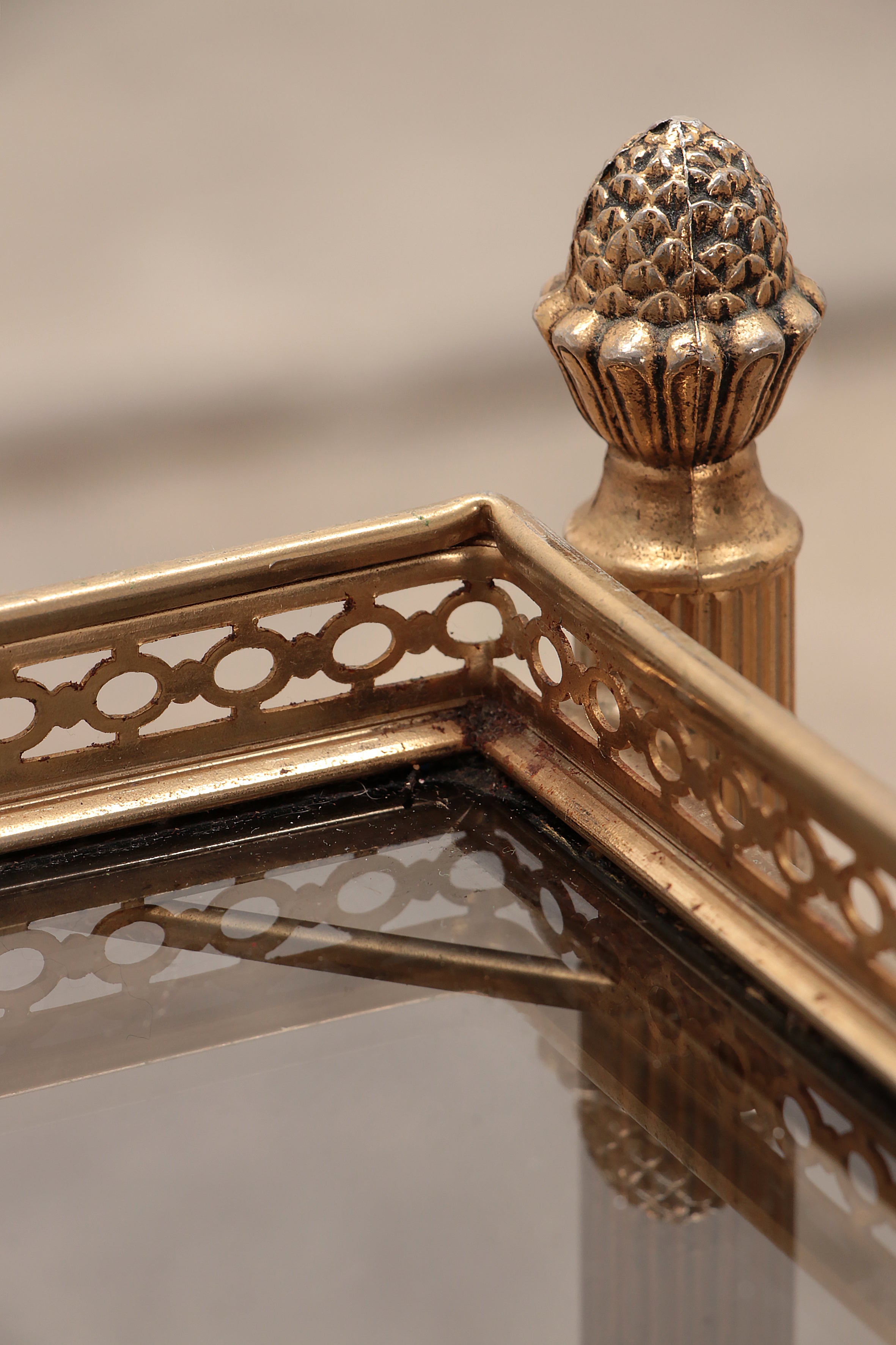 Maison Jansen Vintage Brass Trolley with Smoky Glass Tables