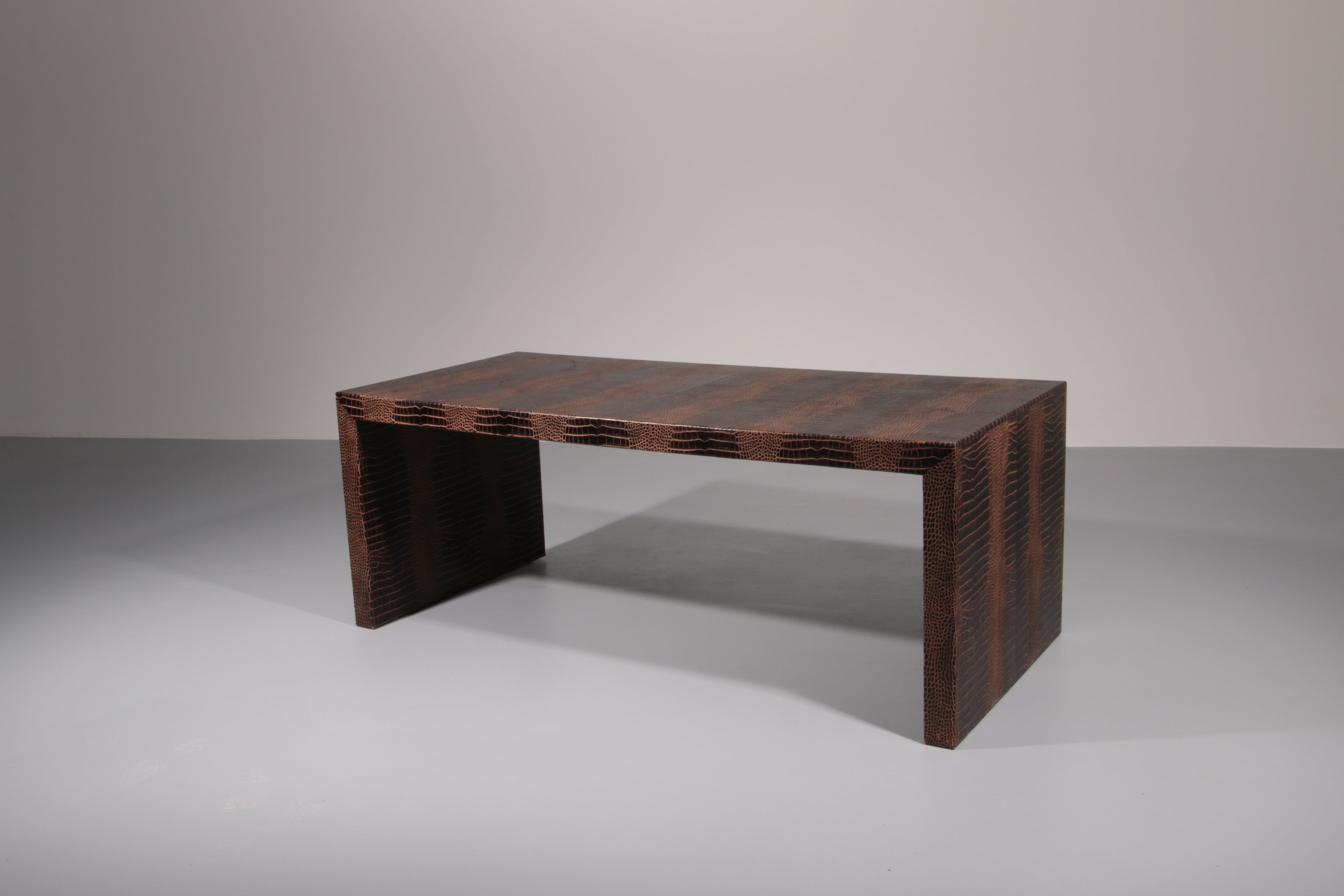 Philipp Plein office brown desk in split leather with a crocodile skin effect 1978