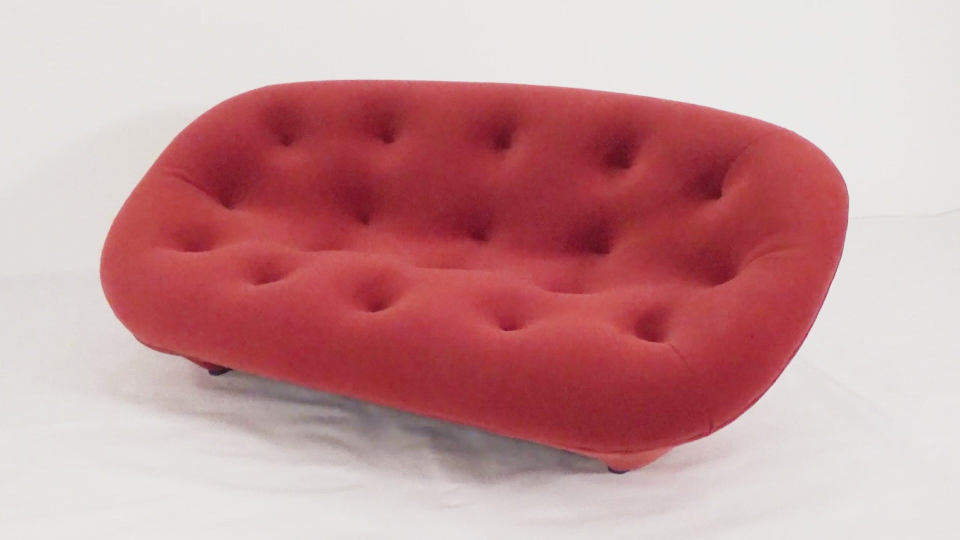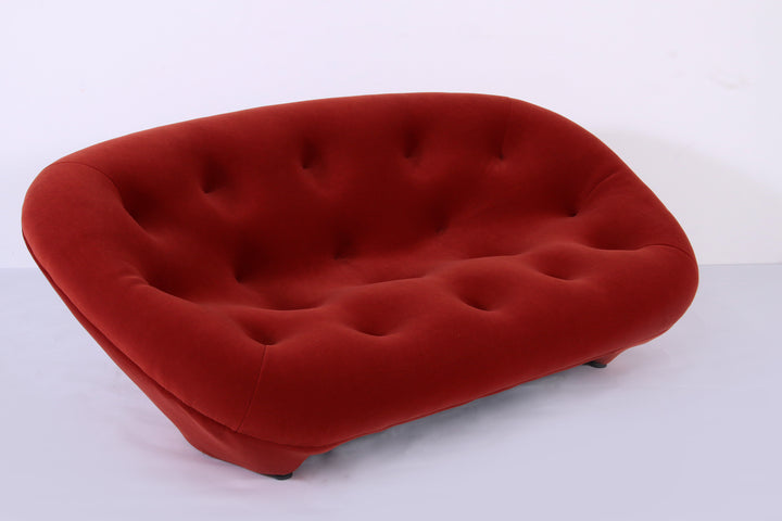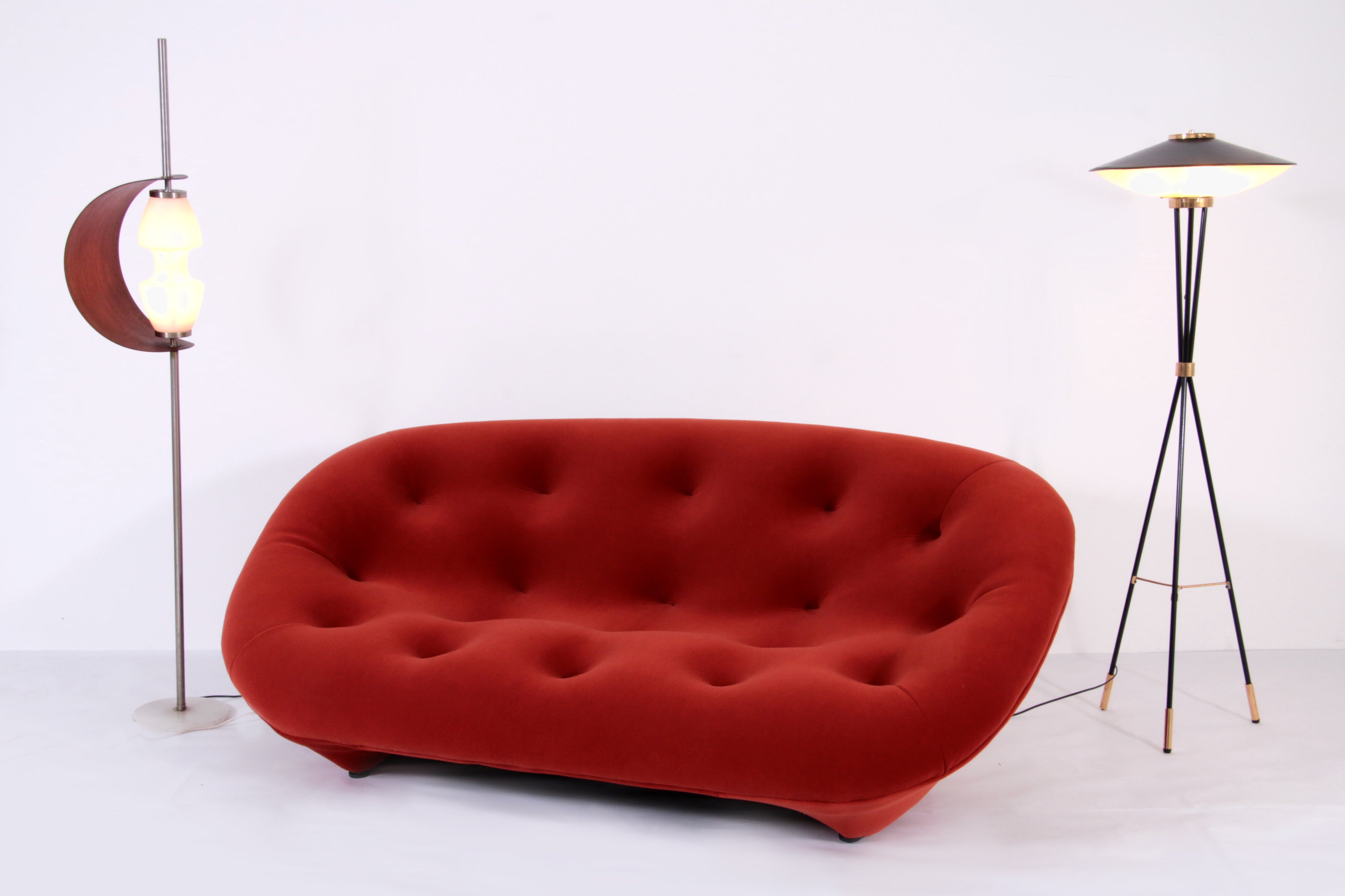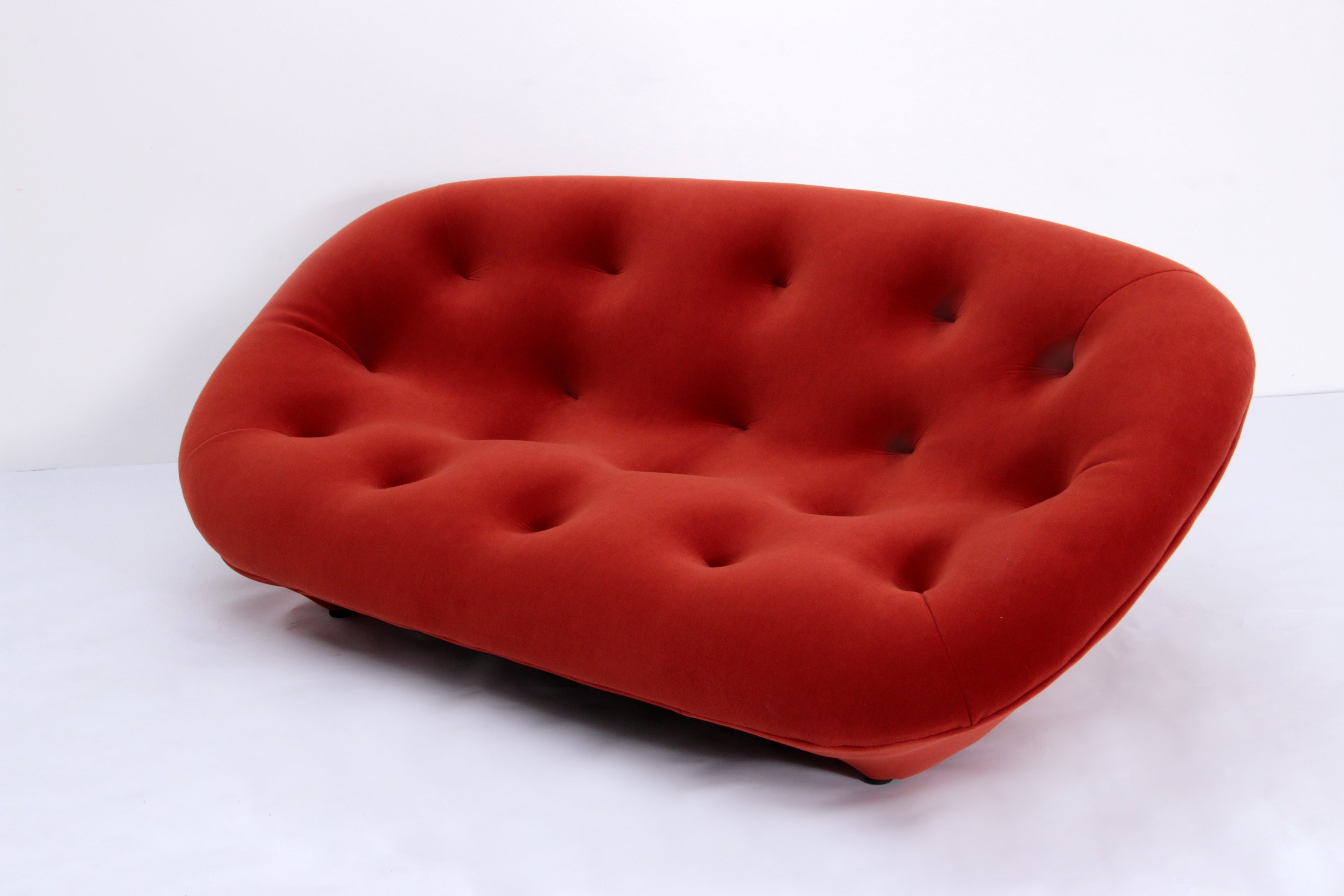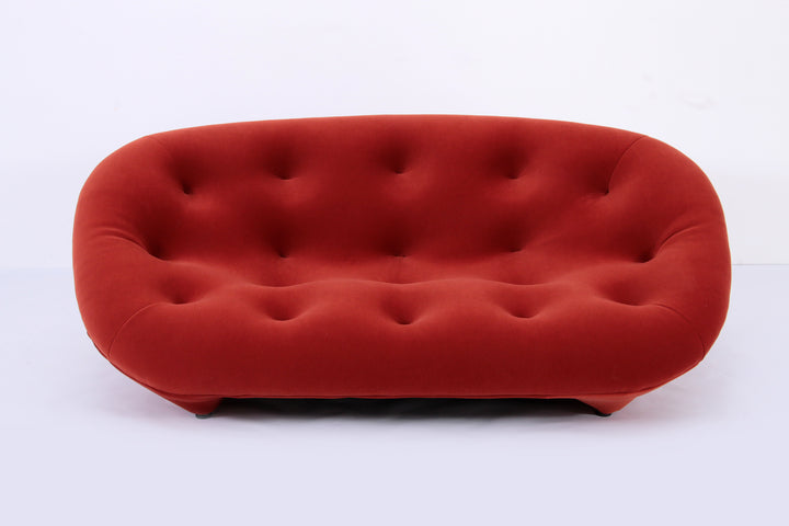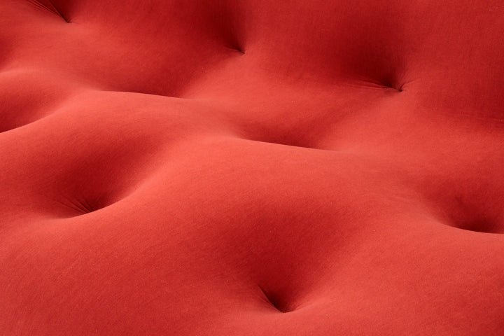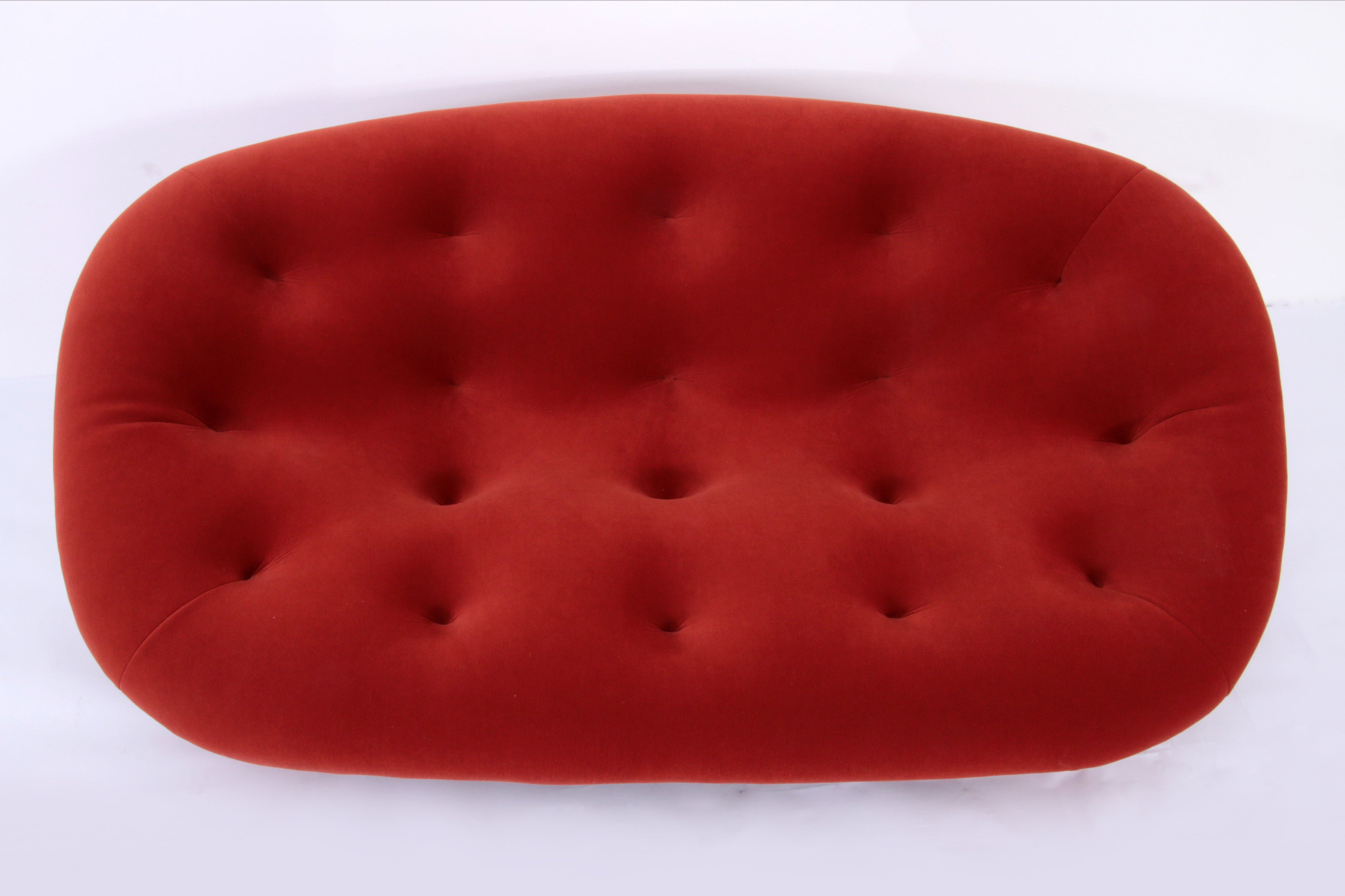 The Ploum Sofa, designed by Ronan & Erwan Bouroullec, is a modern icon reimagined in luxurious rusty orange velvet.