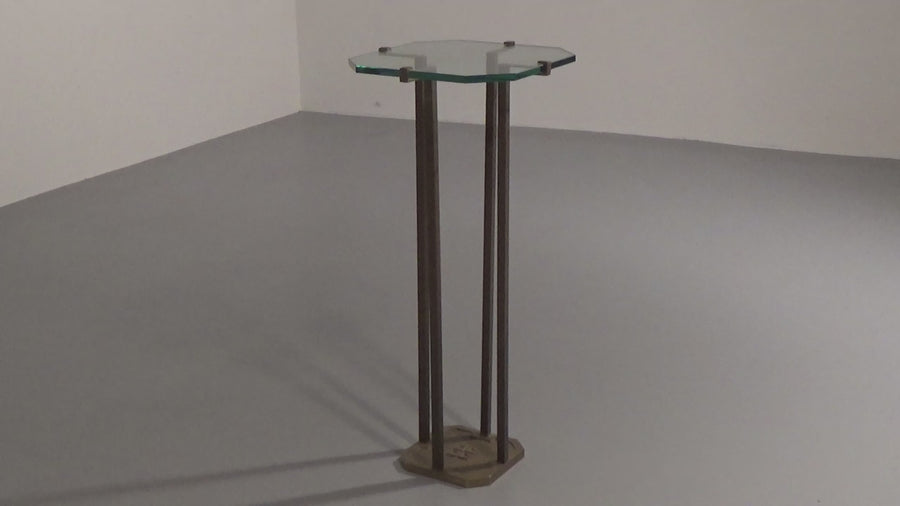 Discover the elegance of the 1970s with these rare Peter Ghyczy T18 side table. Crafted by the renowned Hungarian designer, these table feature original bronze and brass legs, showcasing Ghyczy's commitment to balance, originality, and craftsmanship. The glass tops, typically 15 mm thick, are pristine and damage-free, ensuring a timeless addition to your home decor. These small yet striking tables embody the designer's vision and are a testament to his legacy, now carried on by his son in the Netherlands. Perfect for those who appreciate vintage design and high-quality furniture, these side tables are a rare find that will elevate any living space.