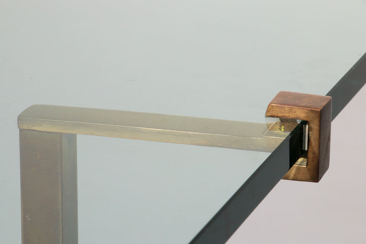 Discover the elegance of the 1970s with these rare Peter Ghyczy T18 side tables. Crafted by the renowned Hungarian designer, these tables feature original bronze and brass legs, showcasing Ghyczy's commitment to balance, originality, and craftsmanship. The glass tops, typically 15 mm thick, are pristine and damage-free, ensuring a timeless addition to your home decor. These small yet striking tables embody the designer's vision and are a testament to his legacy, now carried on by his son in the Netherlands. Perfect for those who appreciate vintage design and high-quality furniture, these side tables are a rare find that will elevate any living space.