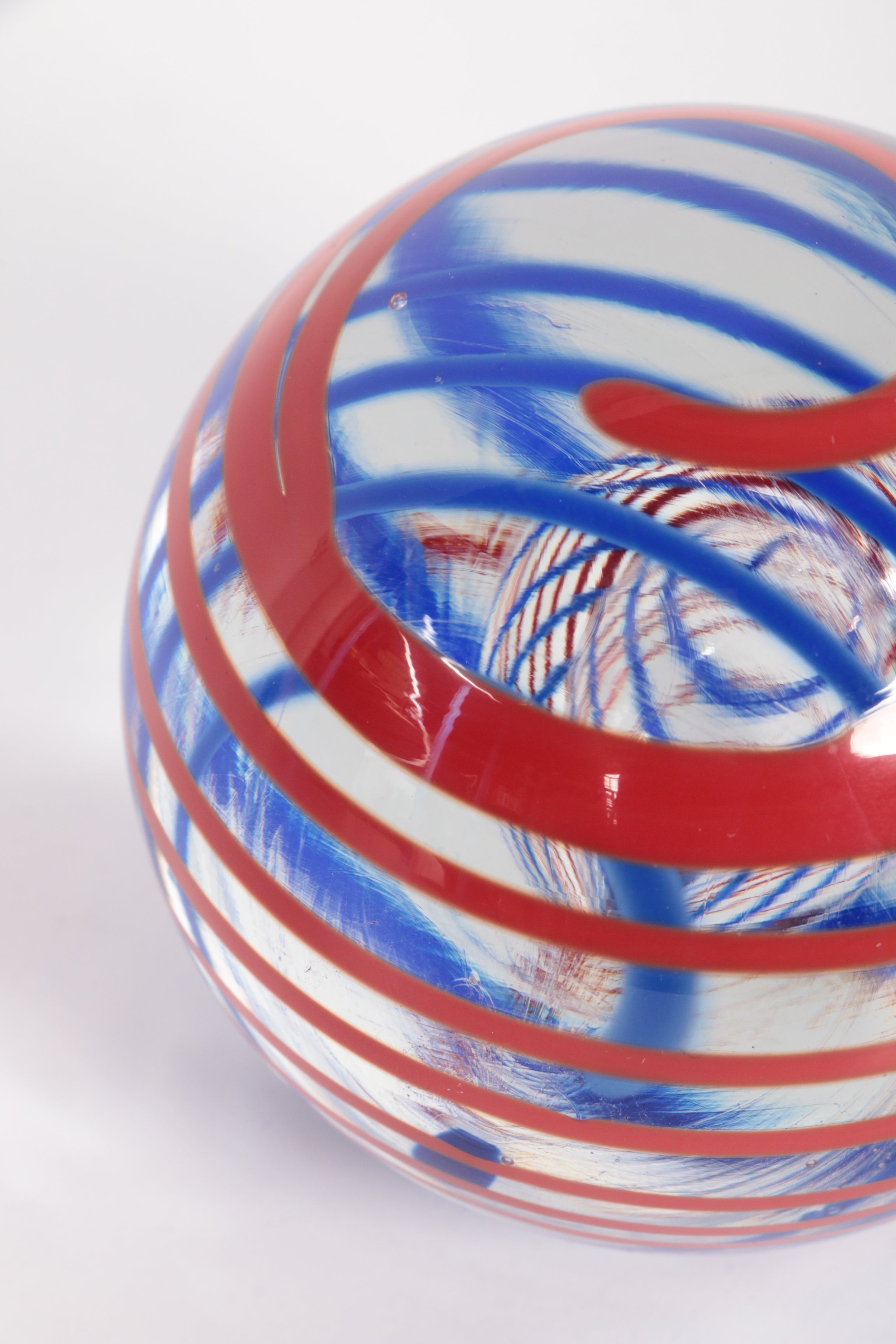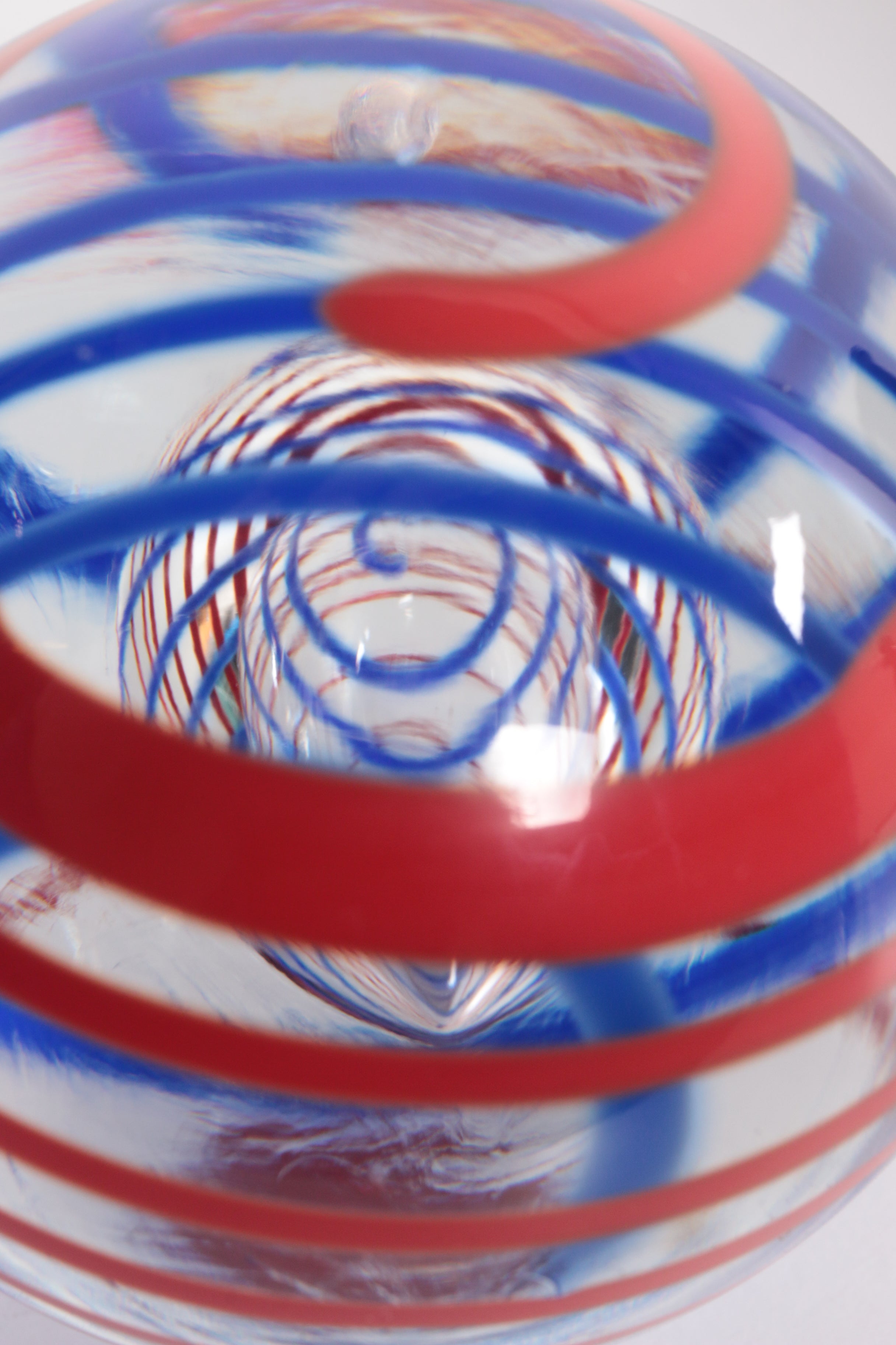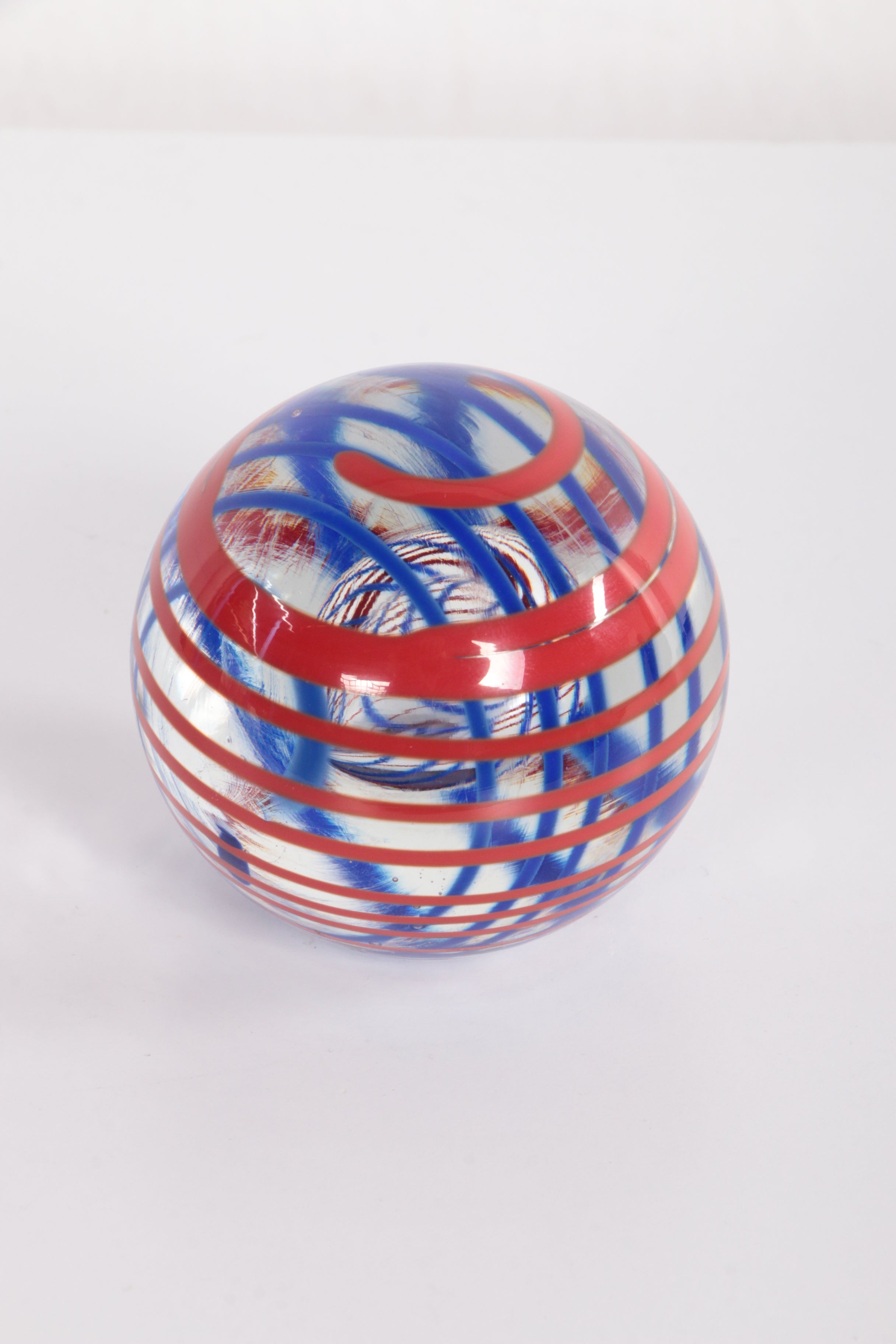 Glass Round Ball Paperweight Signed with O Horn, 1960