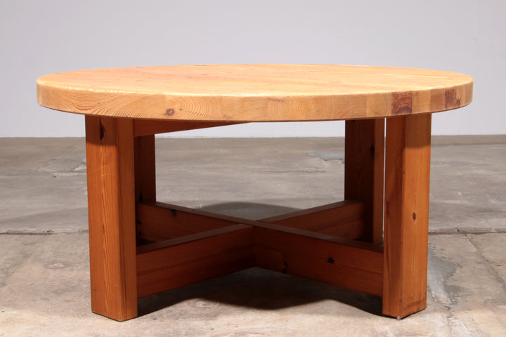 This beautiful round coffee table, crafted from pine wood, hails from Sweden and dates back to the 1970s. With a generous diameter of 104 cm, it showcases the timeless elegance of Scandinavian design, featuring clean lines and a simple yet functional form. The table’s natural wood finish exudes warmth, enhancing any living space with its inviting appeal. Its versatile size makes it perfect for various interior styles, from modern minimalism to cozy, rustic settings. A perfect blend of form and function, this table embodies the charm of Swedish craftsmanship, making it a classic centerpiece for any home.