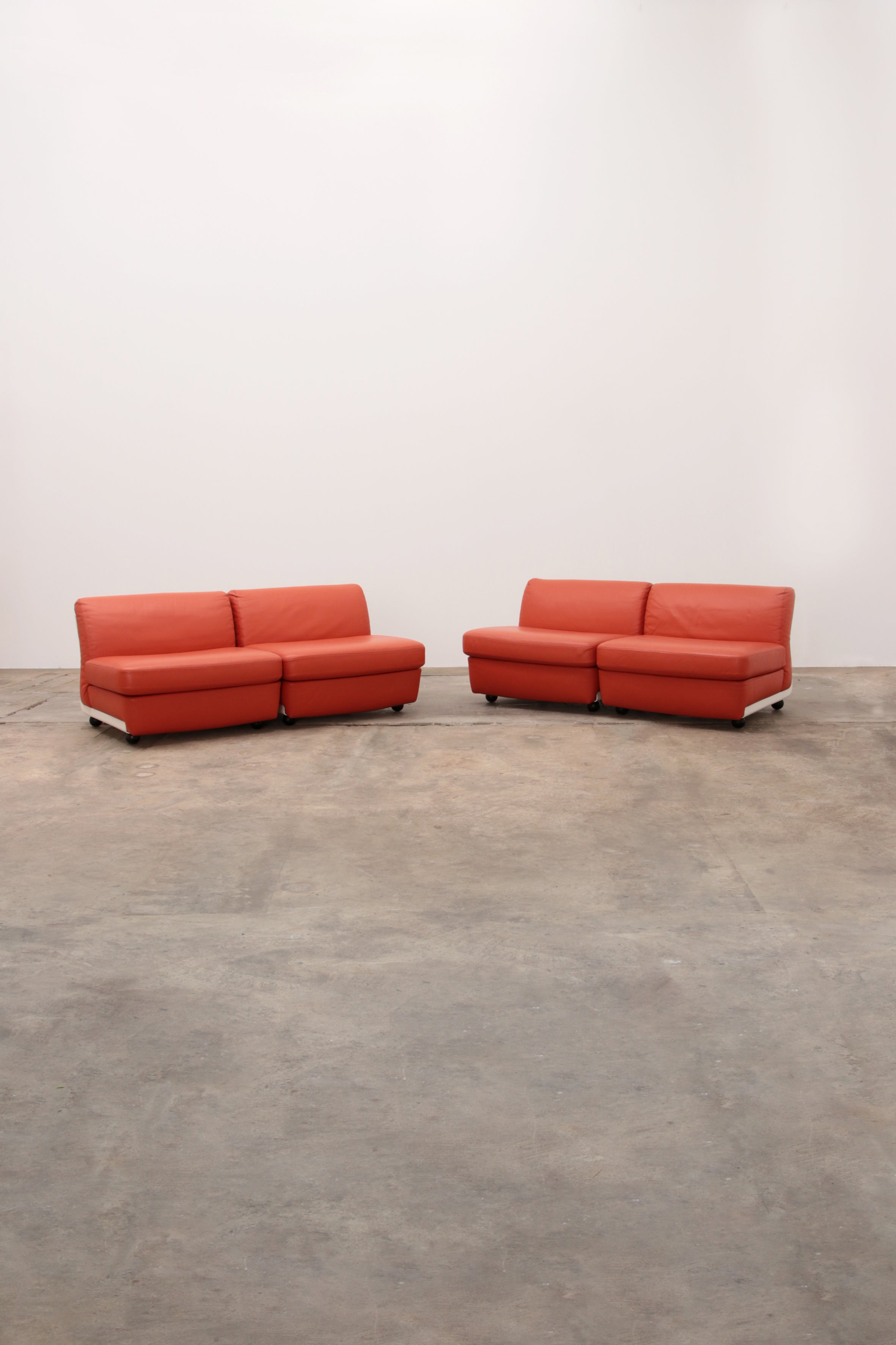 Amanta Modular Sofa in Orange Leather Mario Bellini 1960s