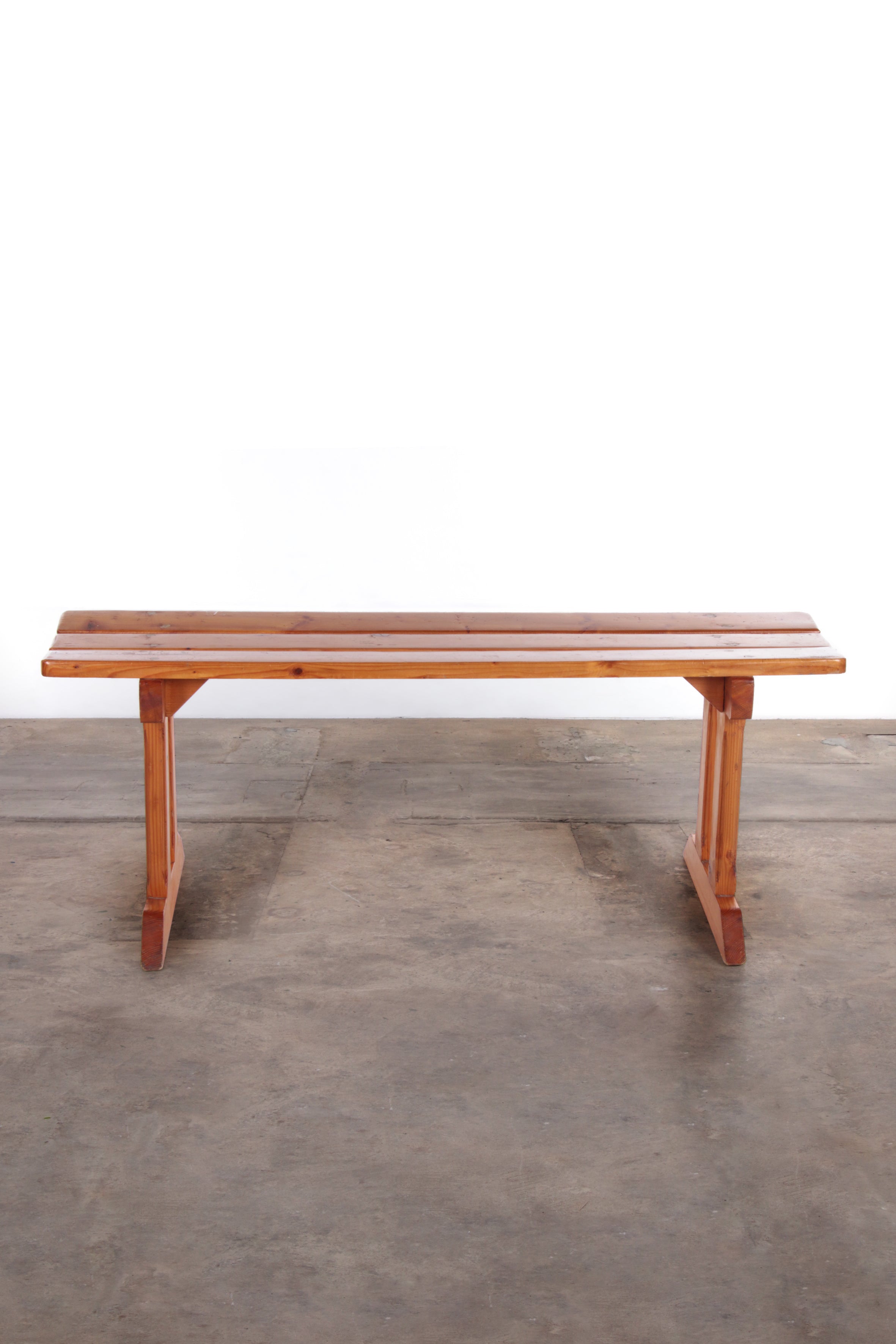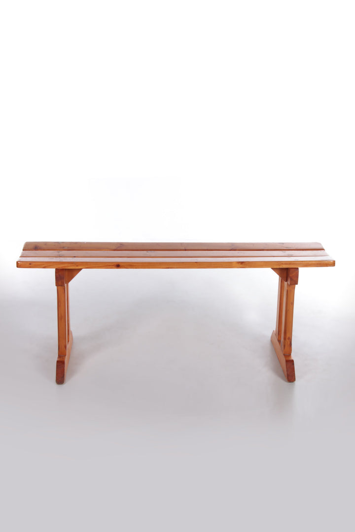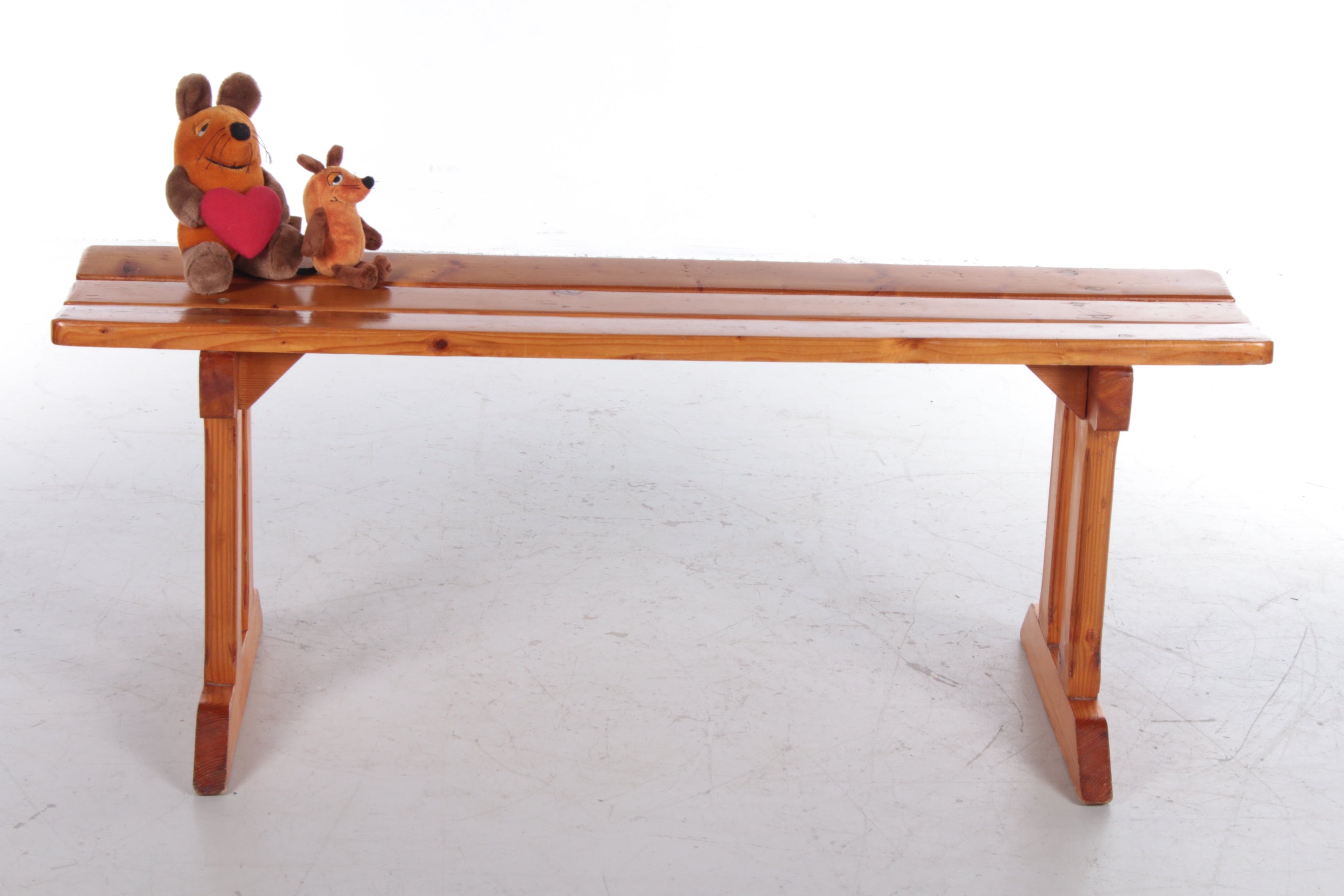 Vintage Pine Wooden Bench with Rustic Charm, France 1970